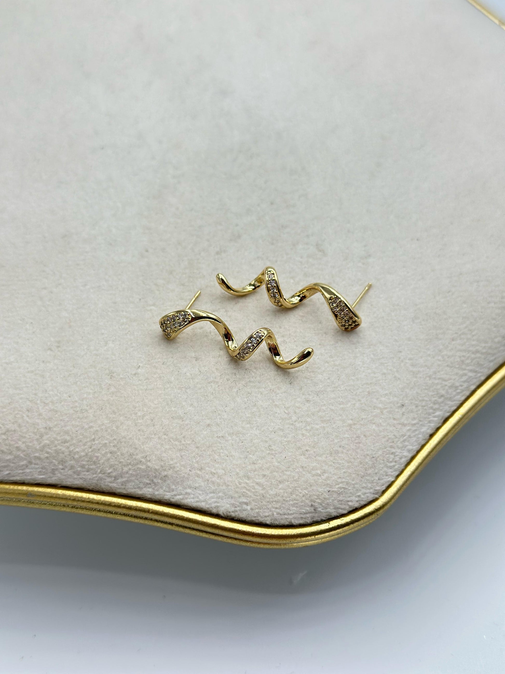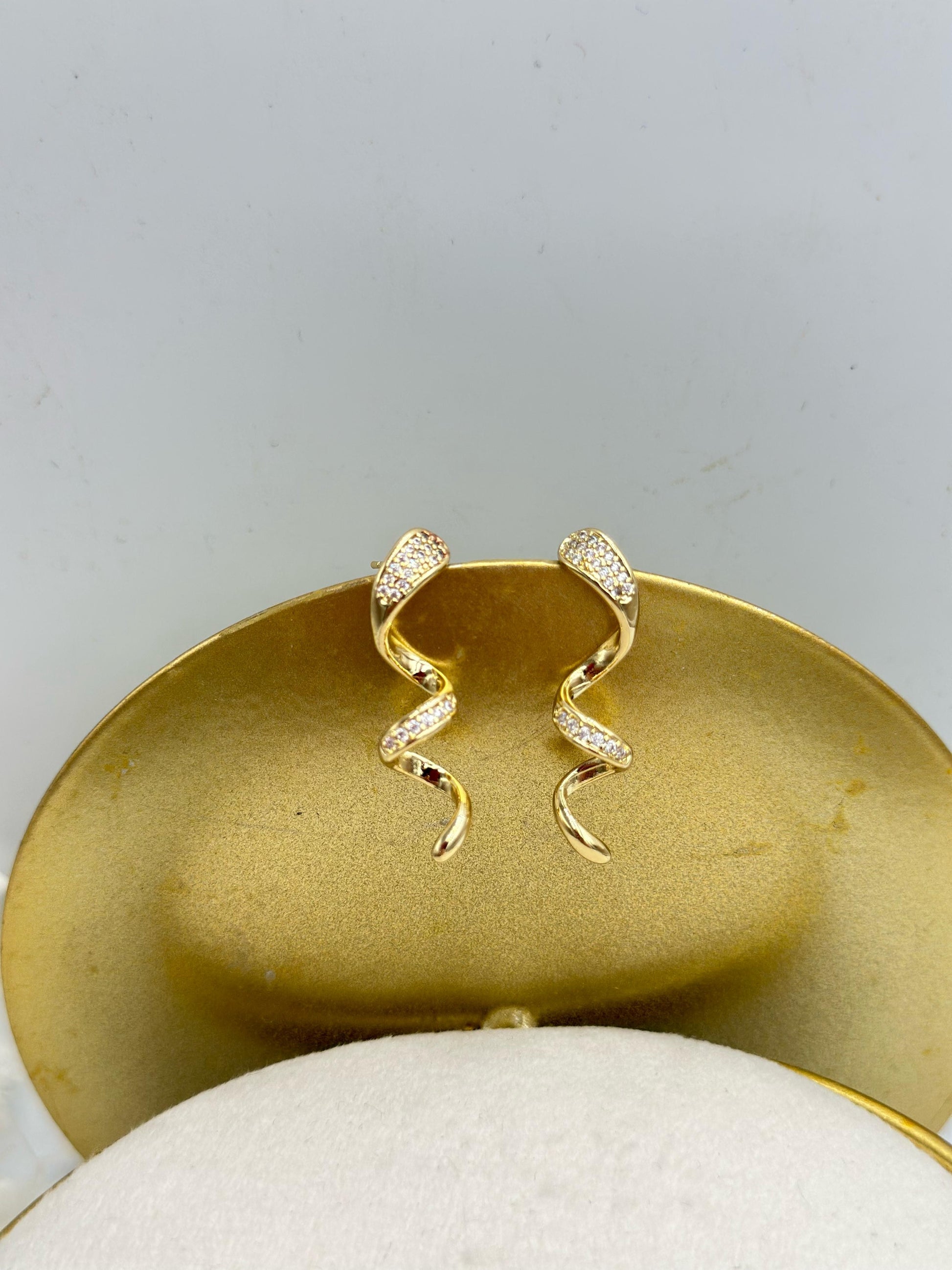 Zirkon Taş Detay Sarmal Minimal Küpe (Çelik)