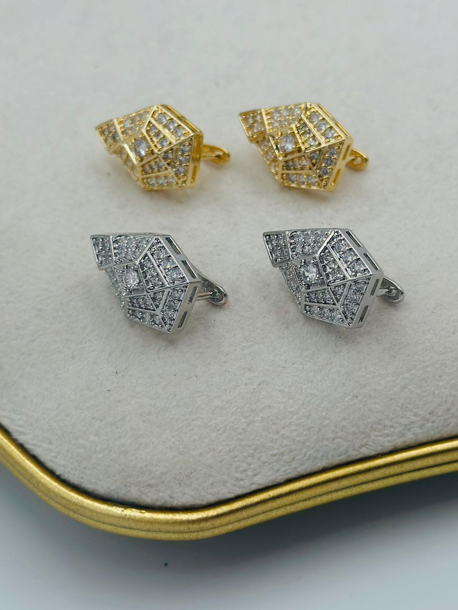 Zirkon Taş Detay Üçgen Küpe (Pirinç Kaplama)