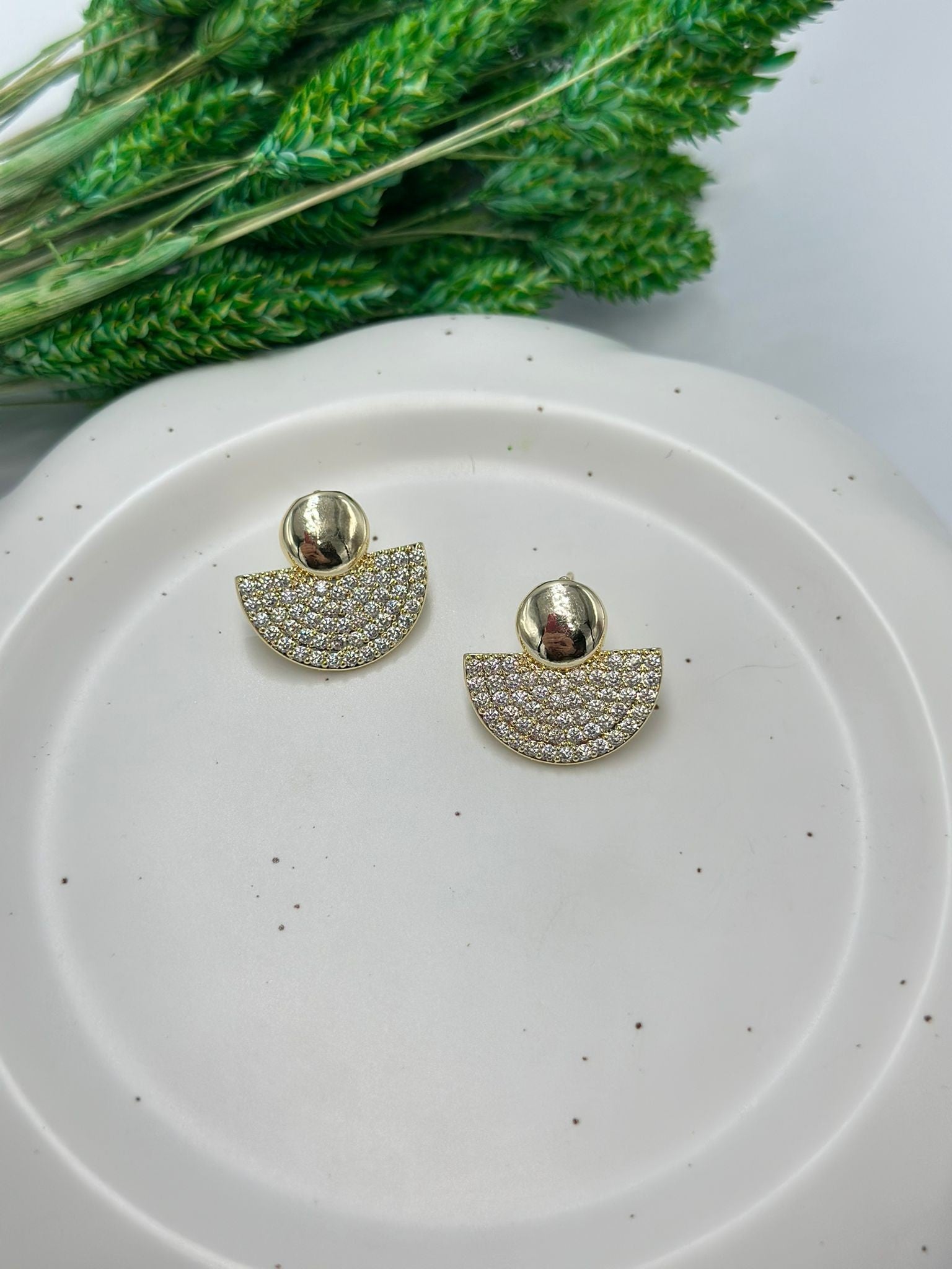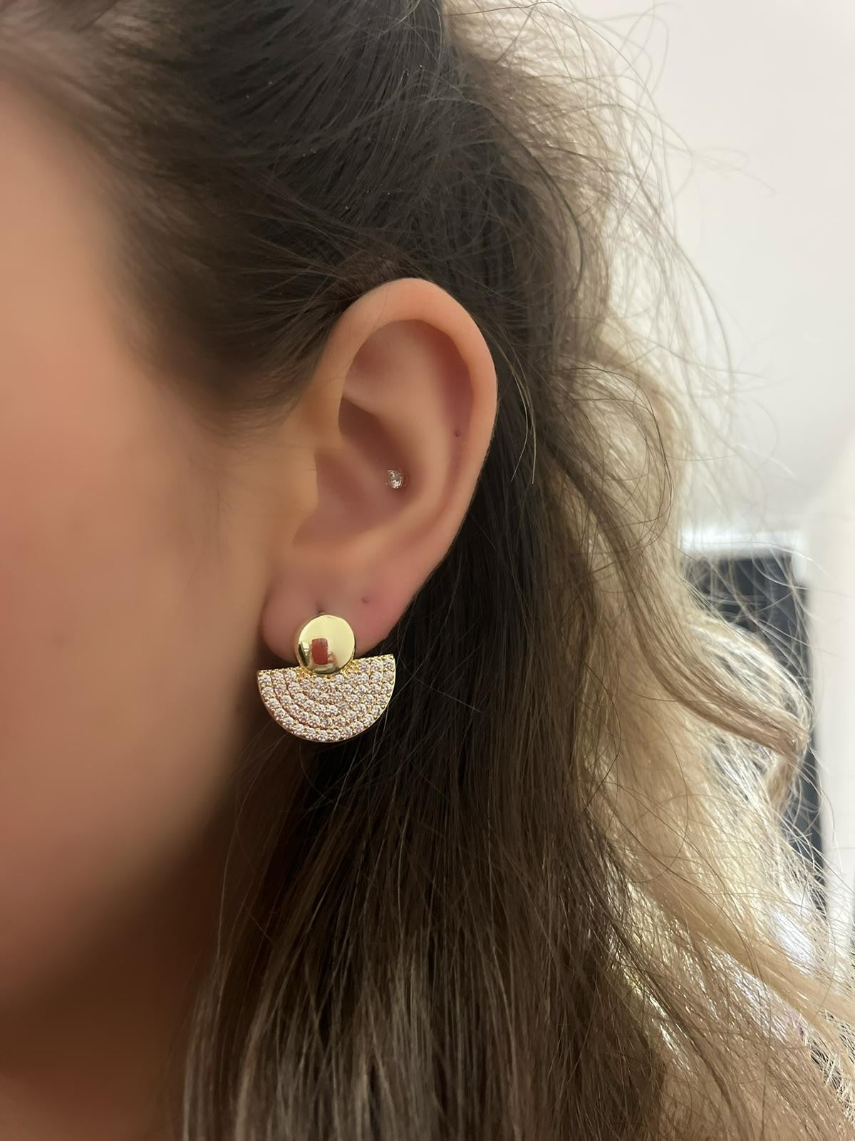 Zirkon Taş Detay Yelpaze Çelik Küpe
