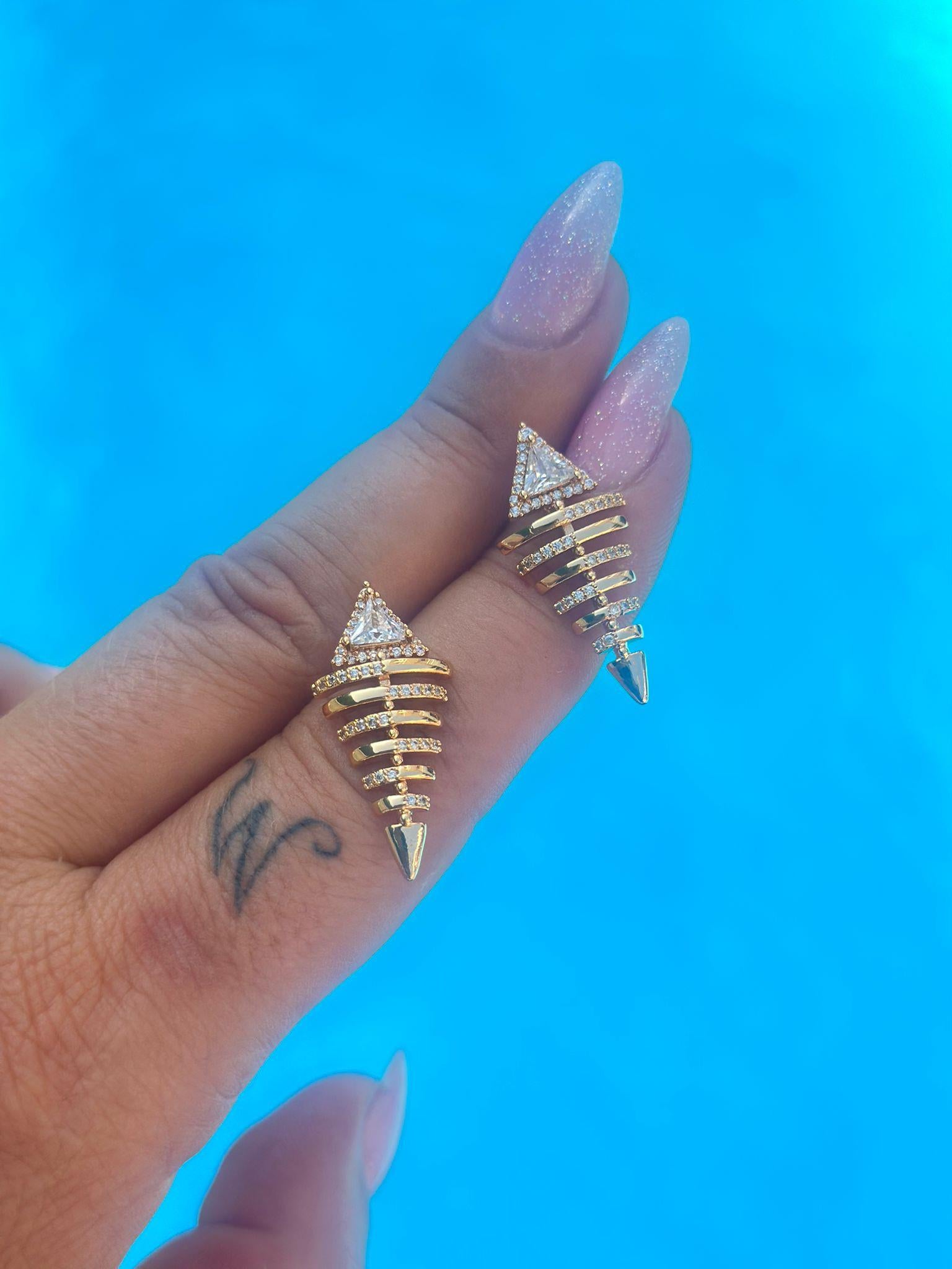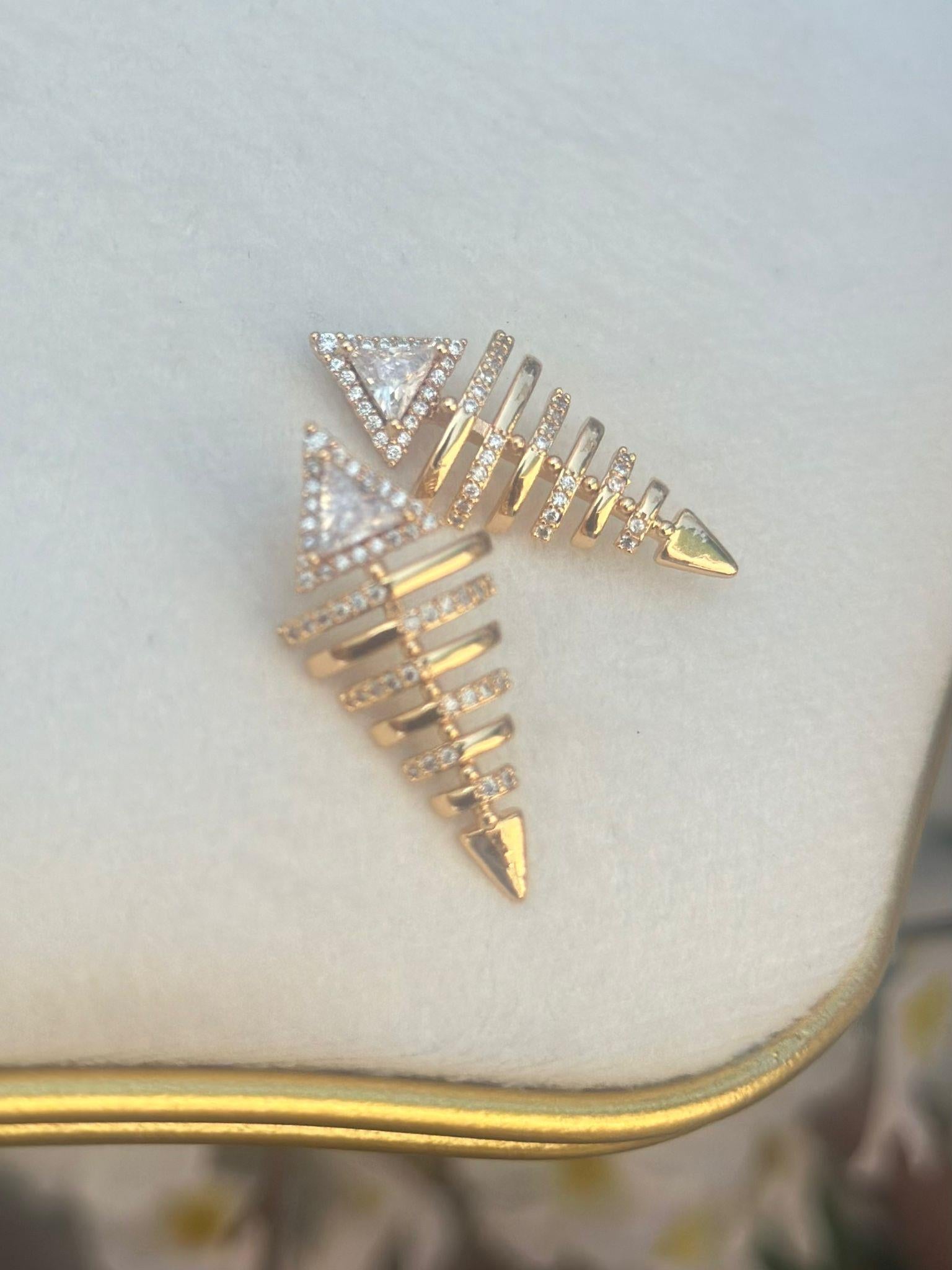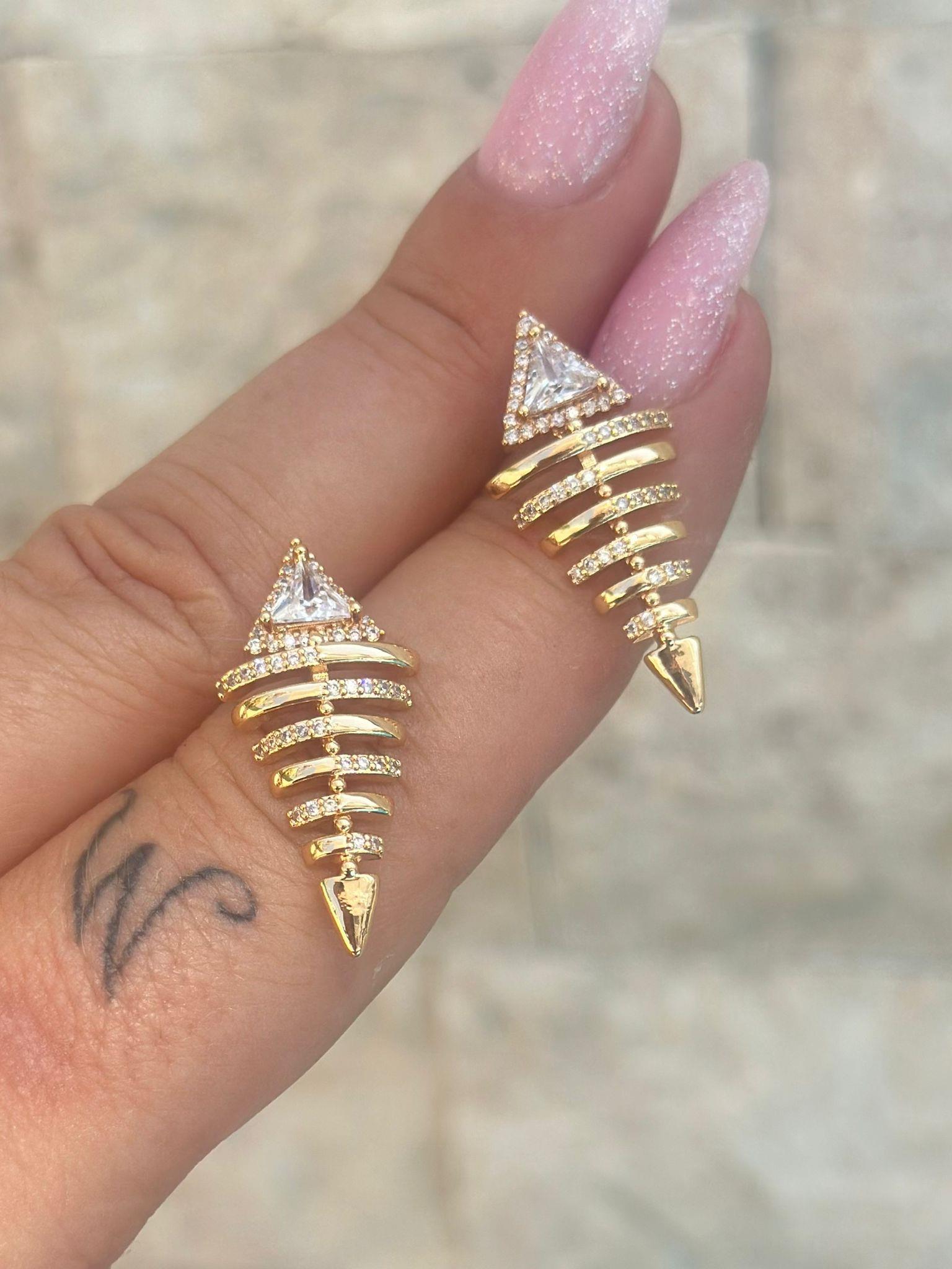 Zirkon Taş Detaylı Balık Küpe (Pirinç Kaplama)