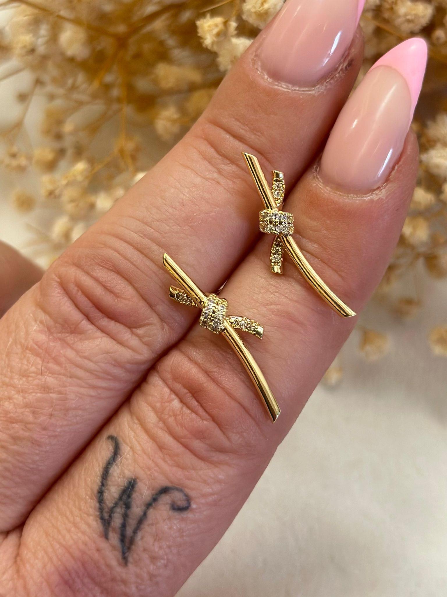 Zirkon Taş Detaylı Düğüm Küpe (Pirinç Kaplama)
