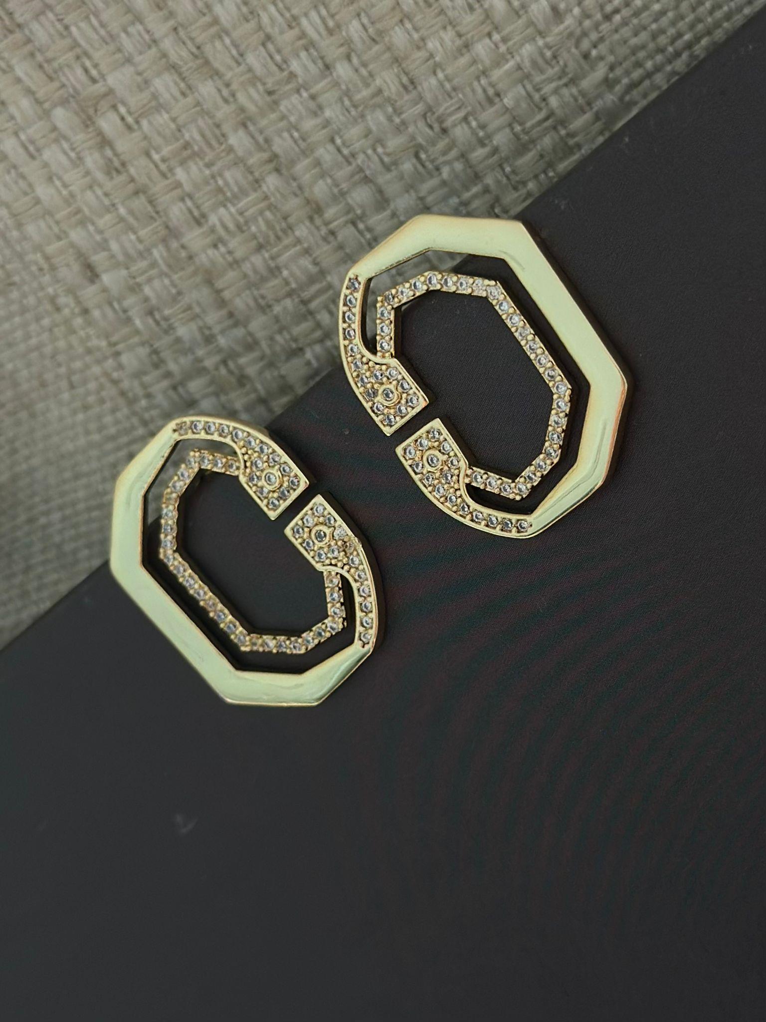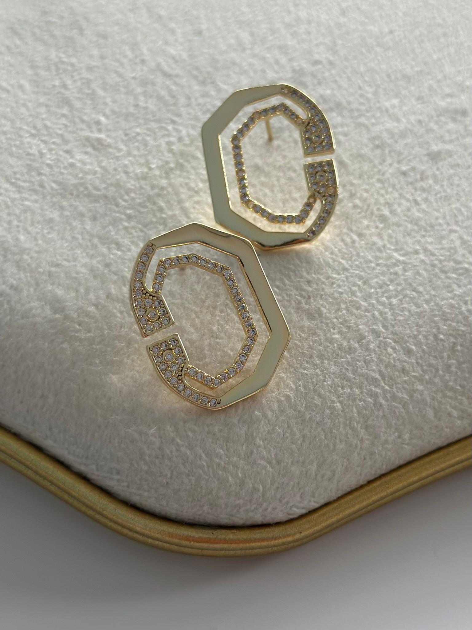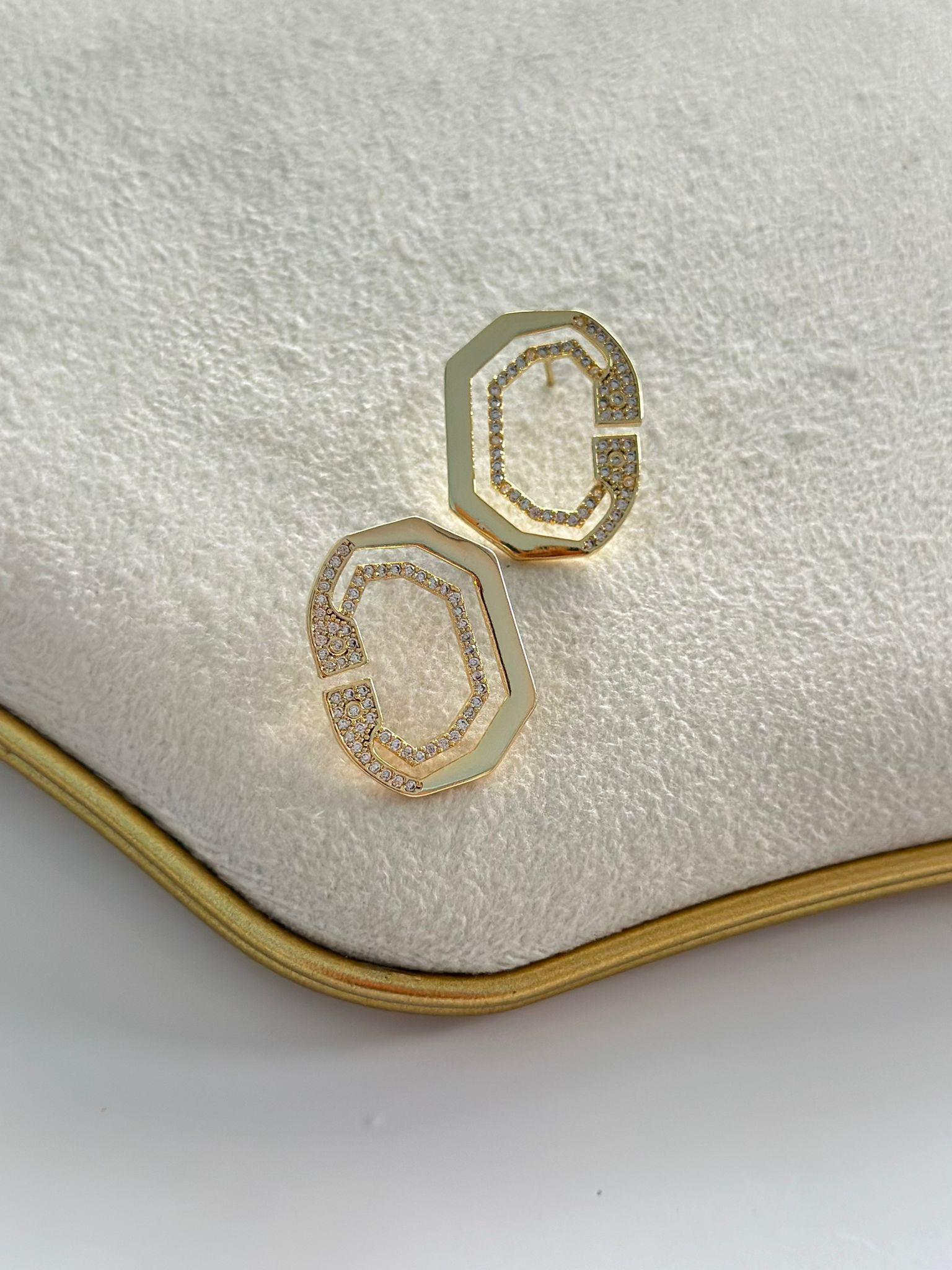 Zirkon Taş Detaylı Geometrik Küpe (Çelik)