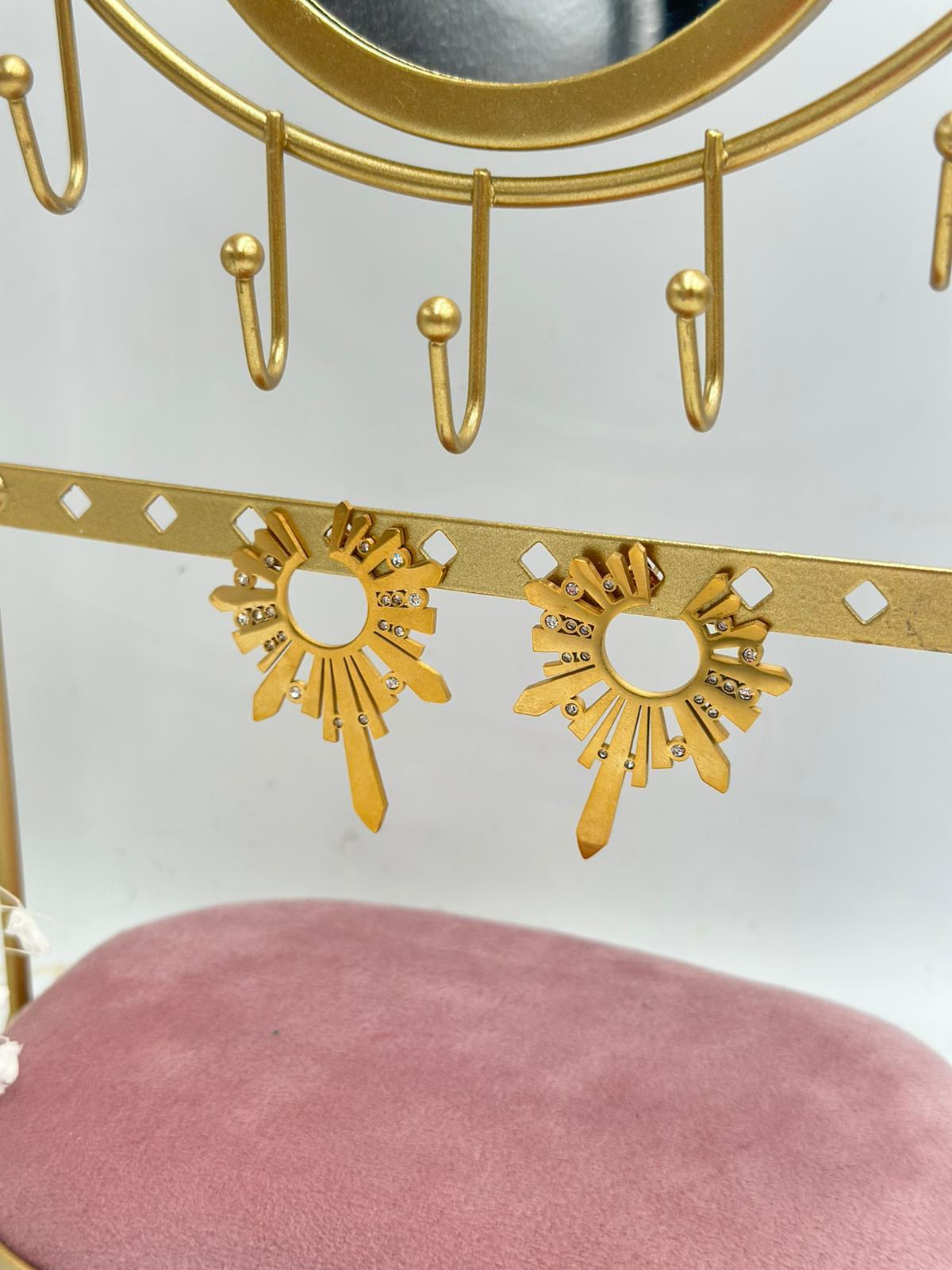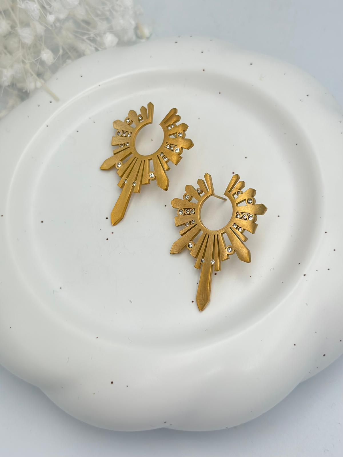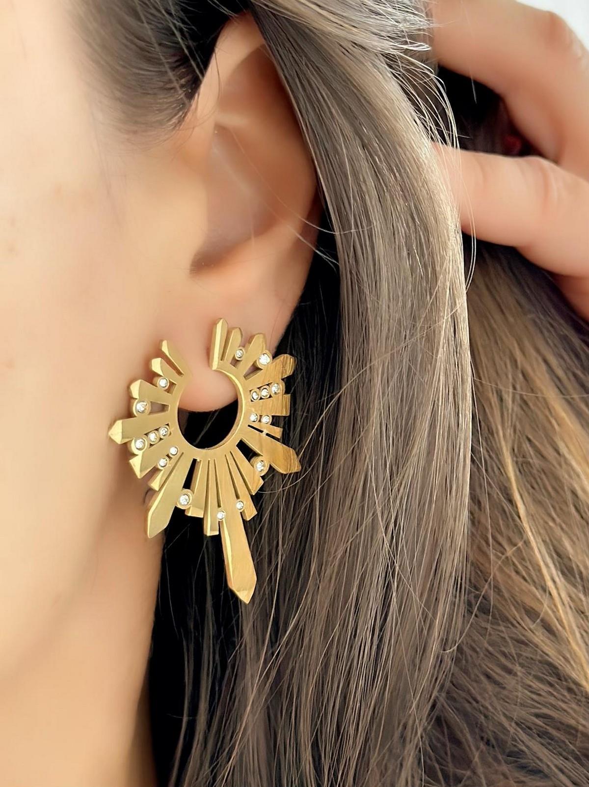 Zirkon Taş Detaylı Güneş Çelik Küpe