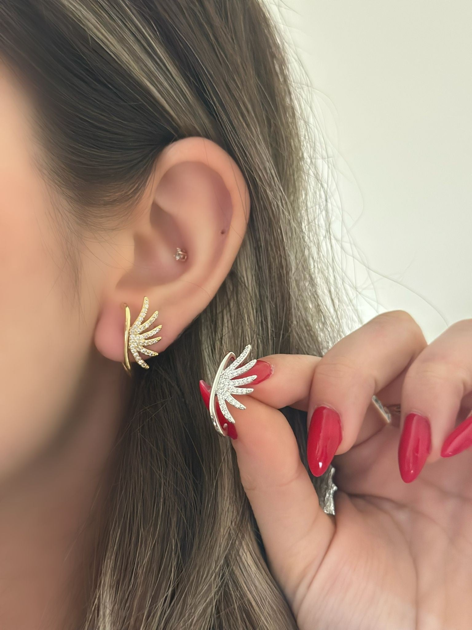 Zirkon Taş Detaylı Kanat Çelik Küpe