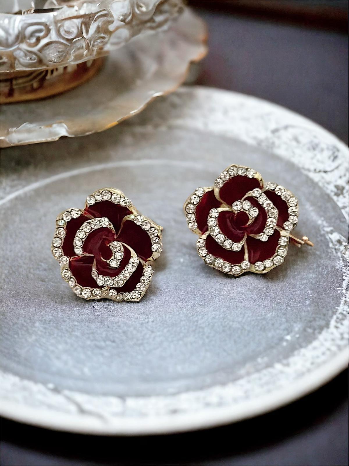 Zirkon Taş Detaylı Minimal Gül Küpe