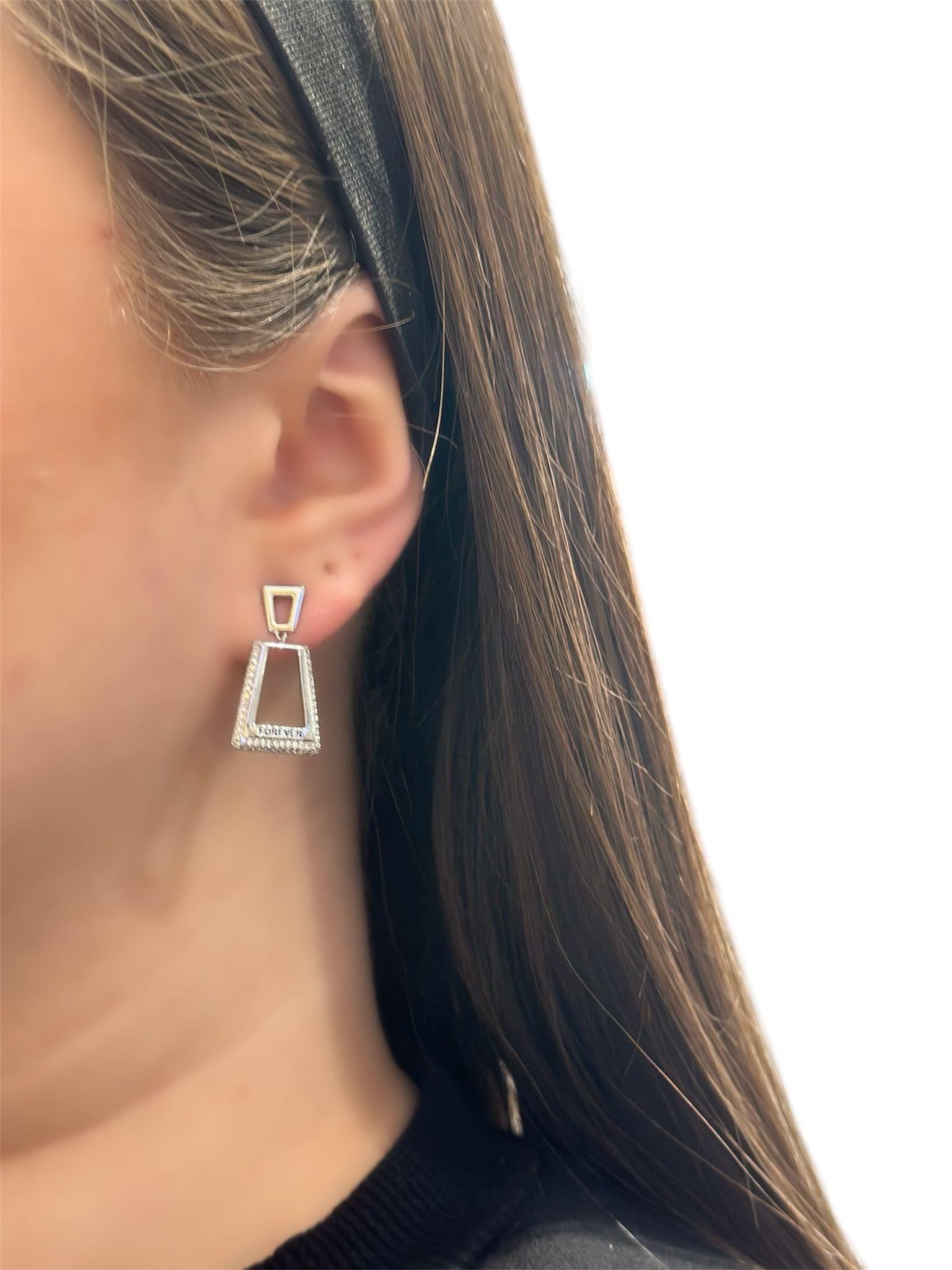 Zirkon Taş Detaylı Minimal Sallantılı Gümüş Kaplama Küpe