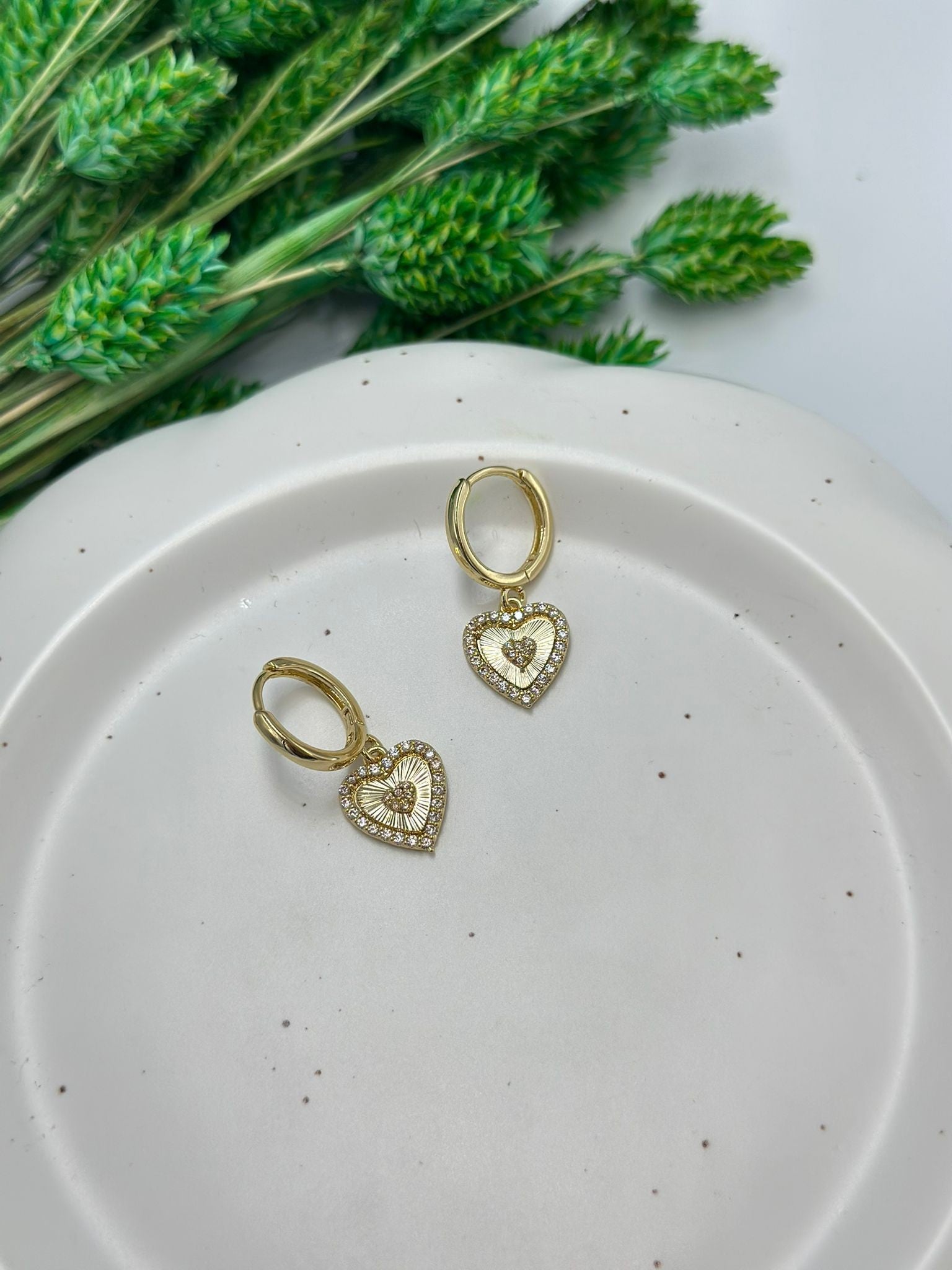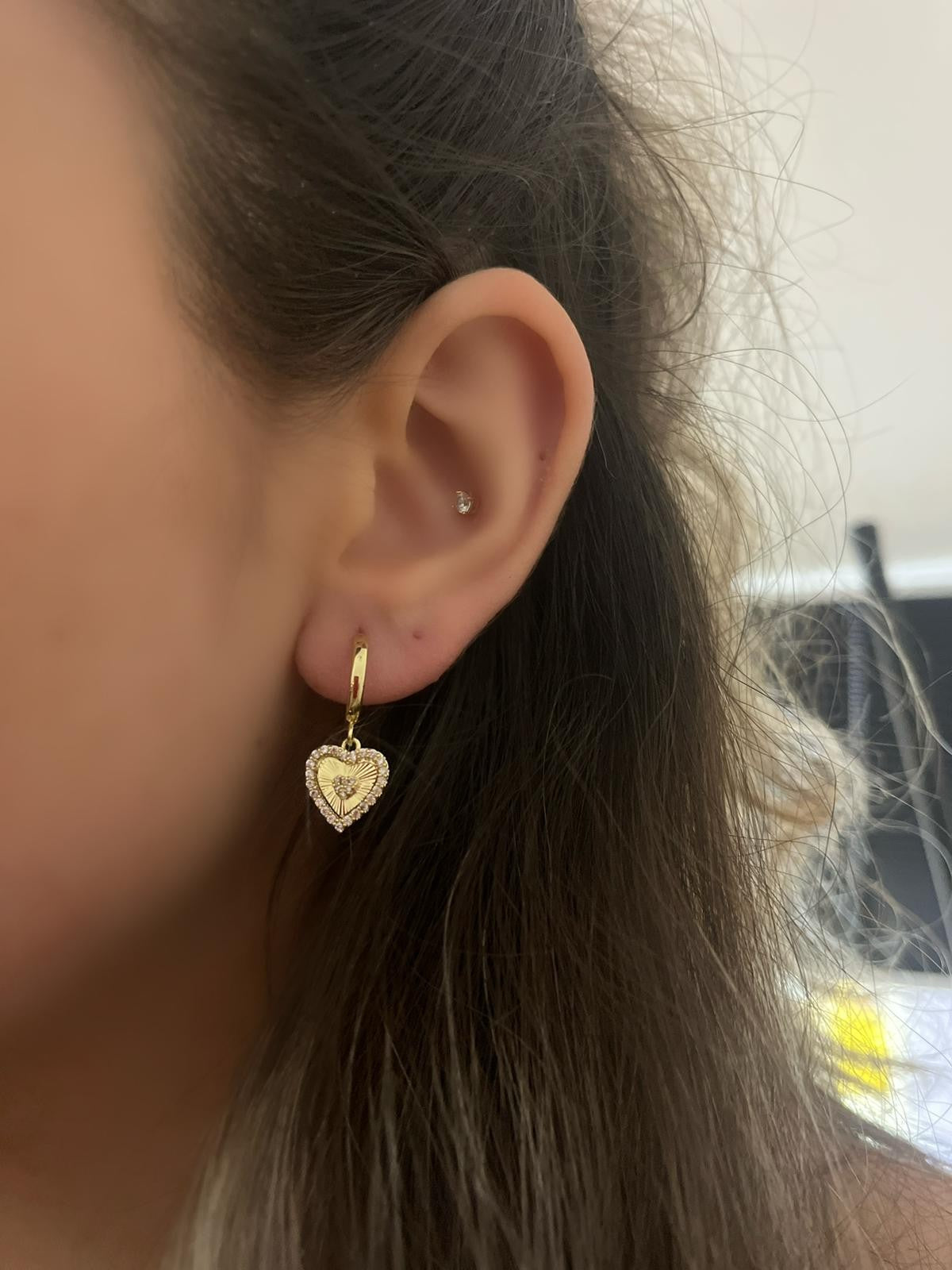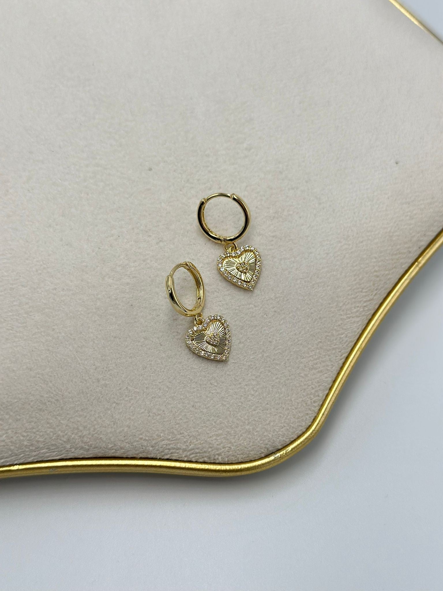 Zirkon Taş Detaylı Sallantılı Çelik Kalp Küpe
