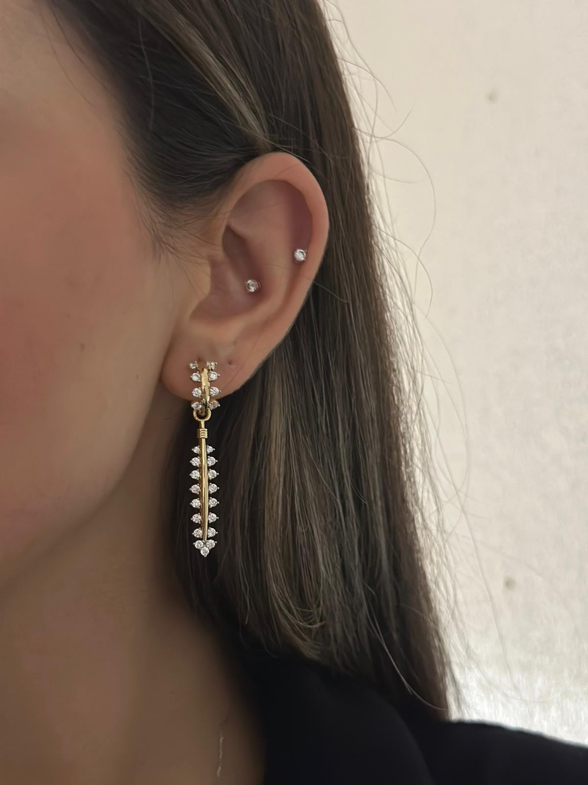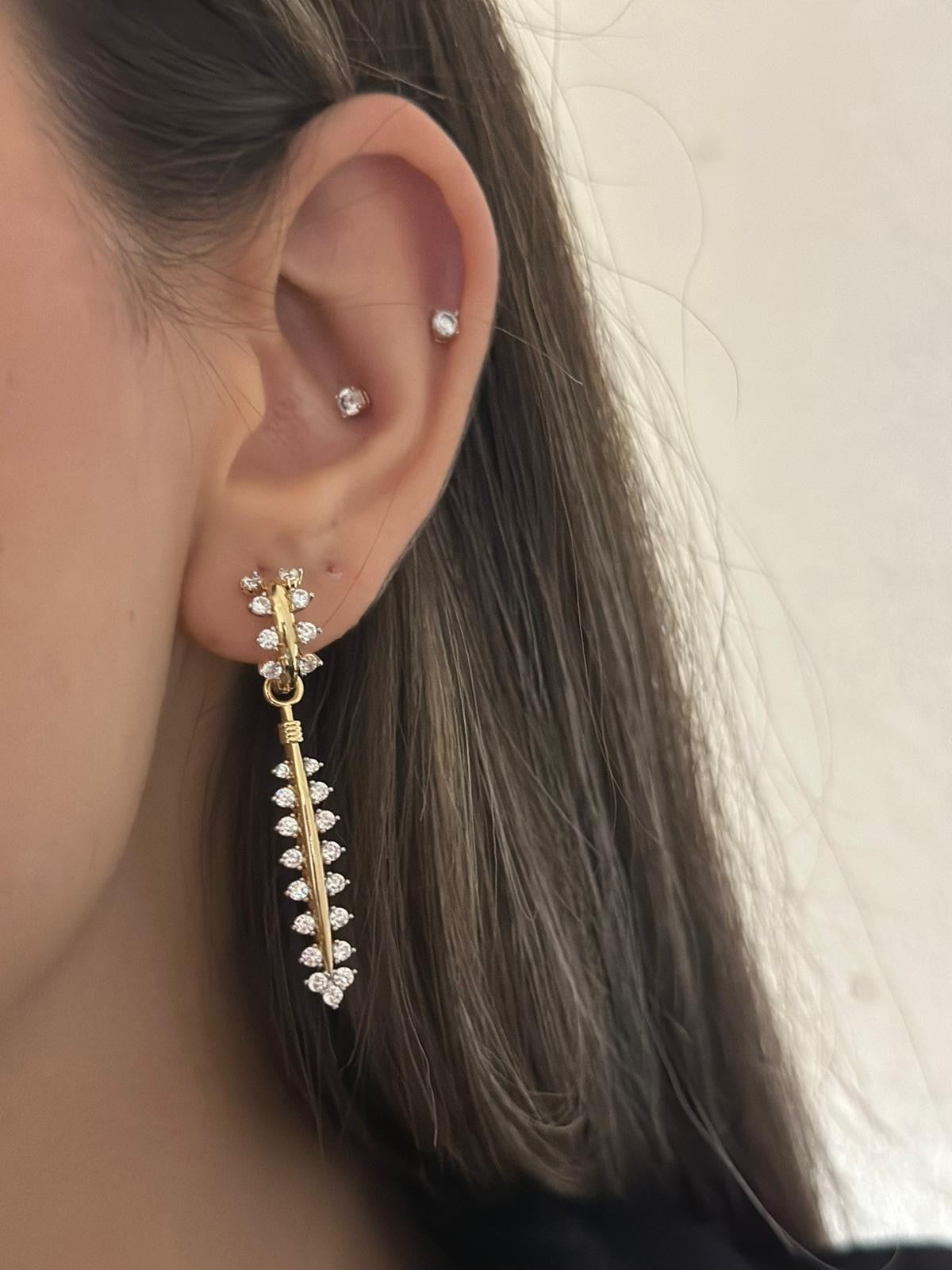 Zirkon Taş Detaylı Sallantılı Tasarım Küpe