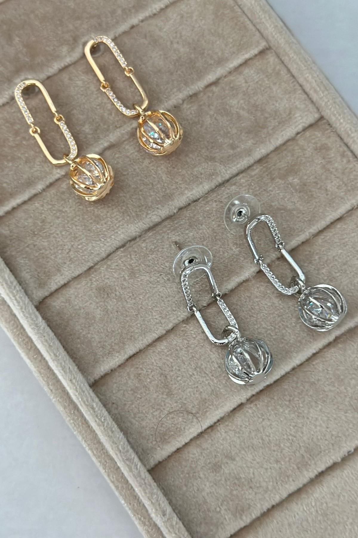 Zirkon Taş Detaylı Sallantılı Topçuk Küpe