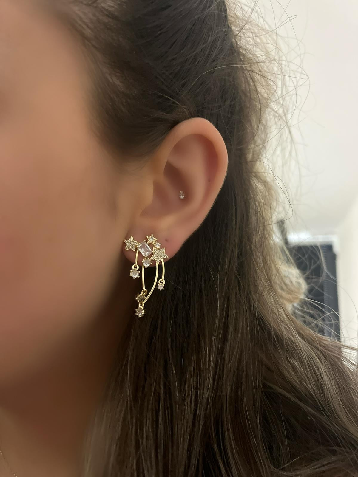 Zirkon Taş Detaylı Yıldız Çelik Küpe