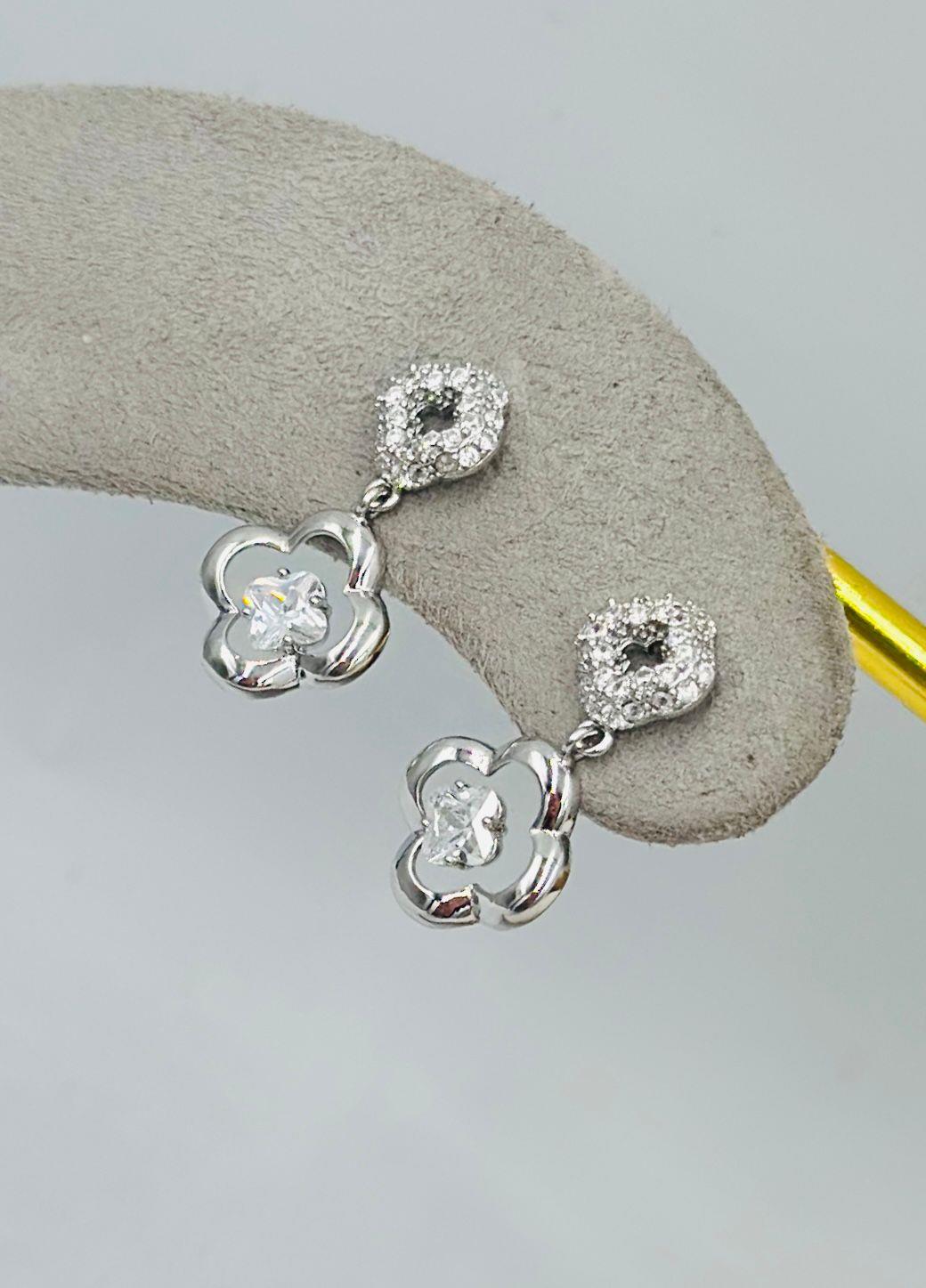 Zirkon Taş Detaylı Yonca Minimal Küpe (Çelik)