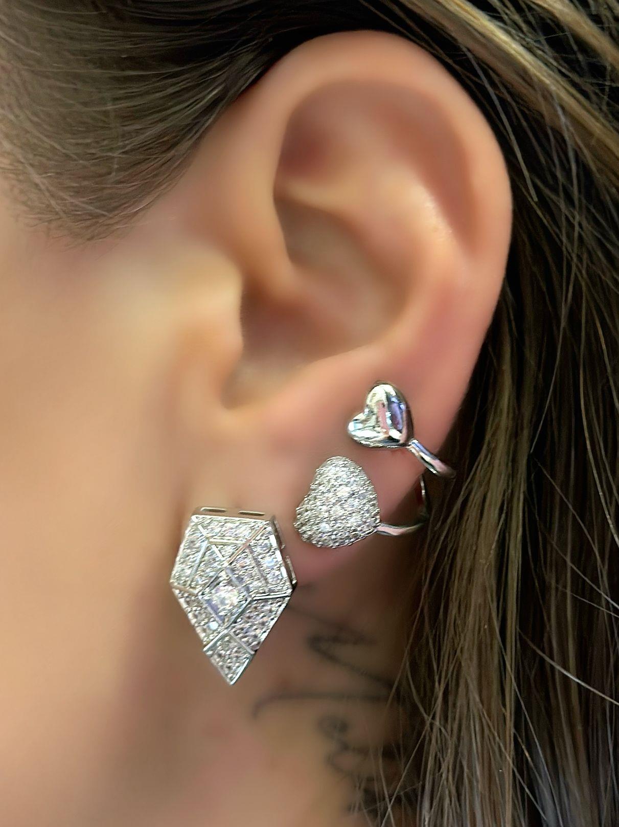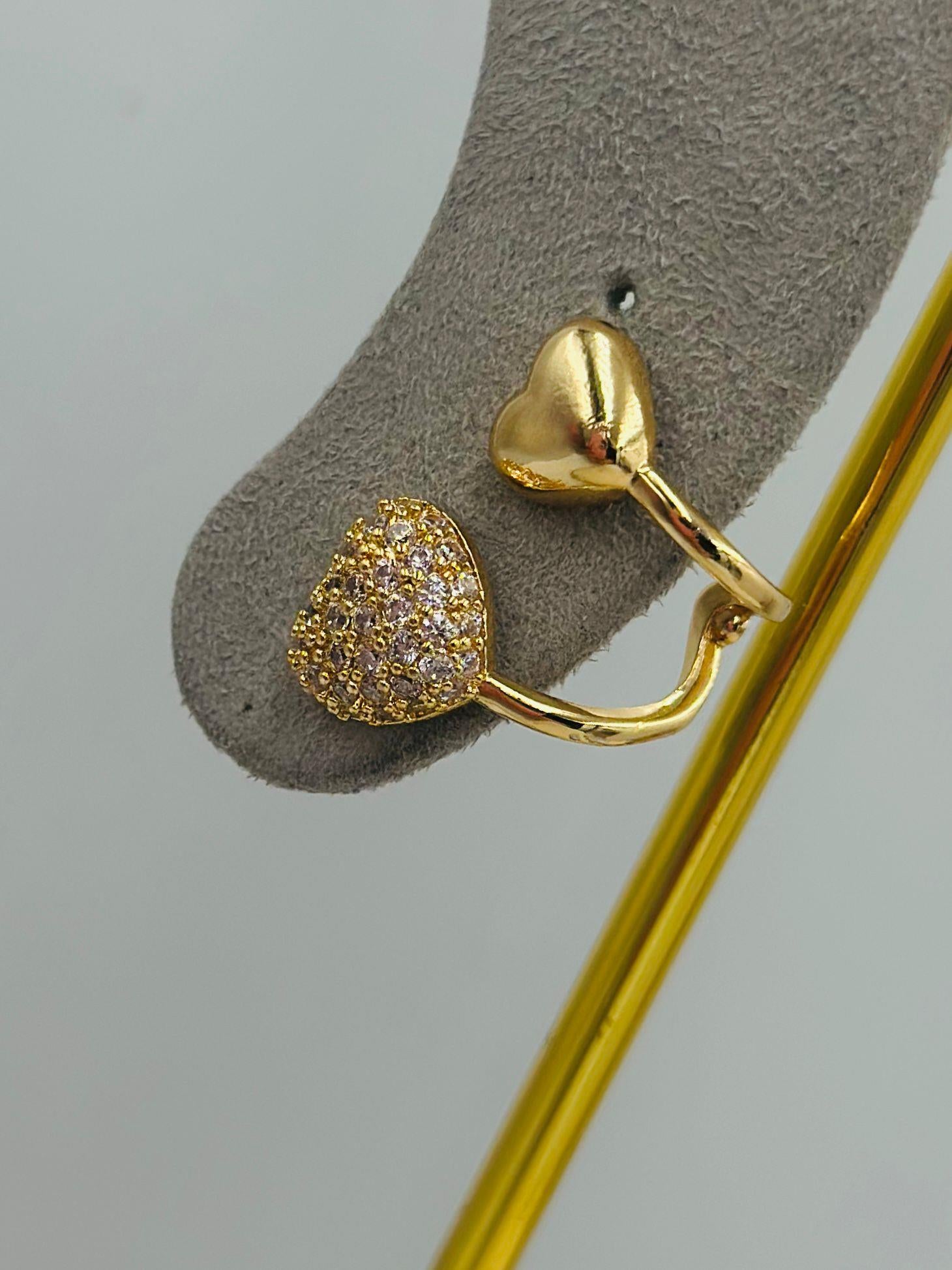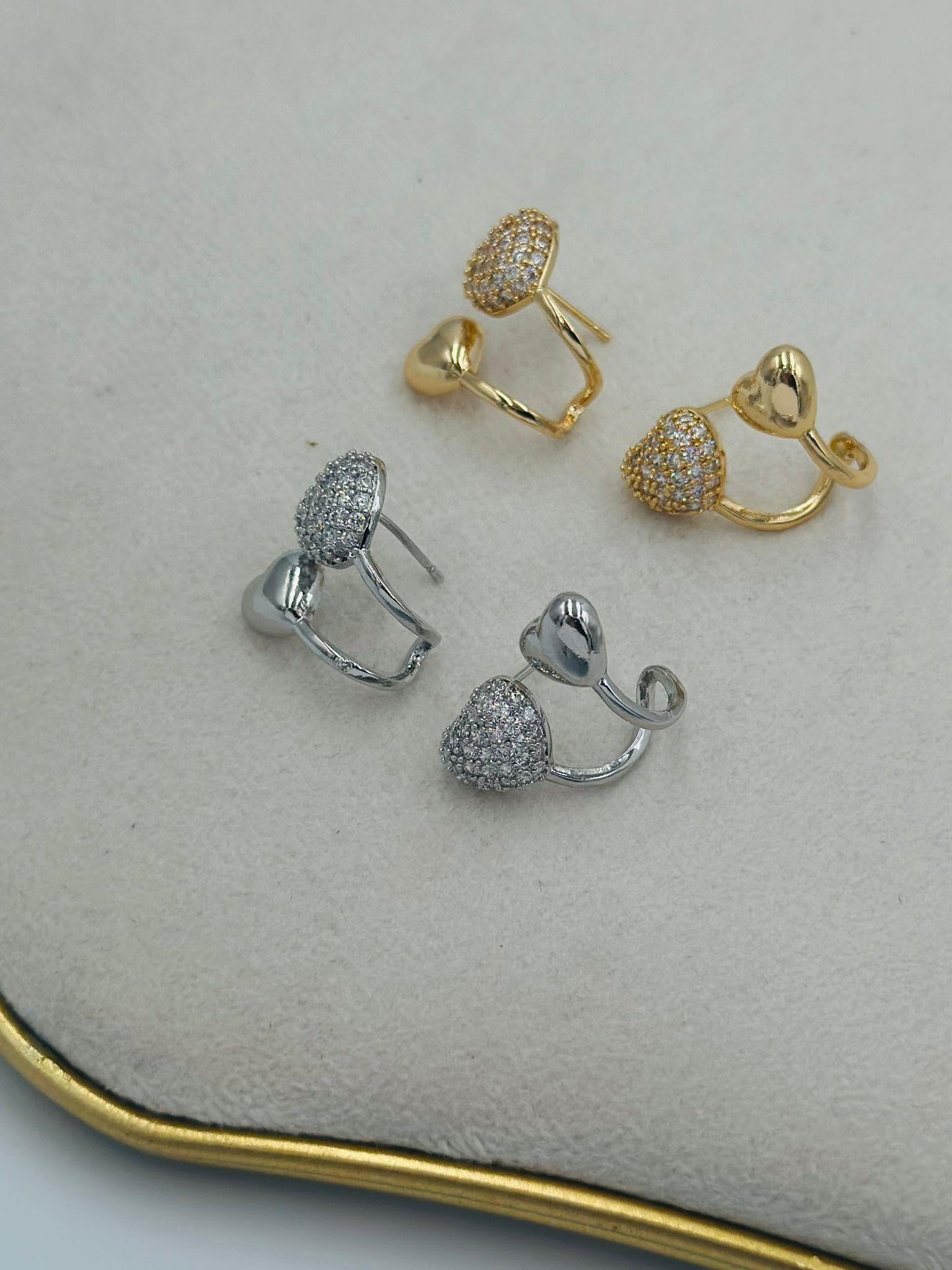 Zirkon Taş İkili Kalp Detay Küpe (Pirinç Kaplama)