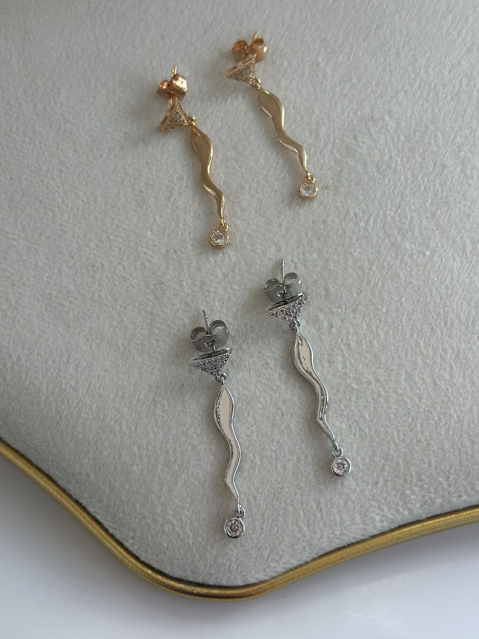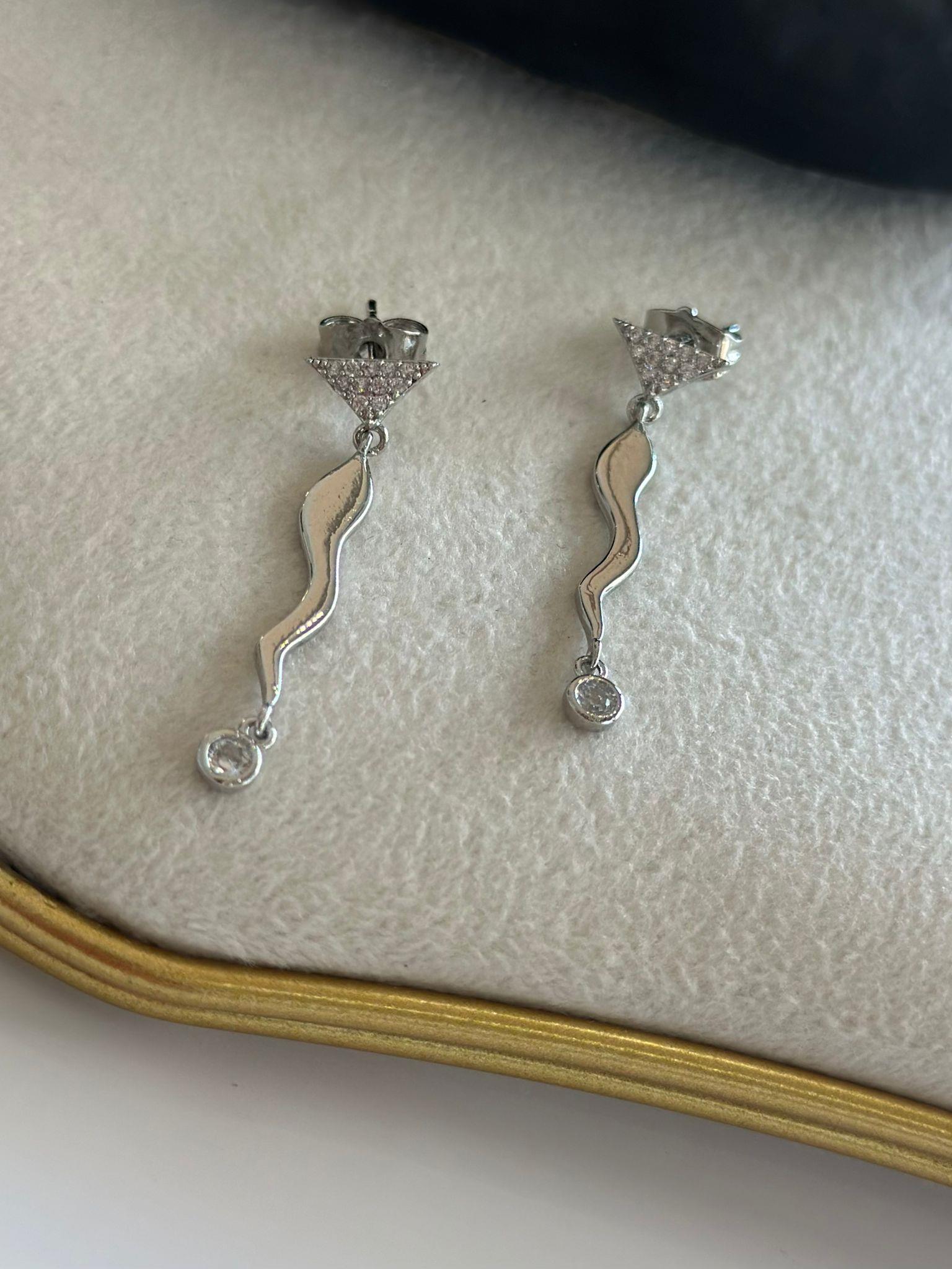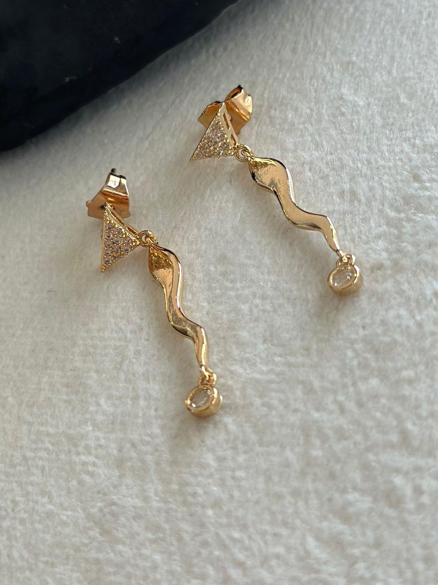 Zirkon Taş Üçgen Ve Kıvrım Detay Sallantılı Küpe (Pirinç Kaplama)