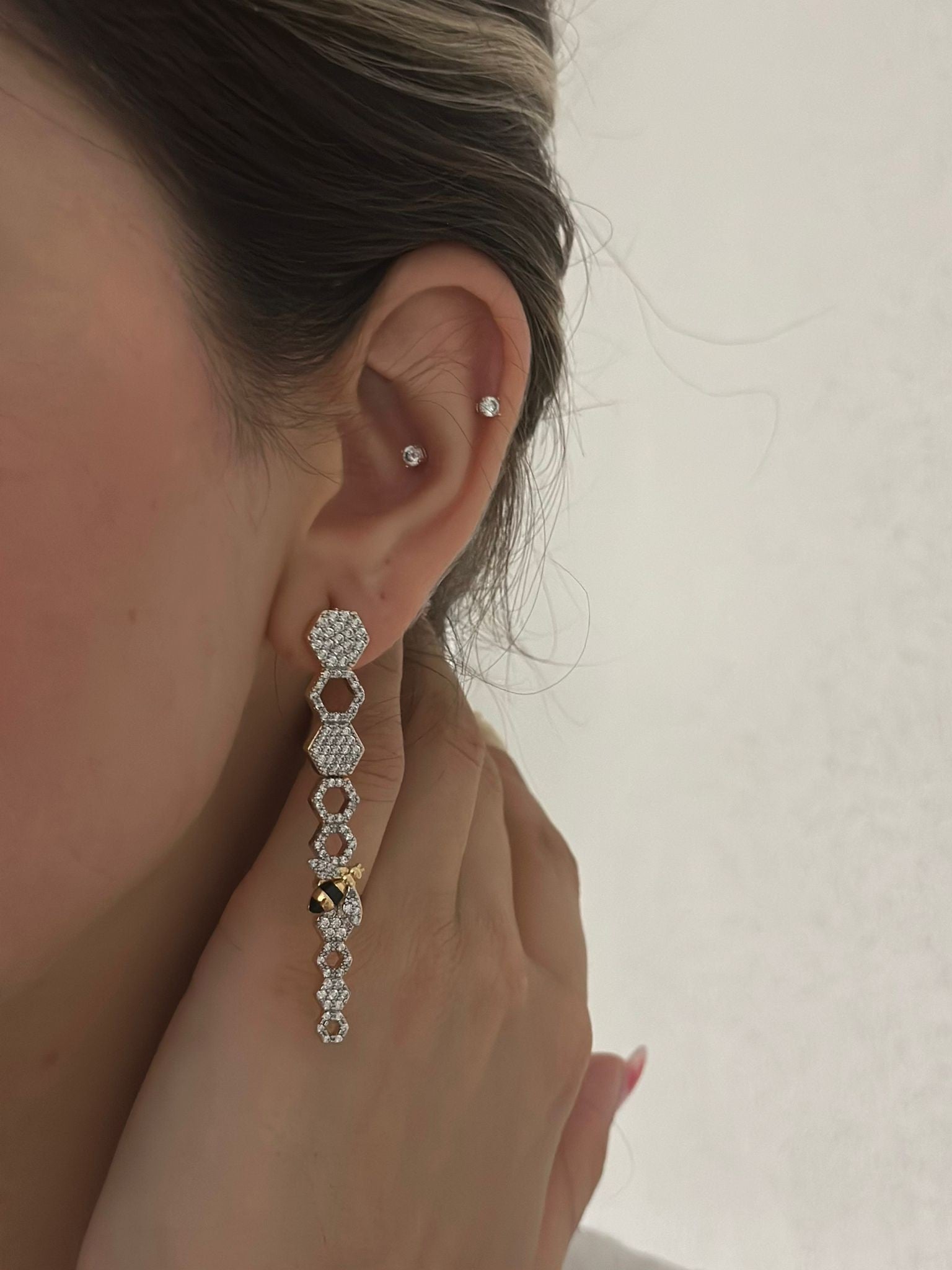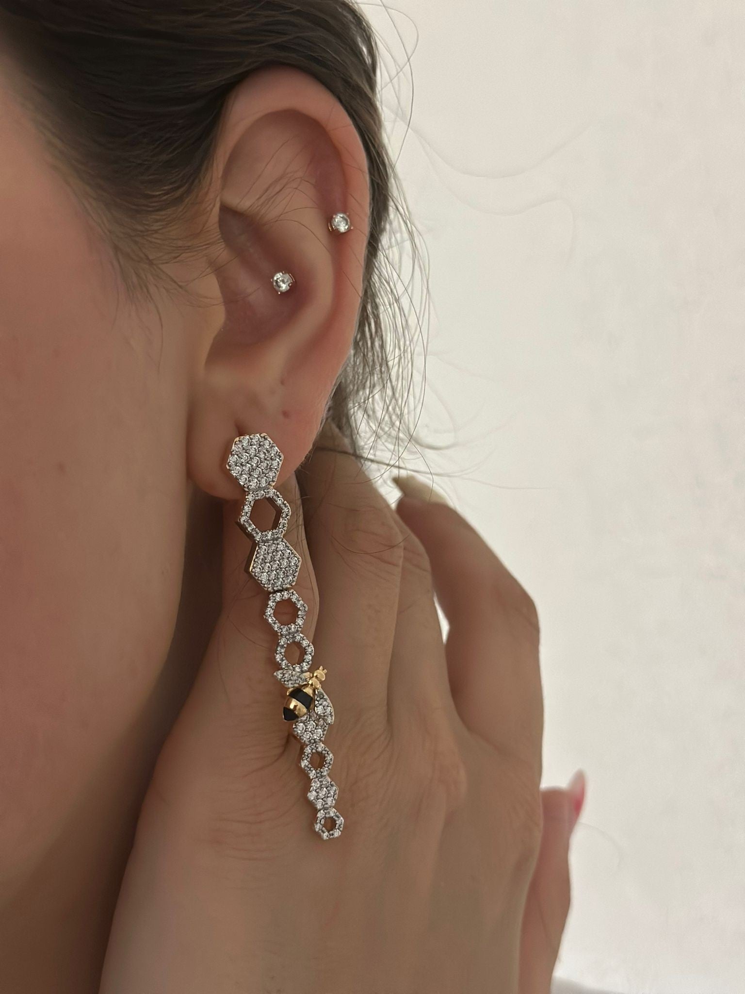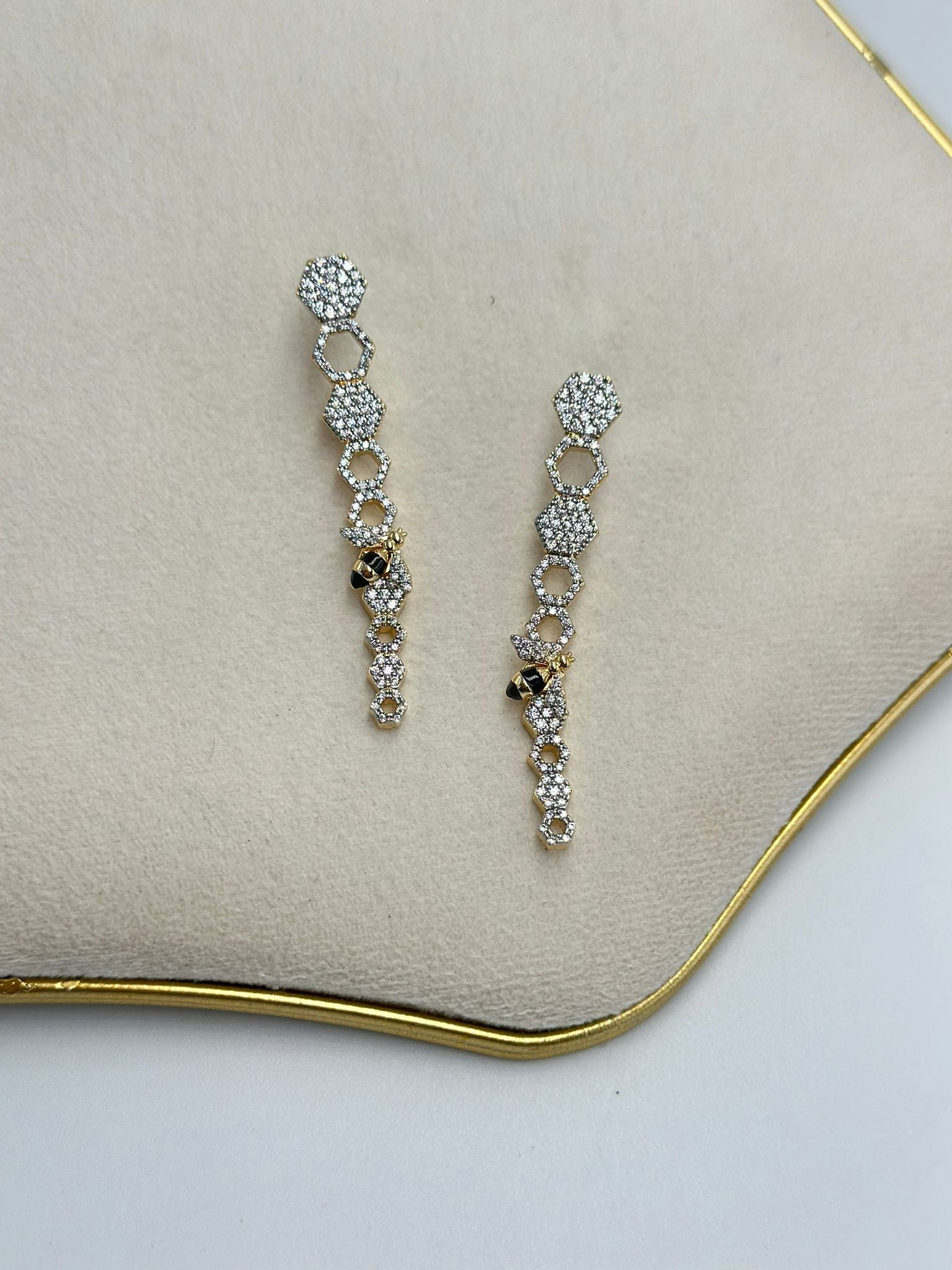 Zirkon Taş Ve Arı Detay Petek Küpe (Çelik)