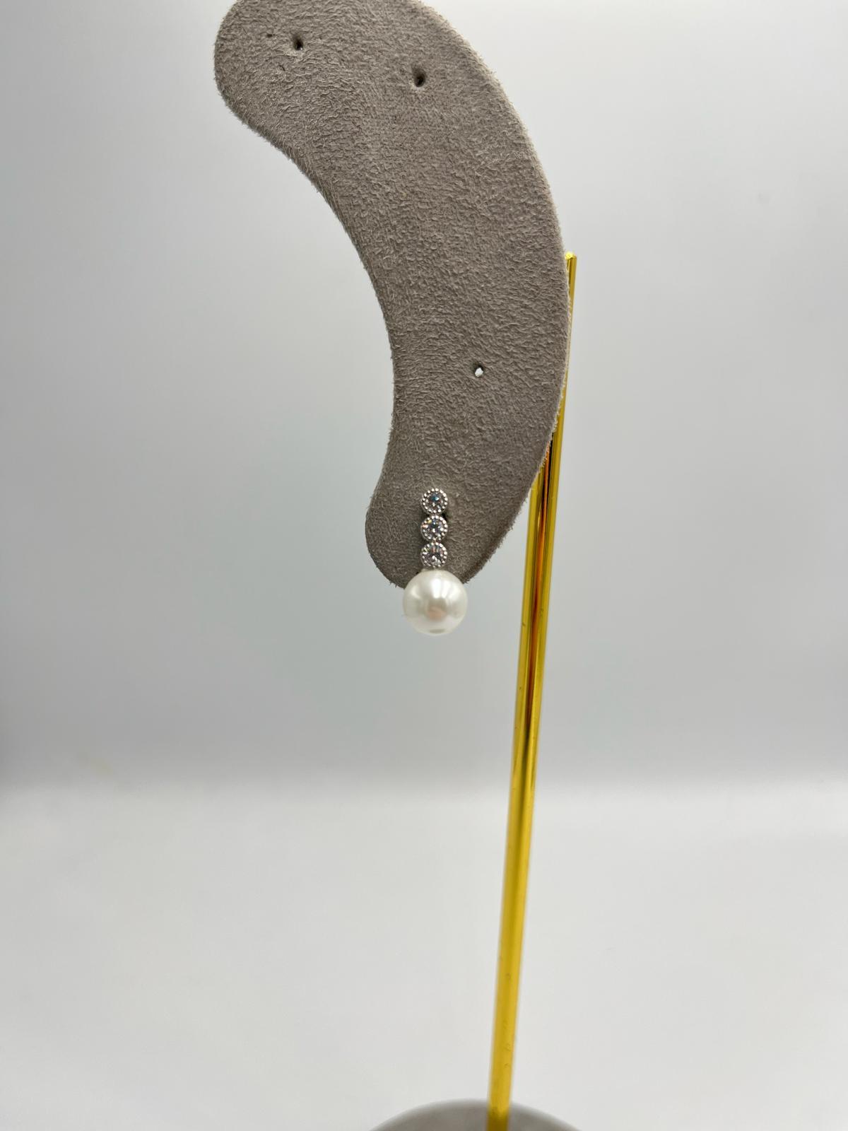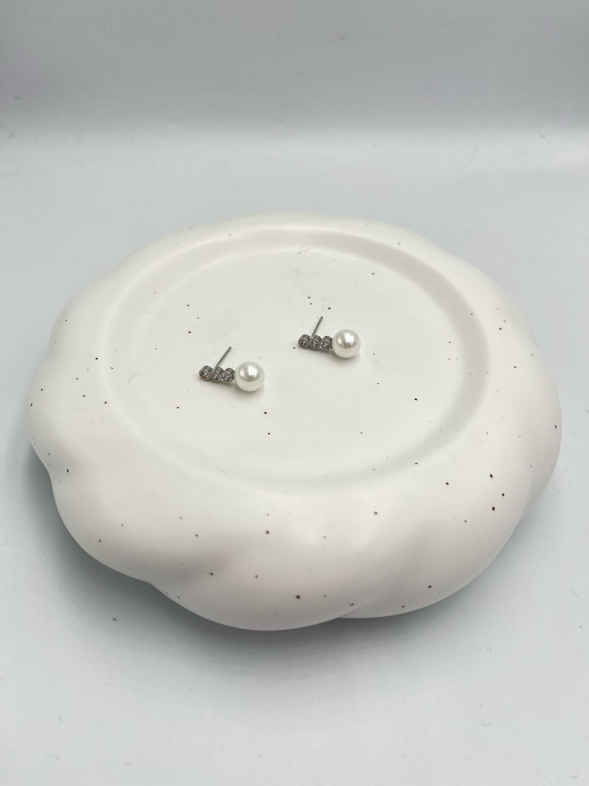 Zirkon Taş Ve İnci Detaylı Minimal Küpe (Çelik)