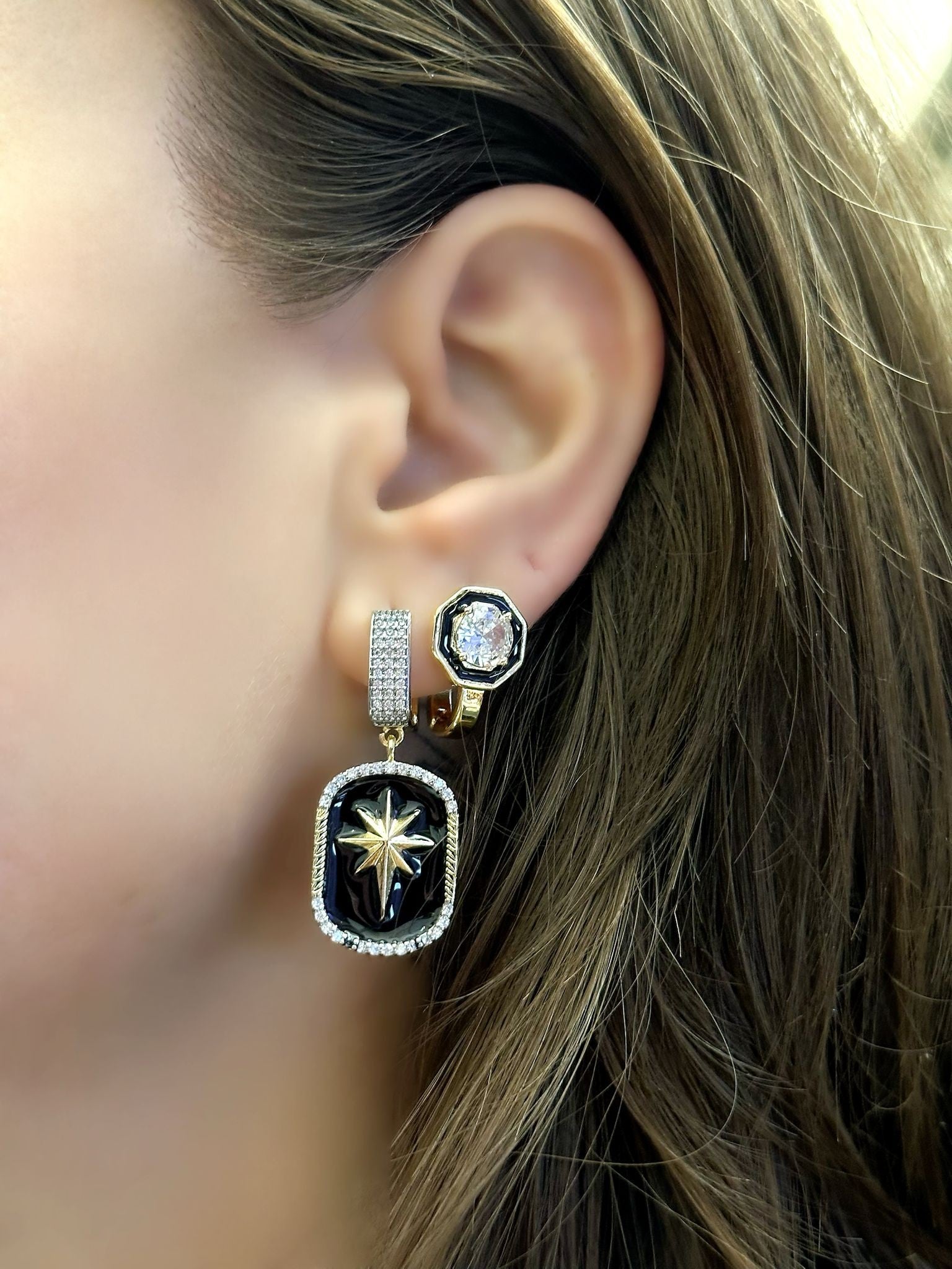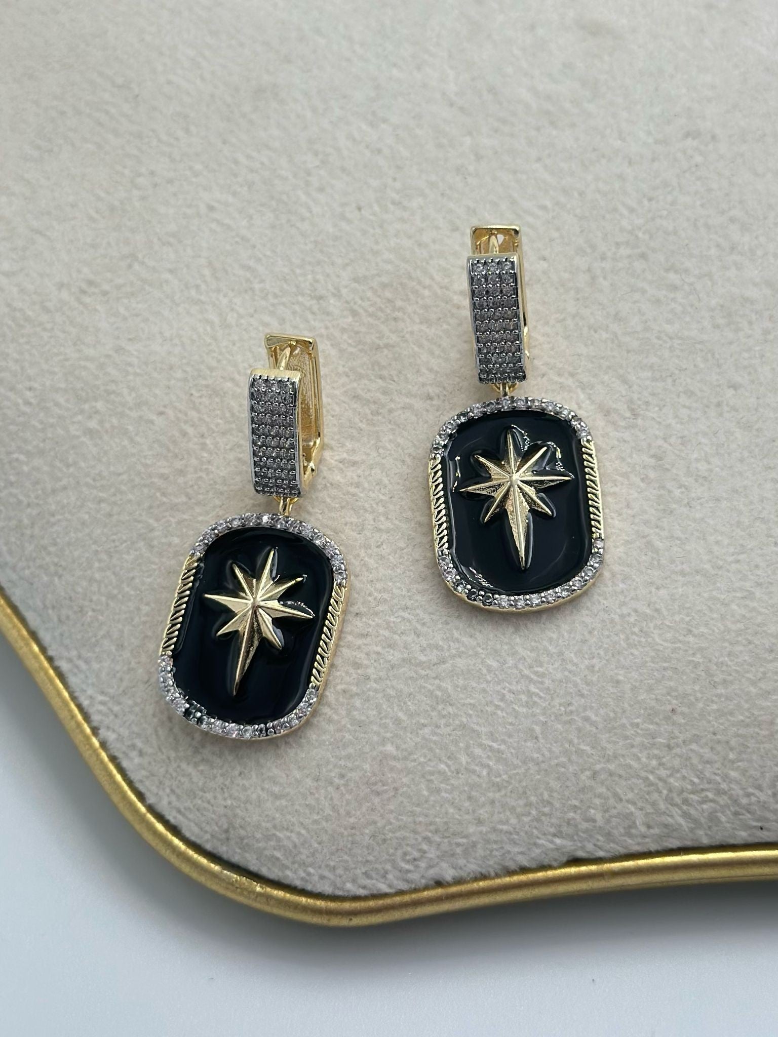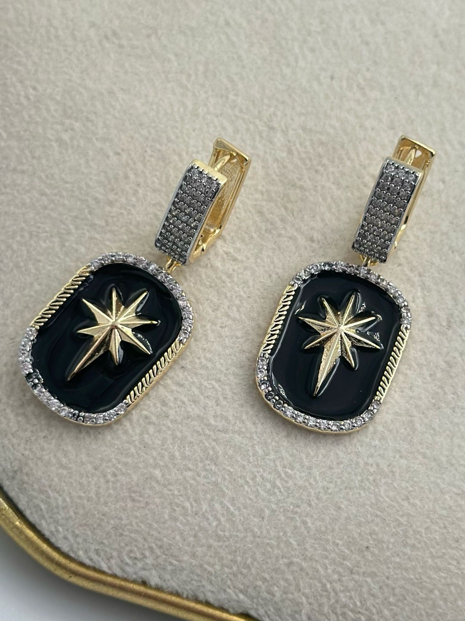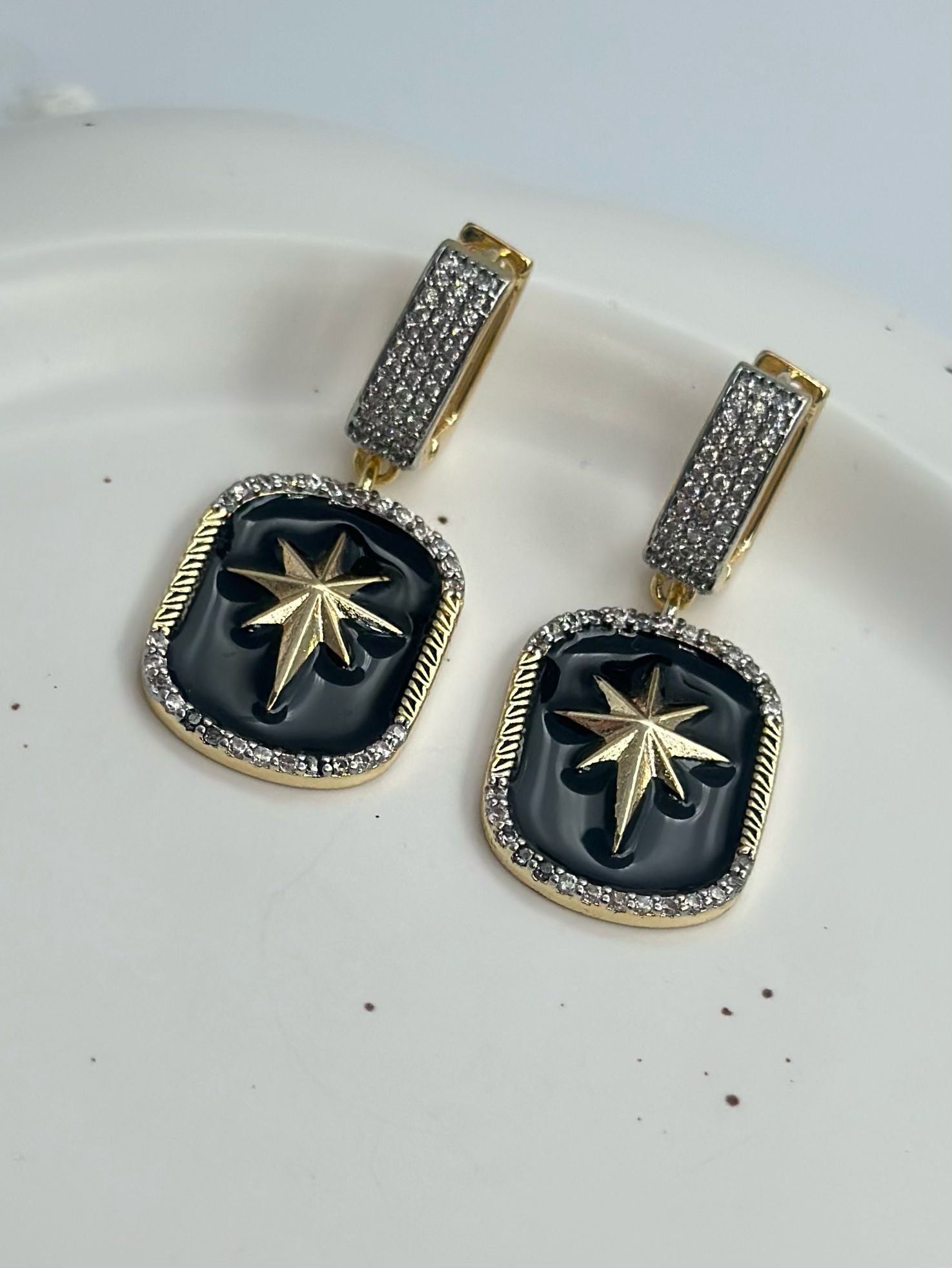 Zirkon Taş Ve Kutup Yıldızı Detay Sallantılı Çelik Küpe