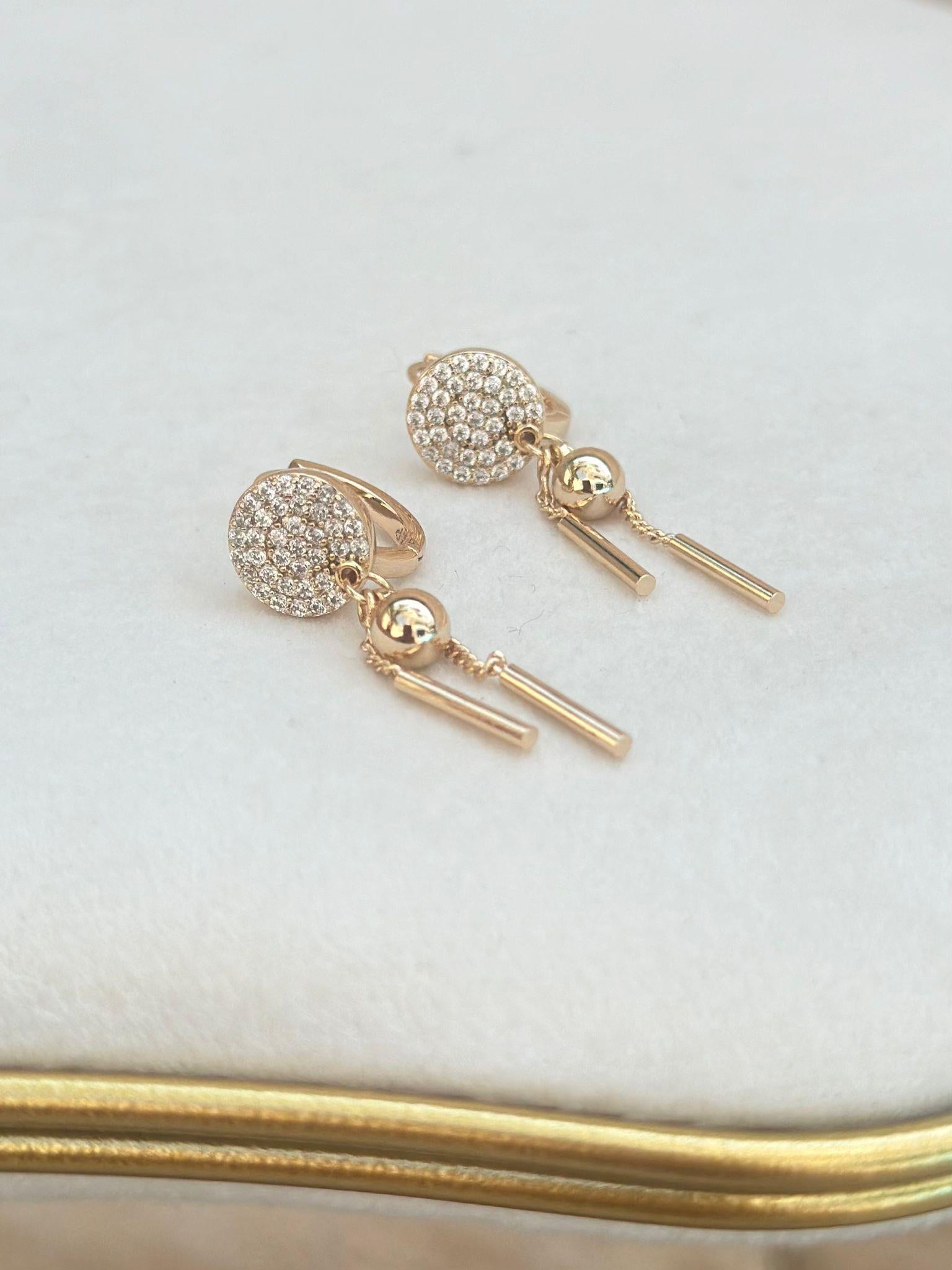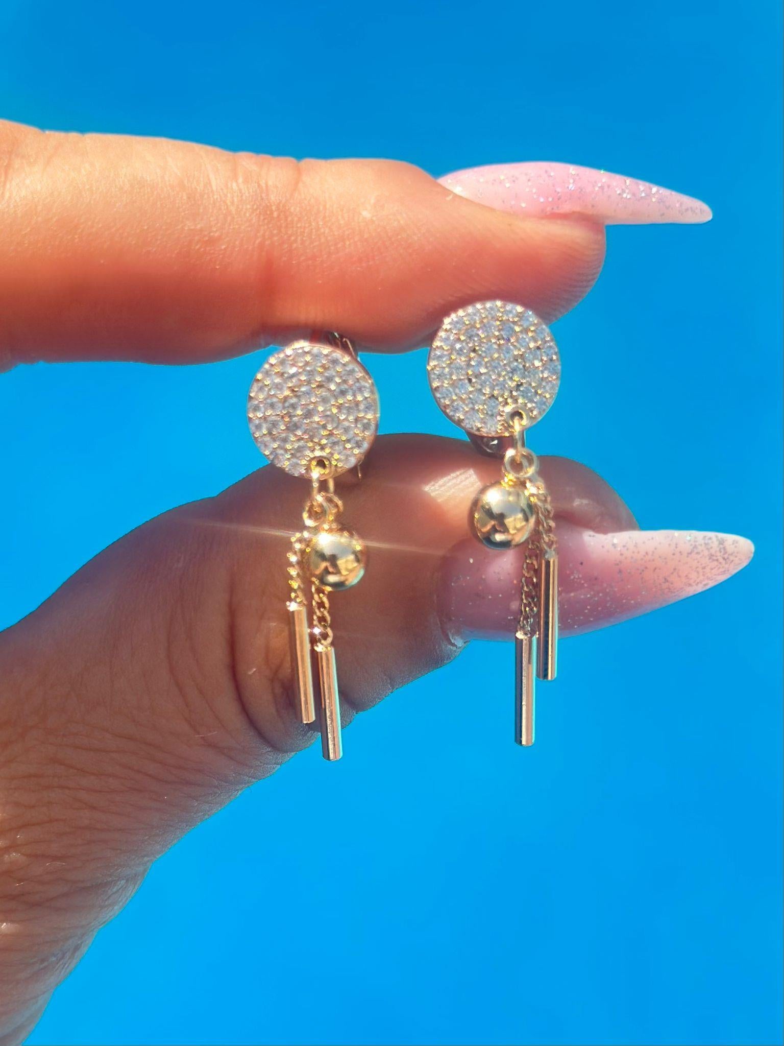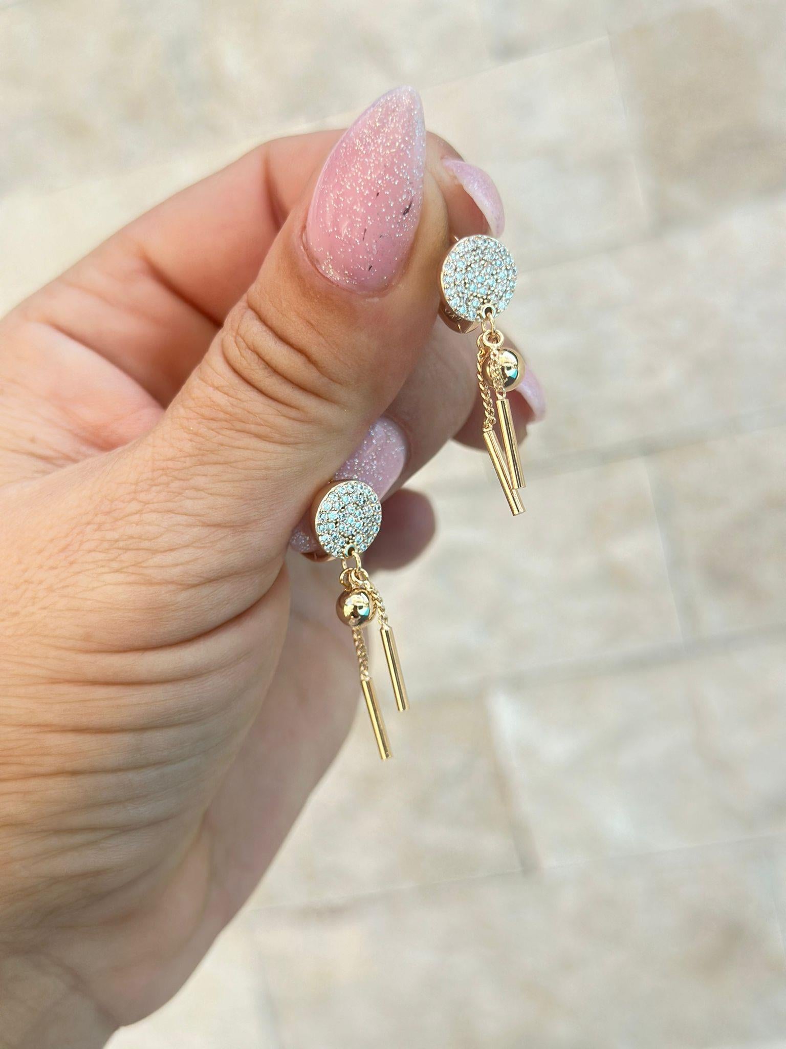 Zirkon Taş Ve Topçuk Detaylı Minimal Çelik Küpe