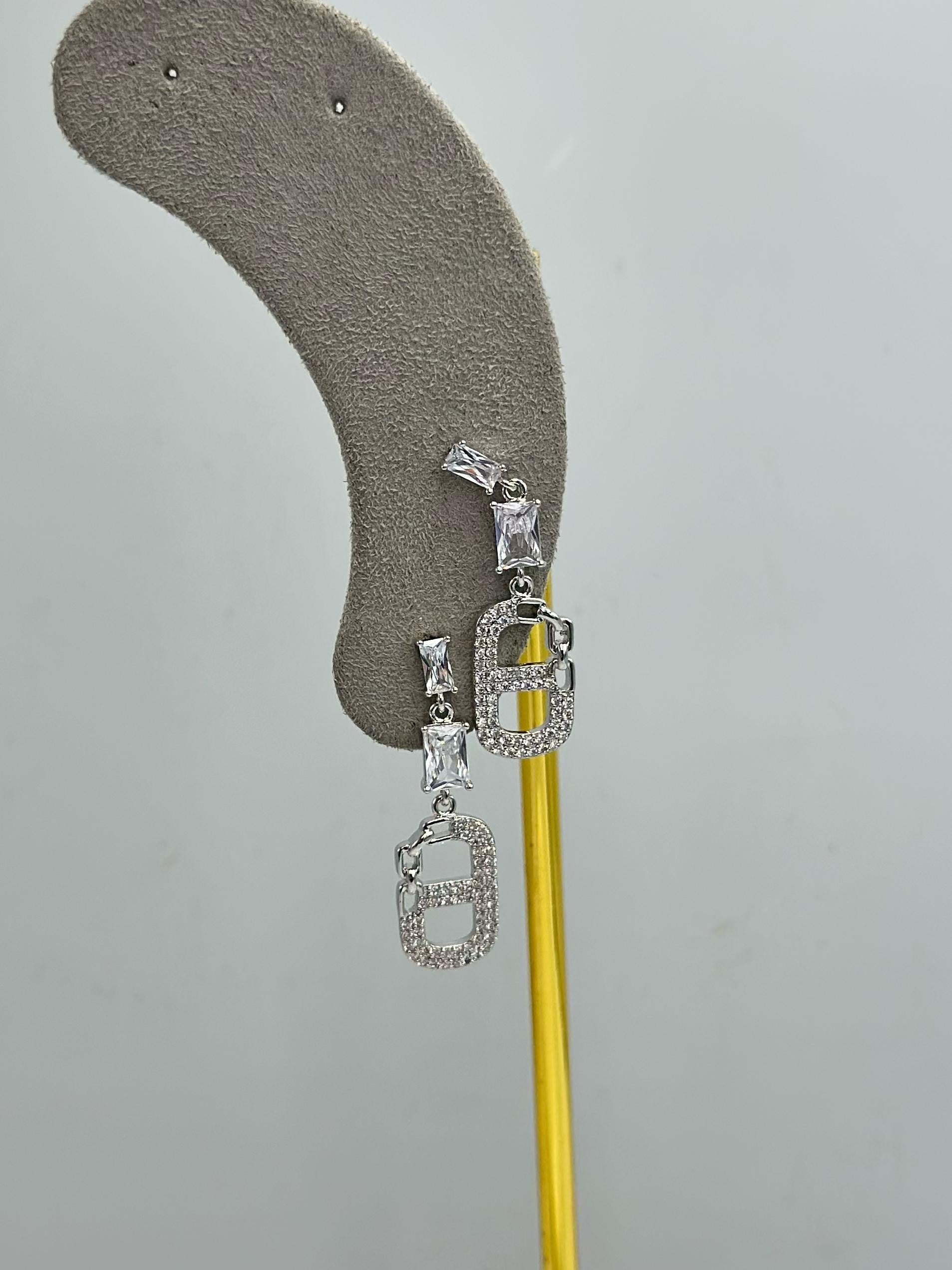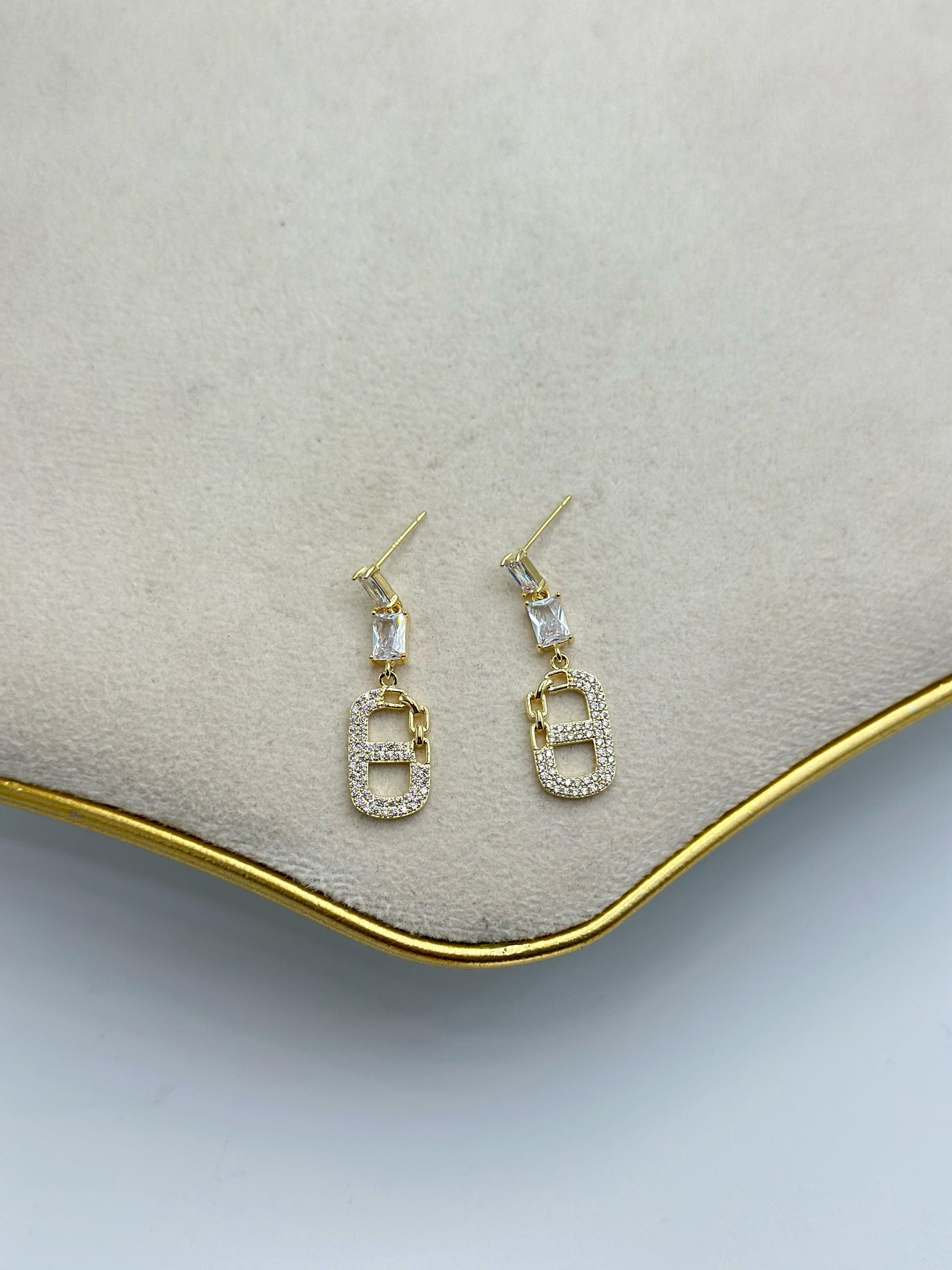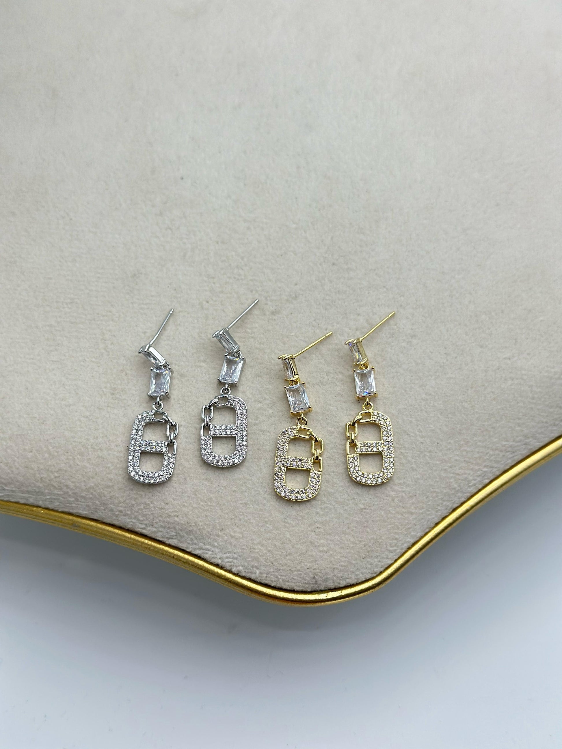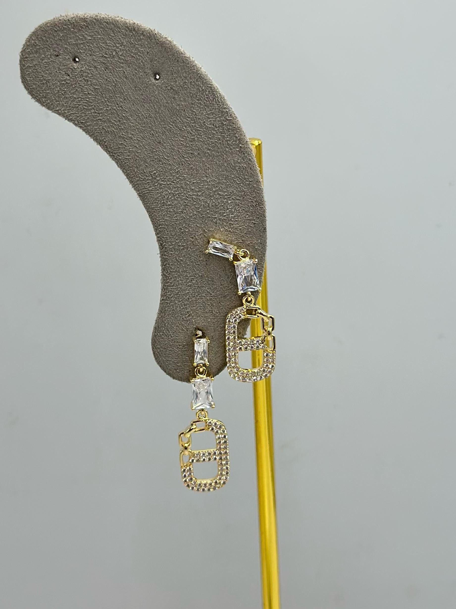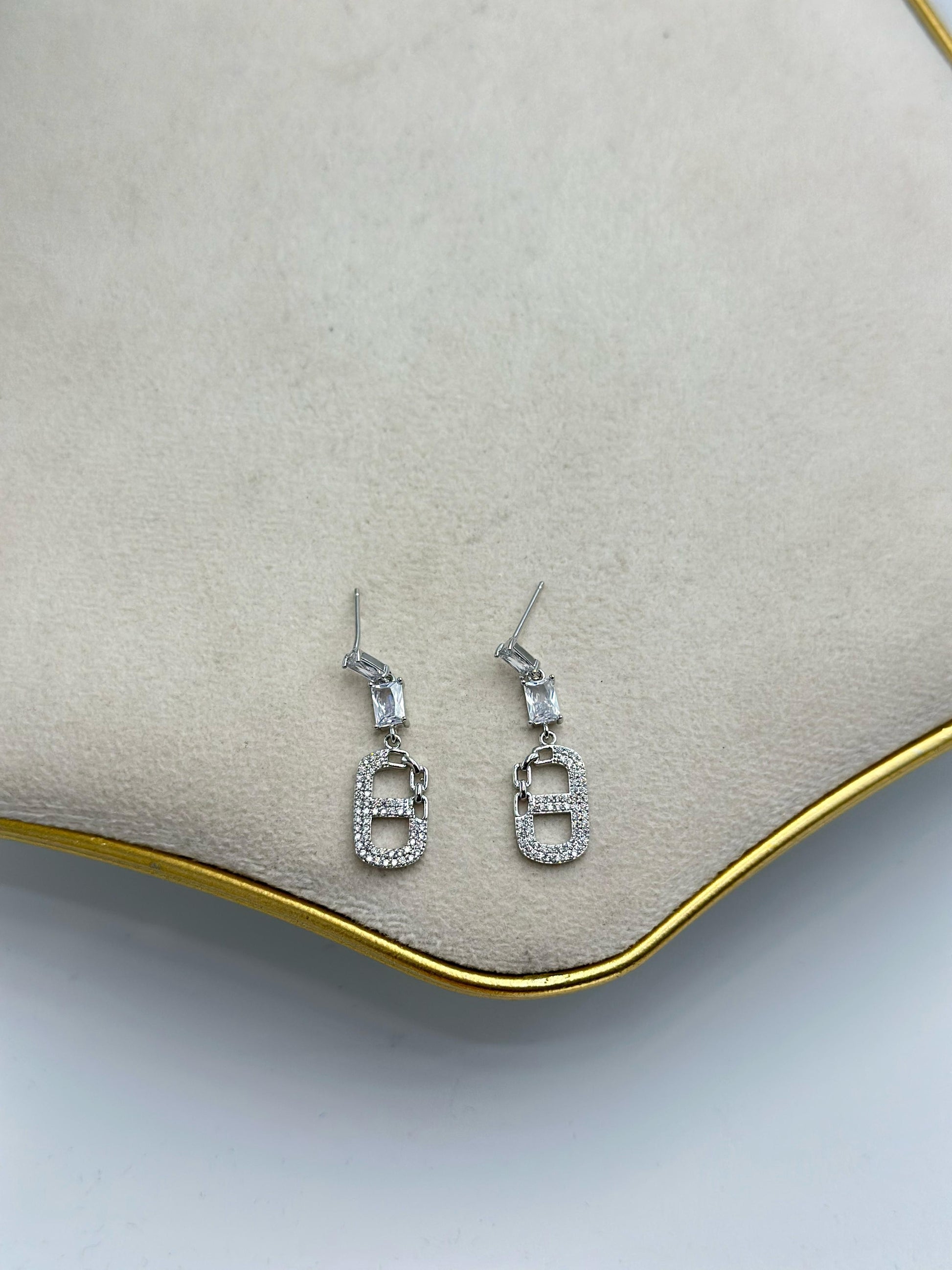 Zirkon Taş Ve Zincir Detaylı Minimal Çelik Küpe