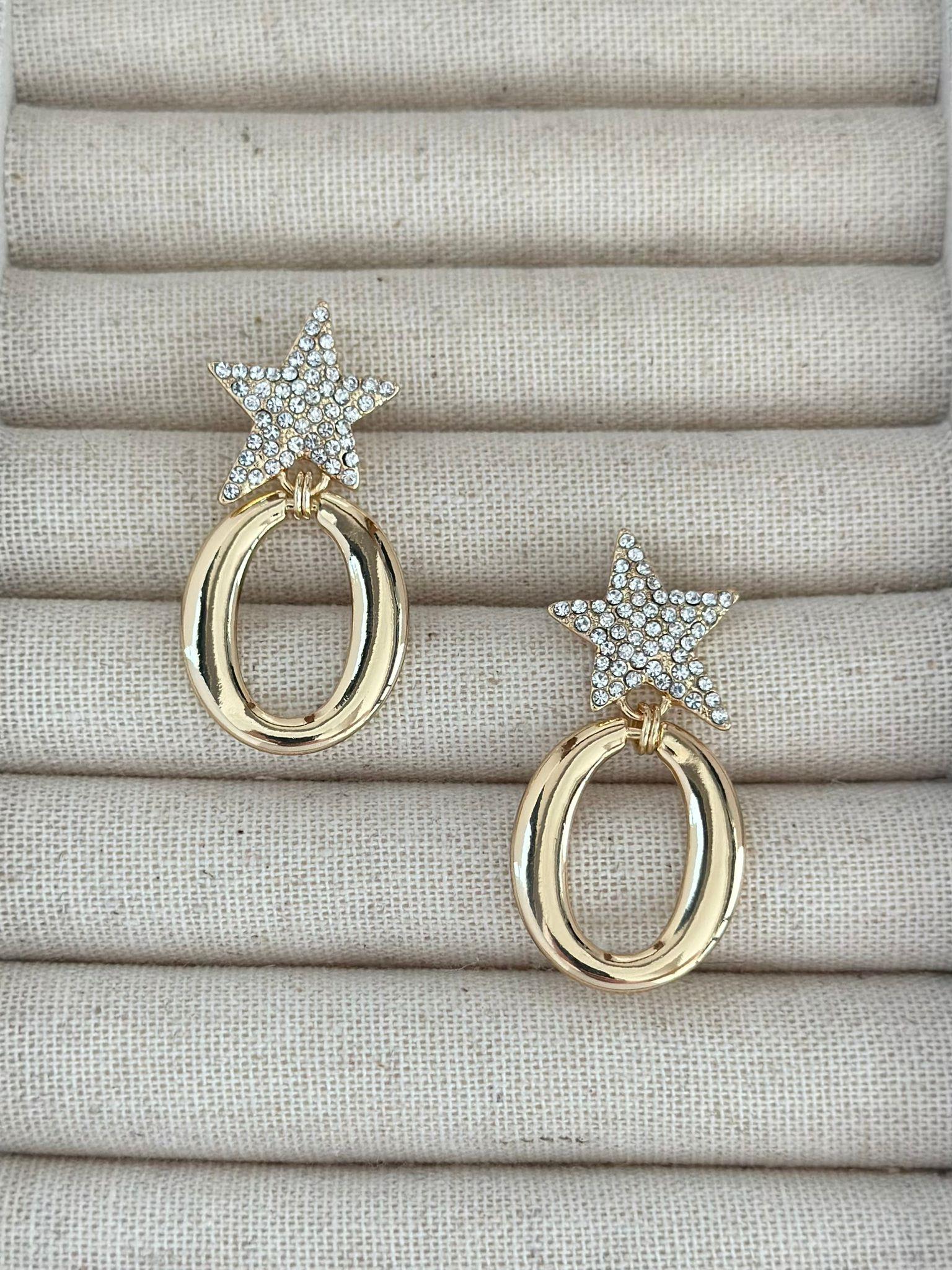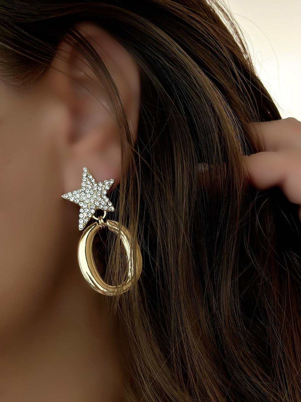 Zirkon Taş Yıldız Figürlü Sallantılı Küpe (Pirinç Kaplama)
