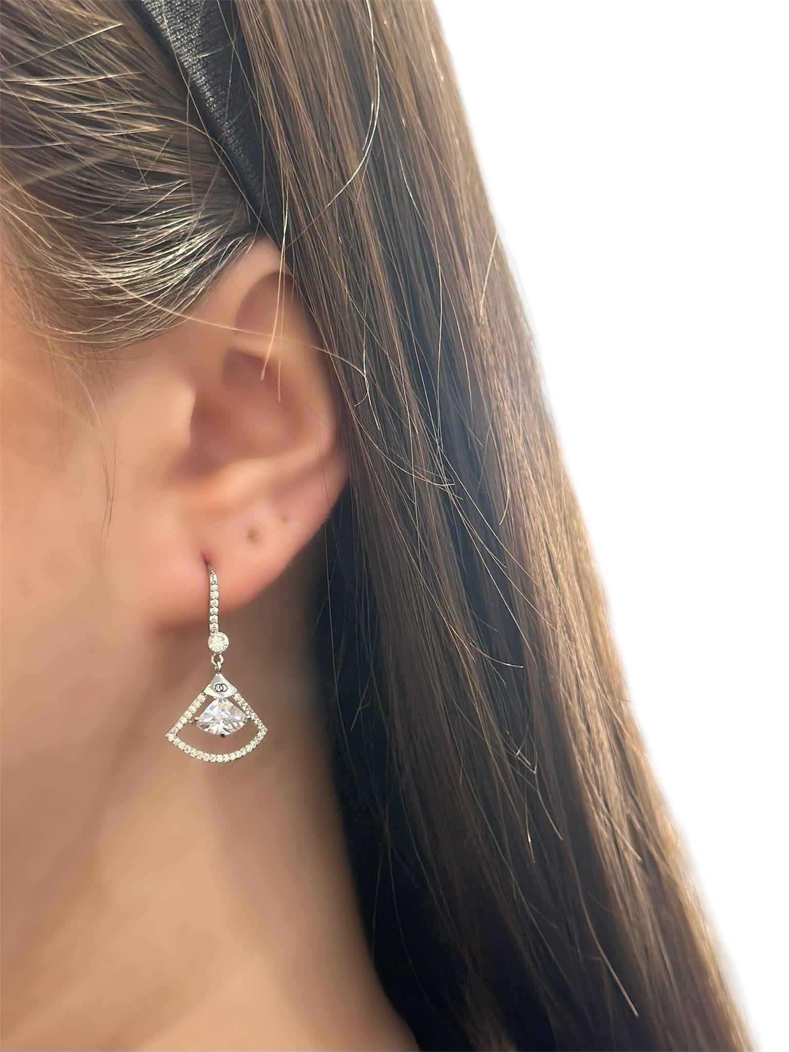 Zirkon ve Tek Taş Detaylı Sallantılı Gümüş Kaplama Minimal Üçgen Küpe