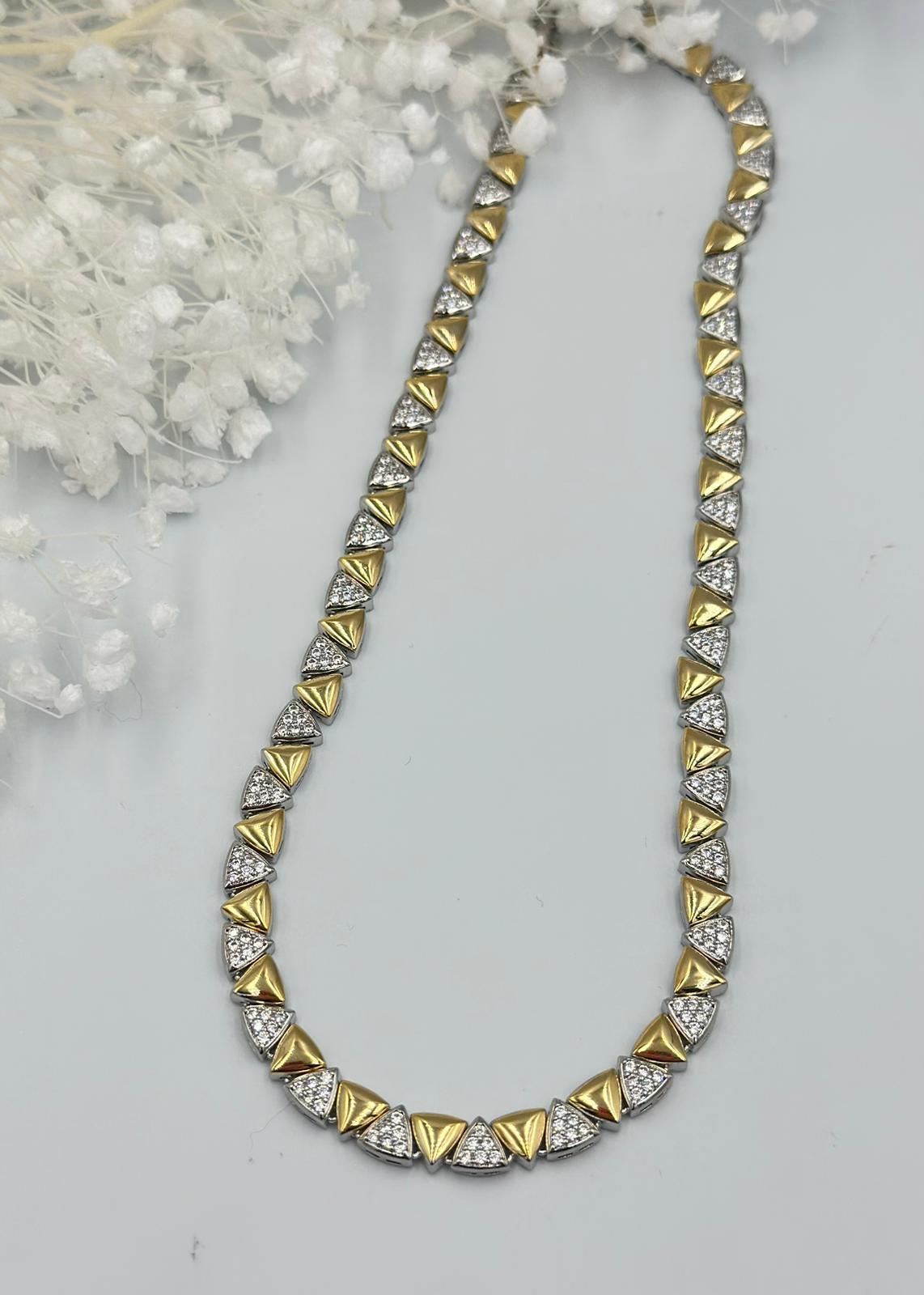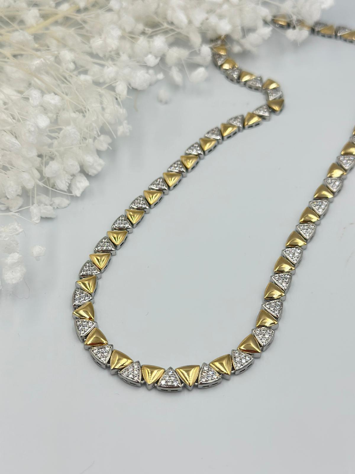 14K Altın Kaplama Zirkon Taş Ve Üçgen Detay Kolye