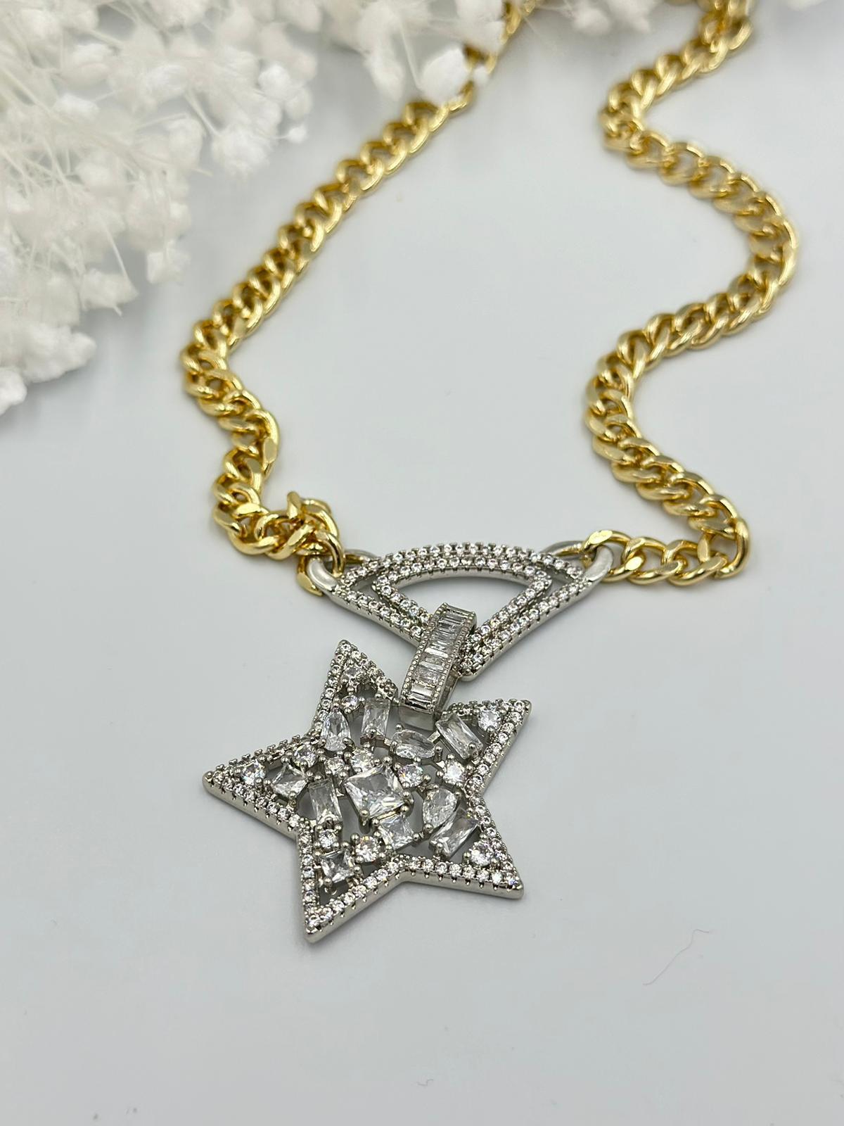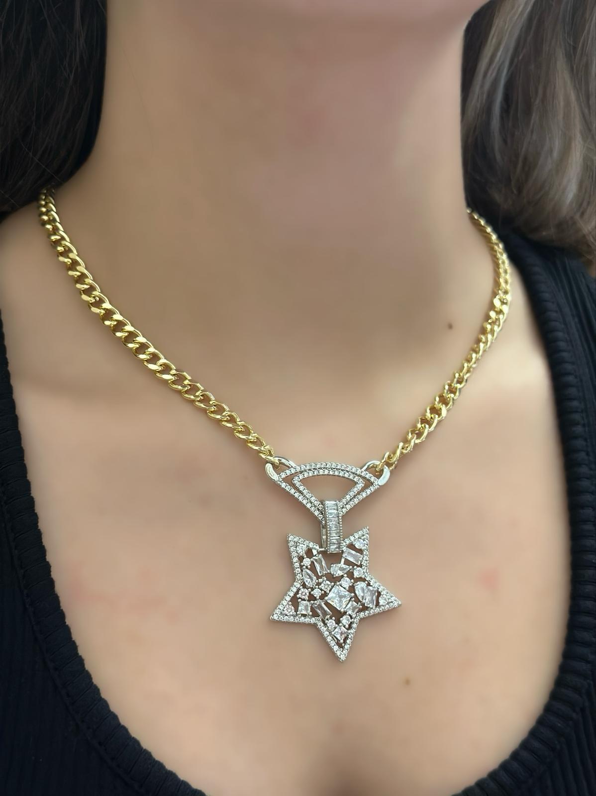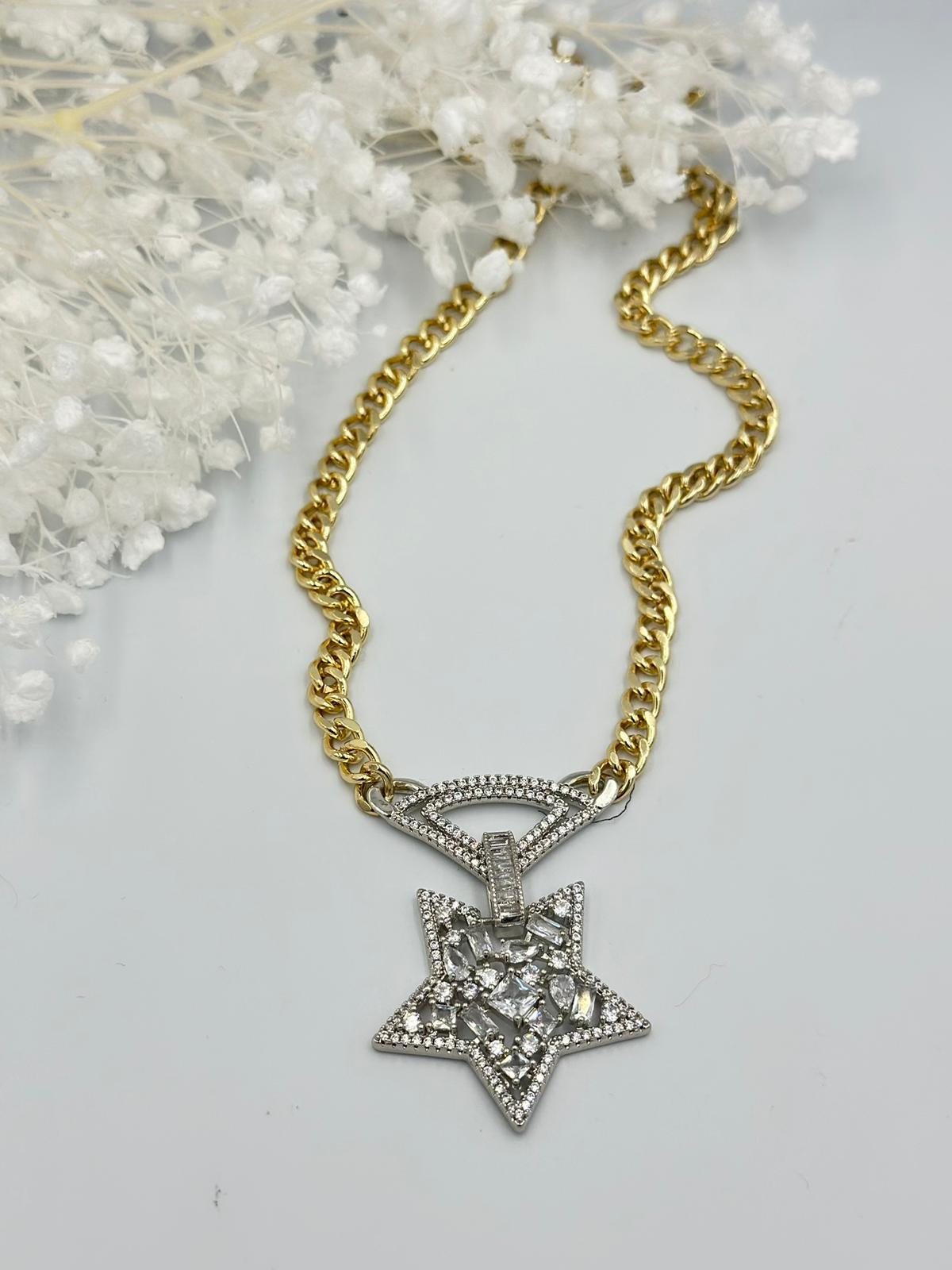 Baget Taş Detaylı Yıldız Çelik Kolye
