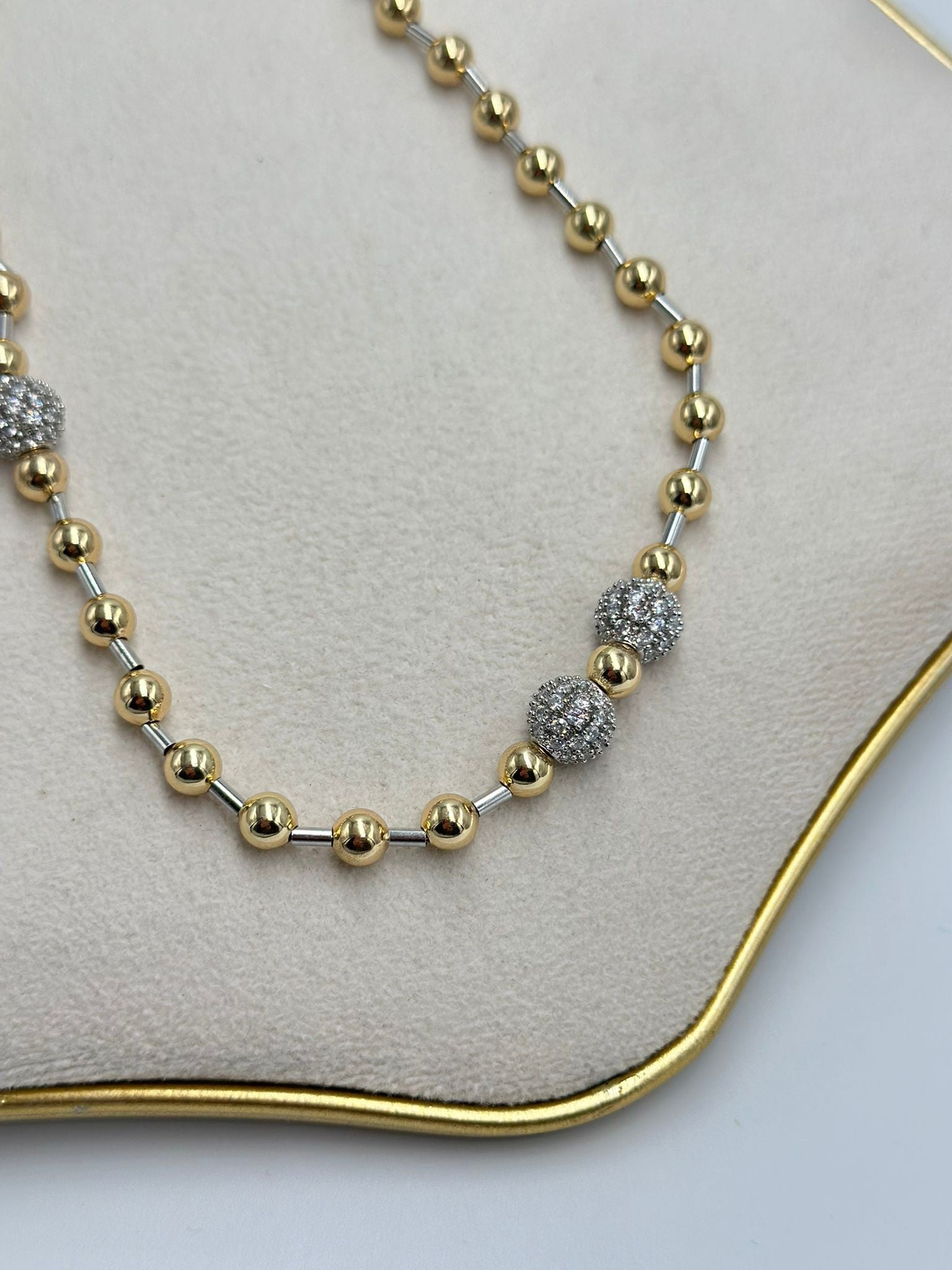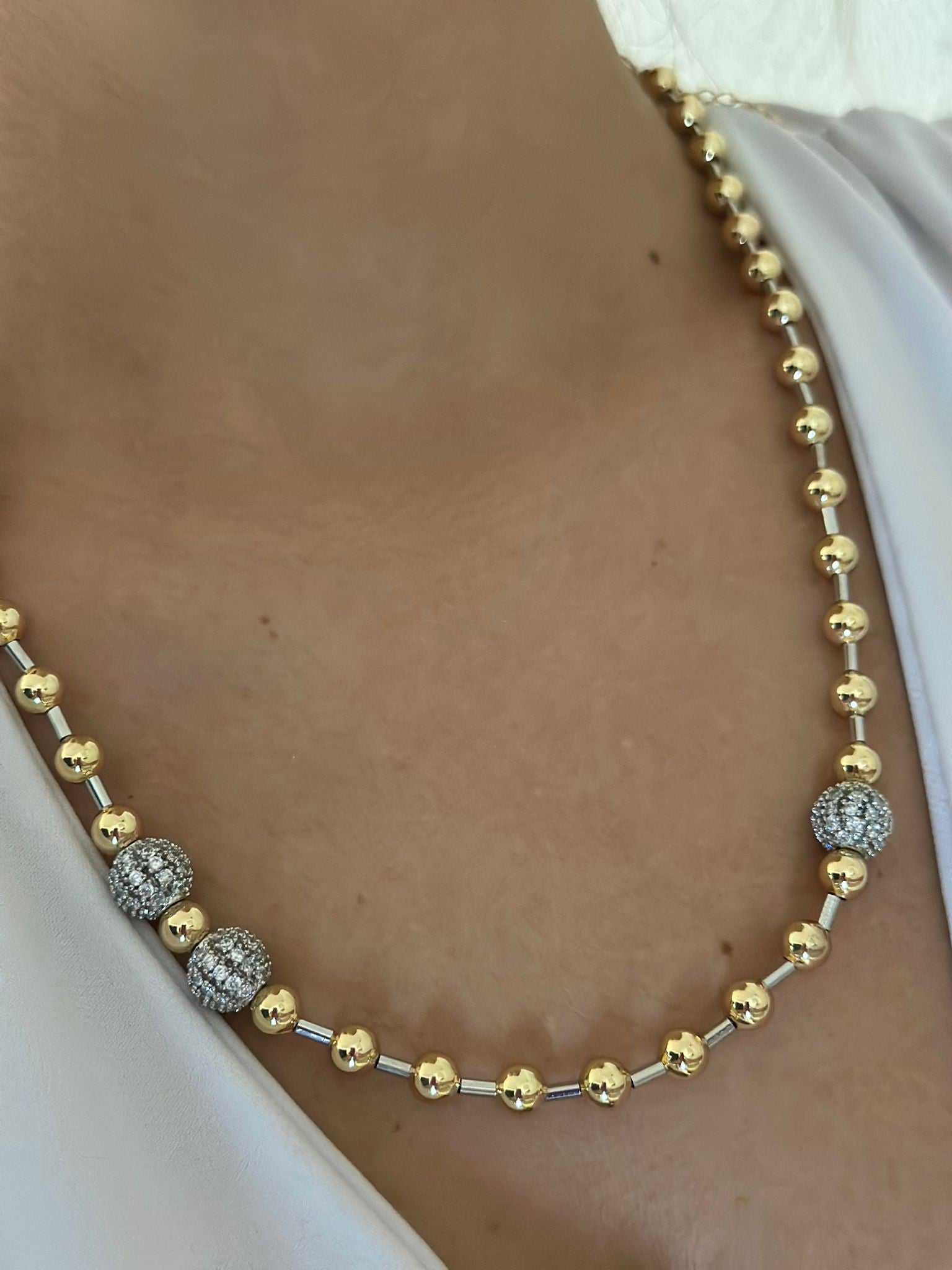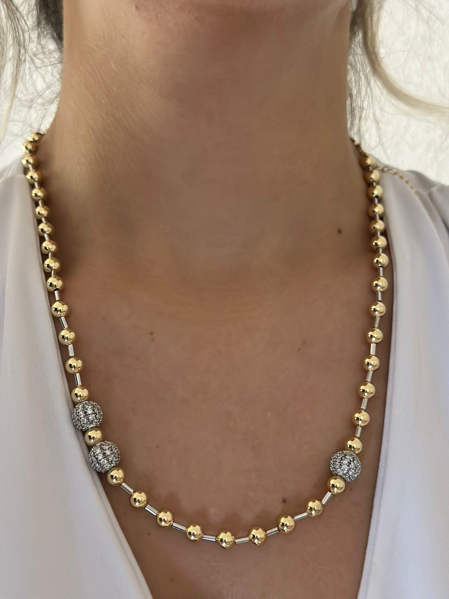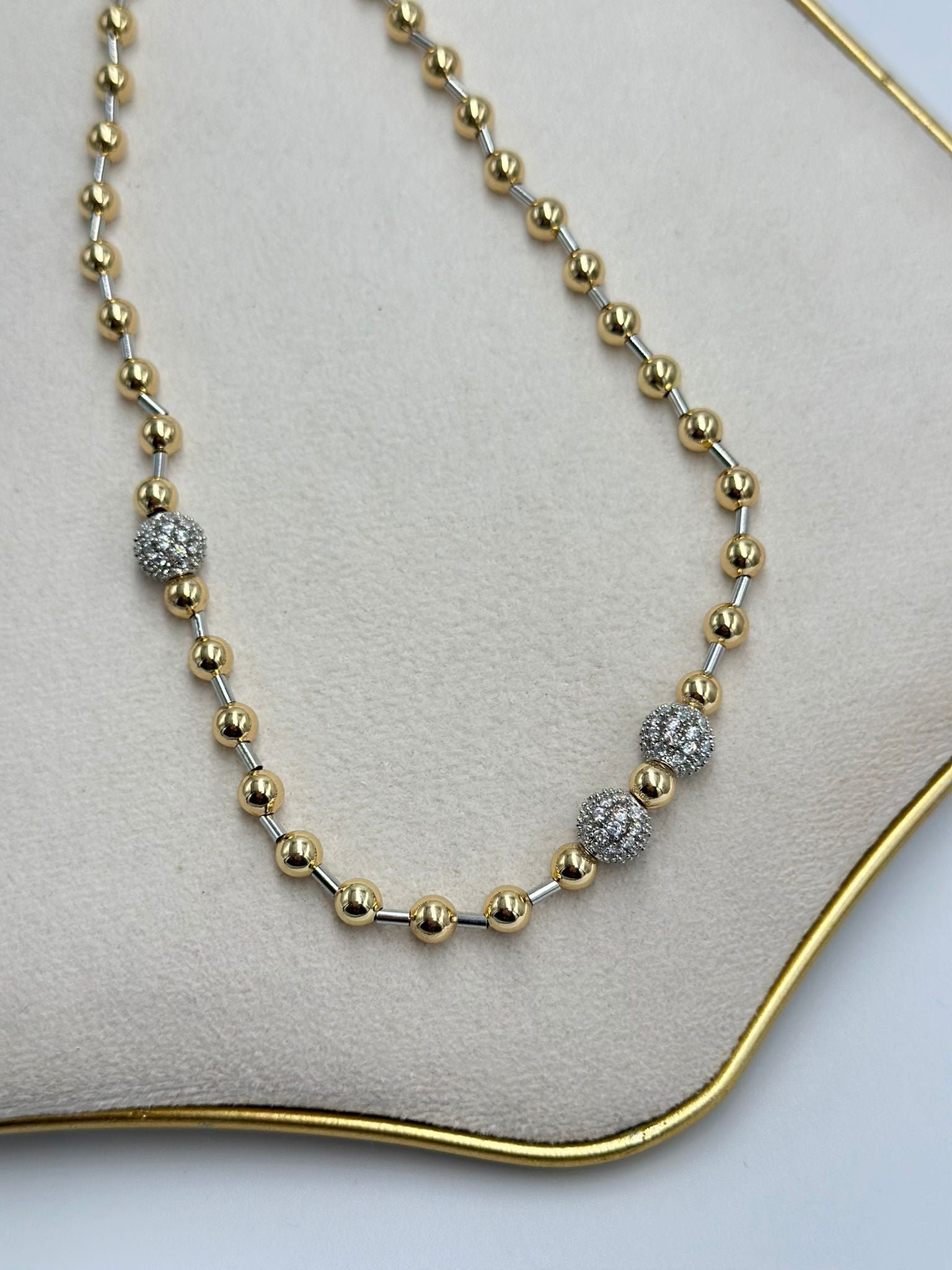 Çift Renk Detay Büyüklü Küçüklü Topçuk Kolye (Çelik)