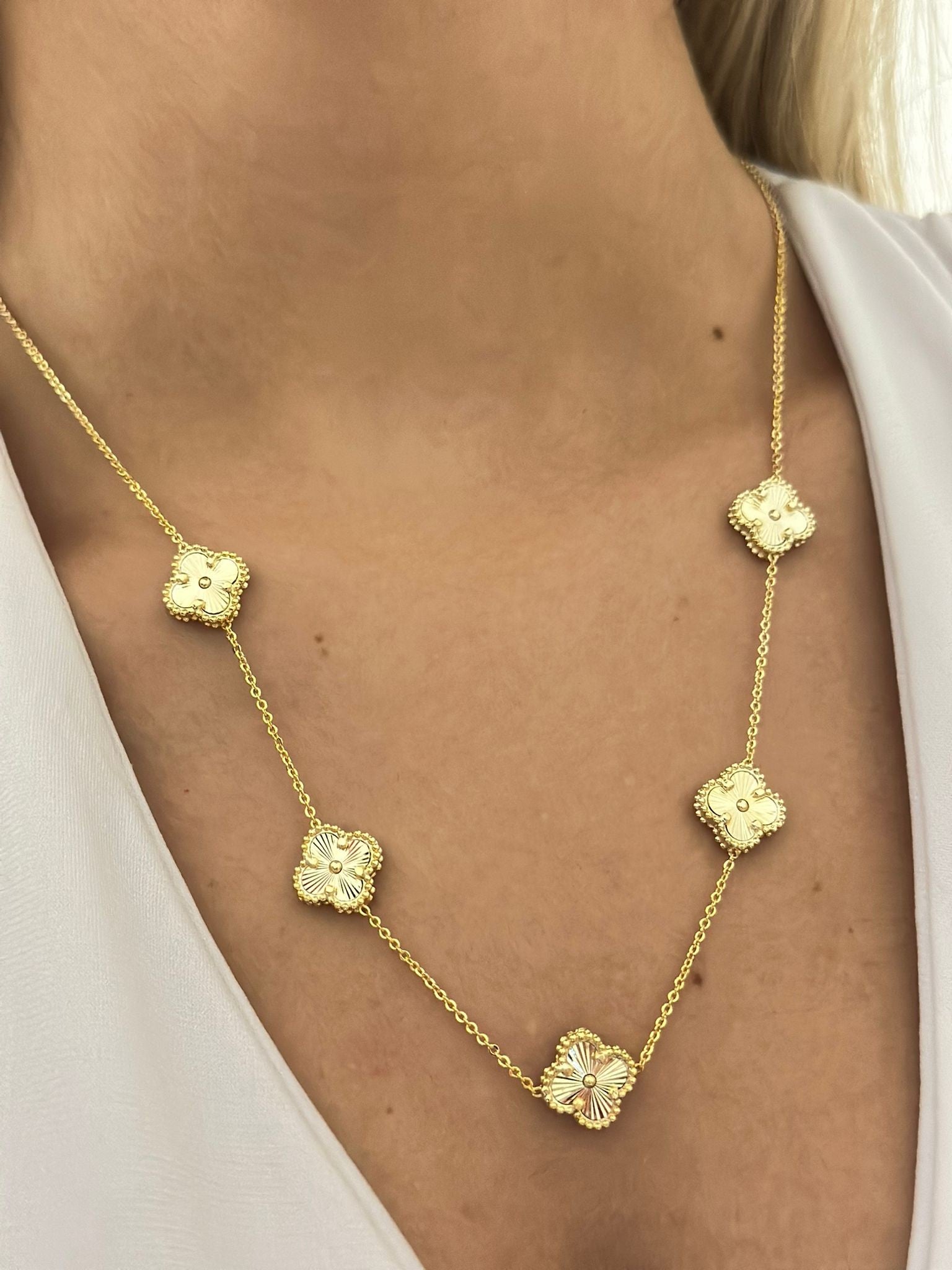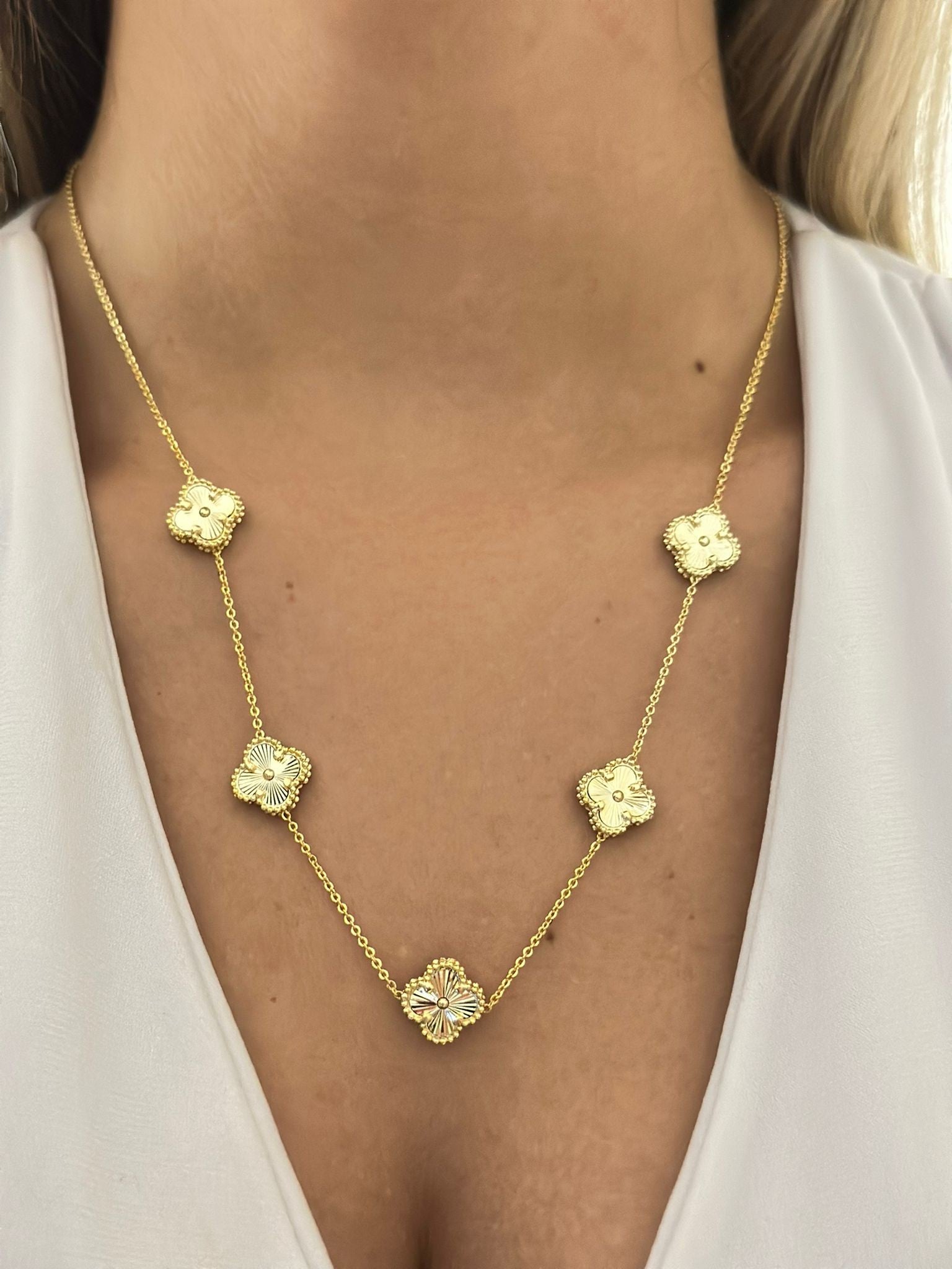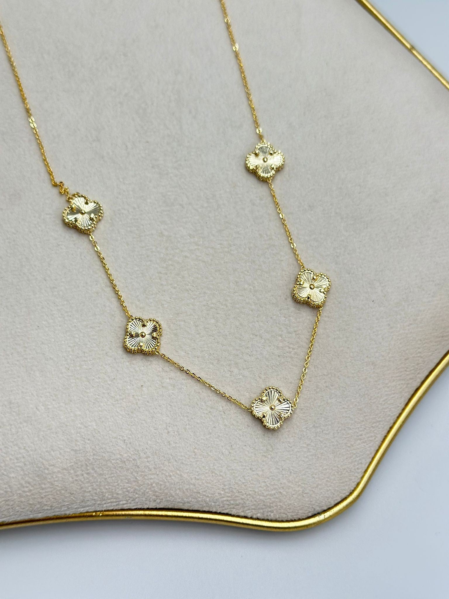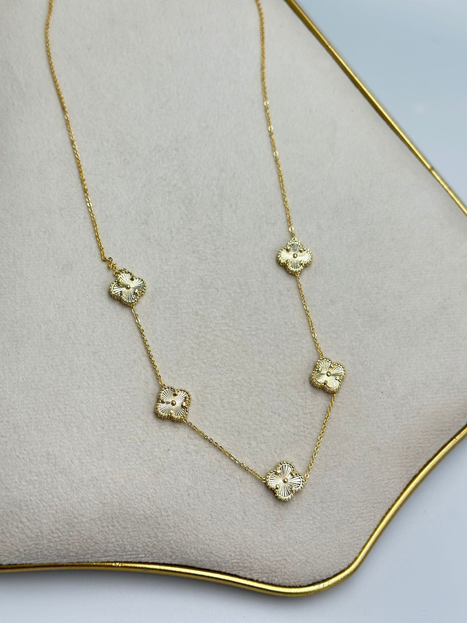 Çizgi Plaka Sıralı Yonca Detay Çelik Kolye