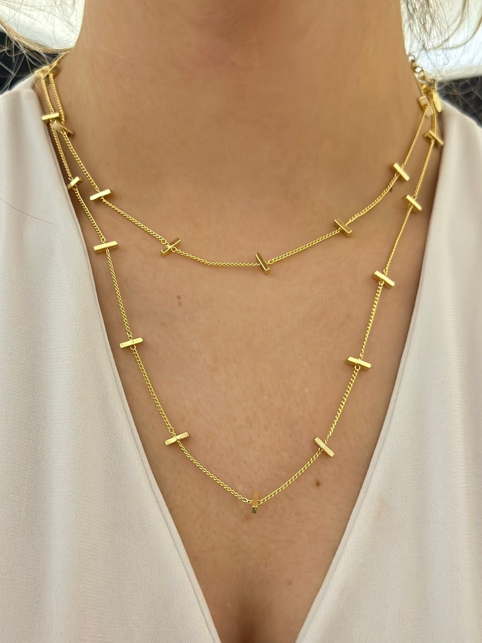 Çubuk Detay Dolamalı Uzun Çelik Kolye