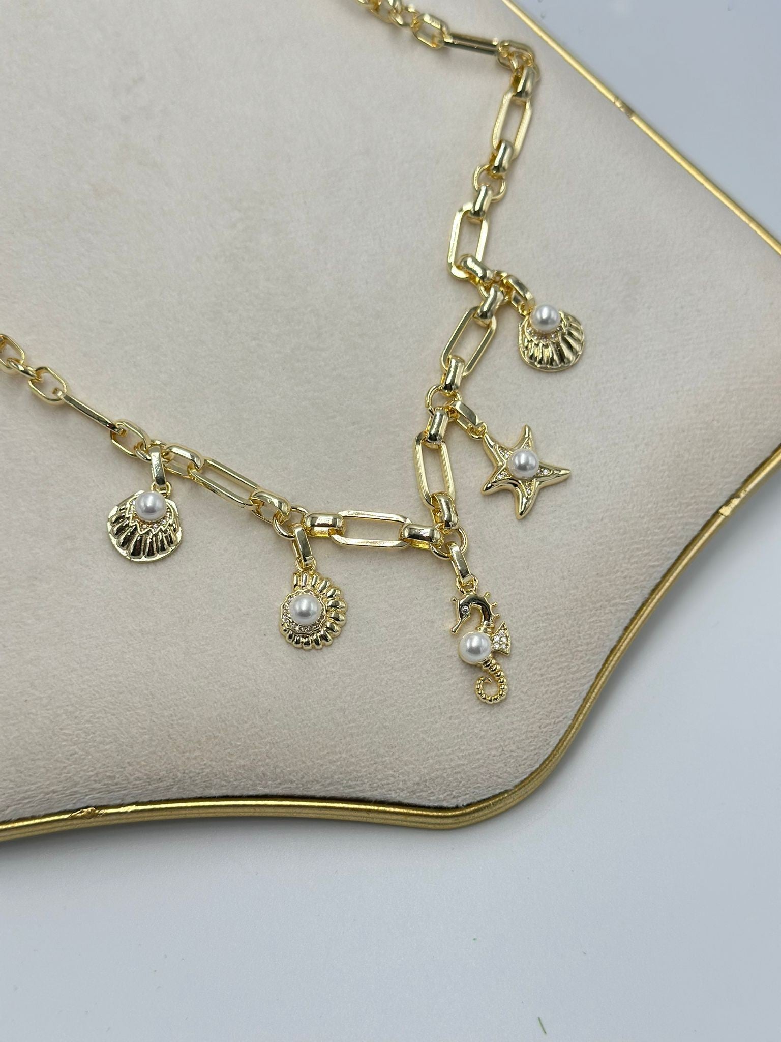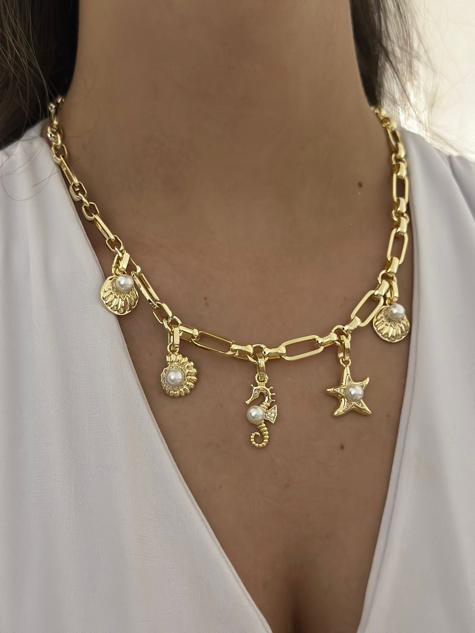 Deniz Atı İnci Detay Charm Çelik Kolye