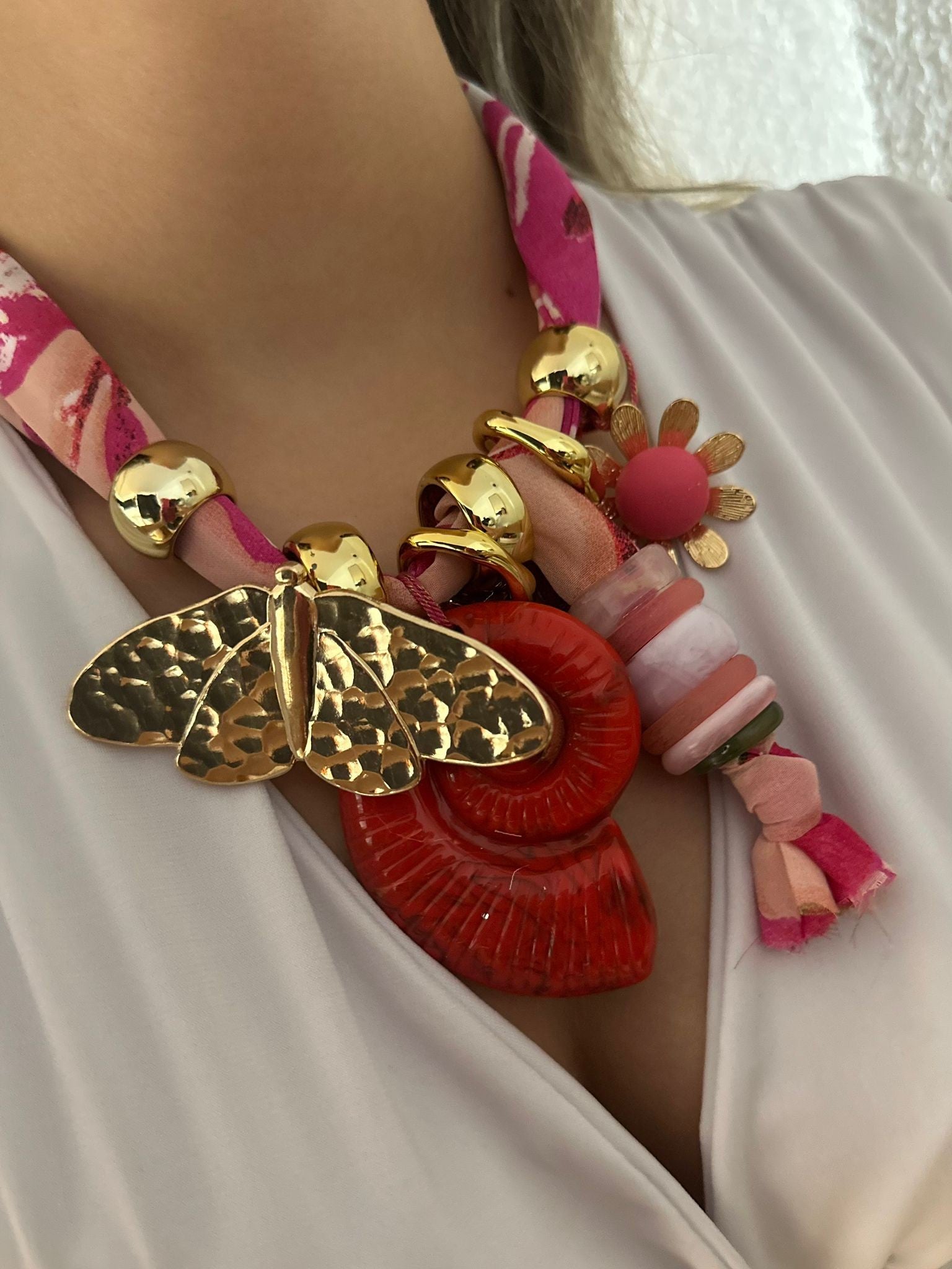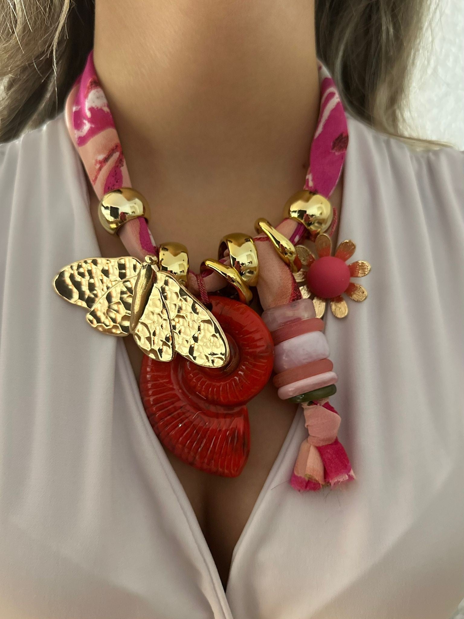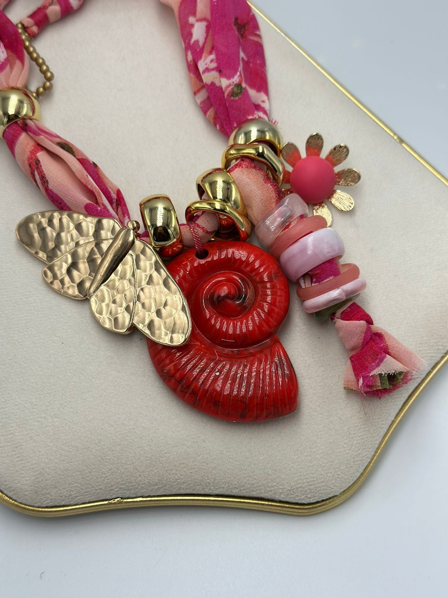 Deniz Kabuğu Detay Fularlı Tasarım Kolye