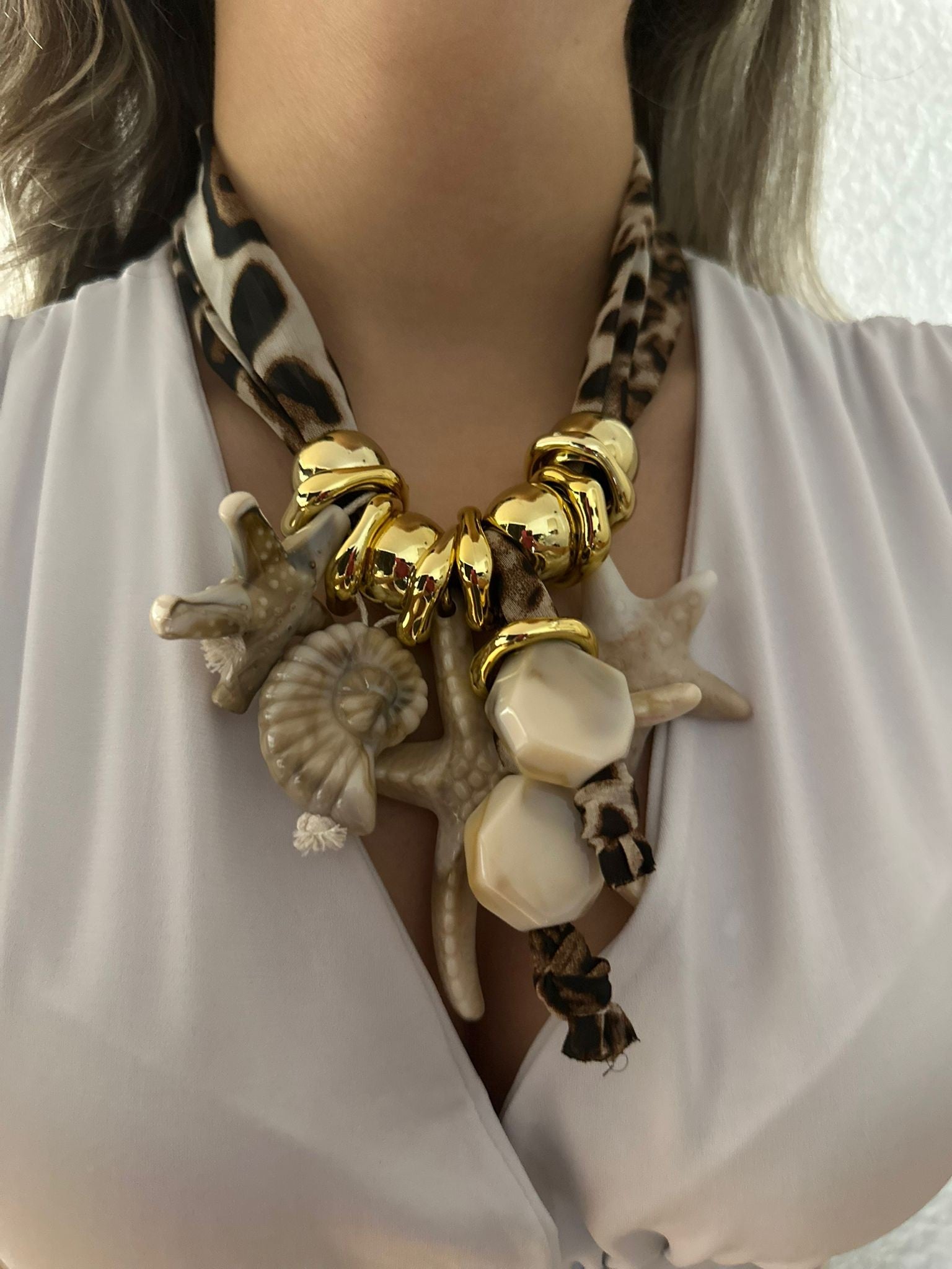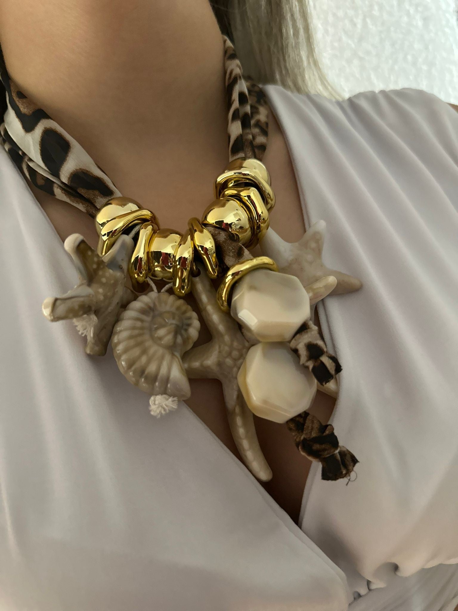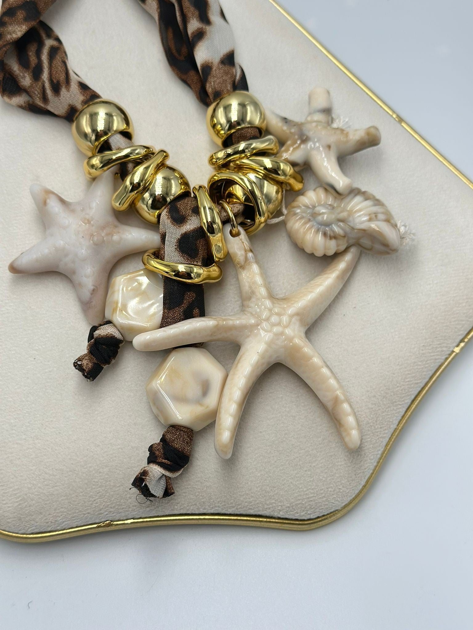Deniz Yıldızı Ve Kabuğu Detay Fularlı Kolye