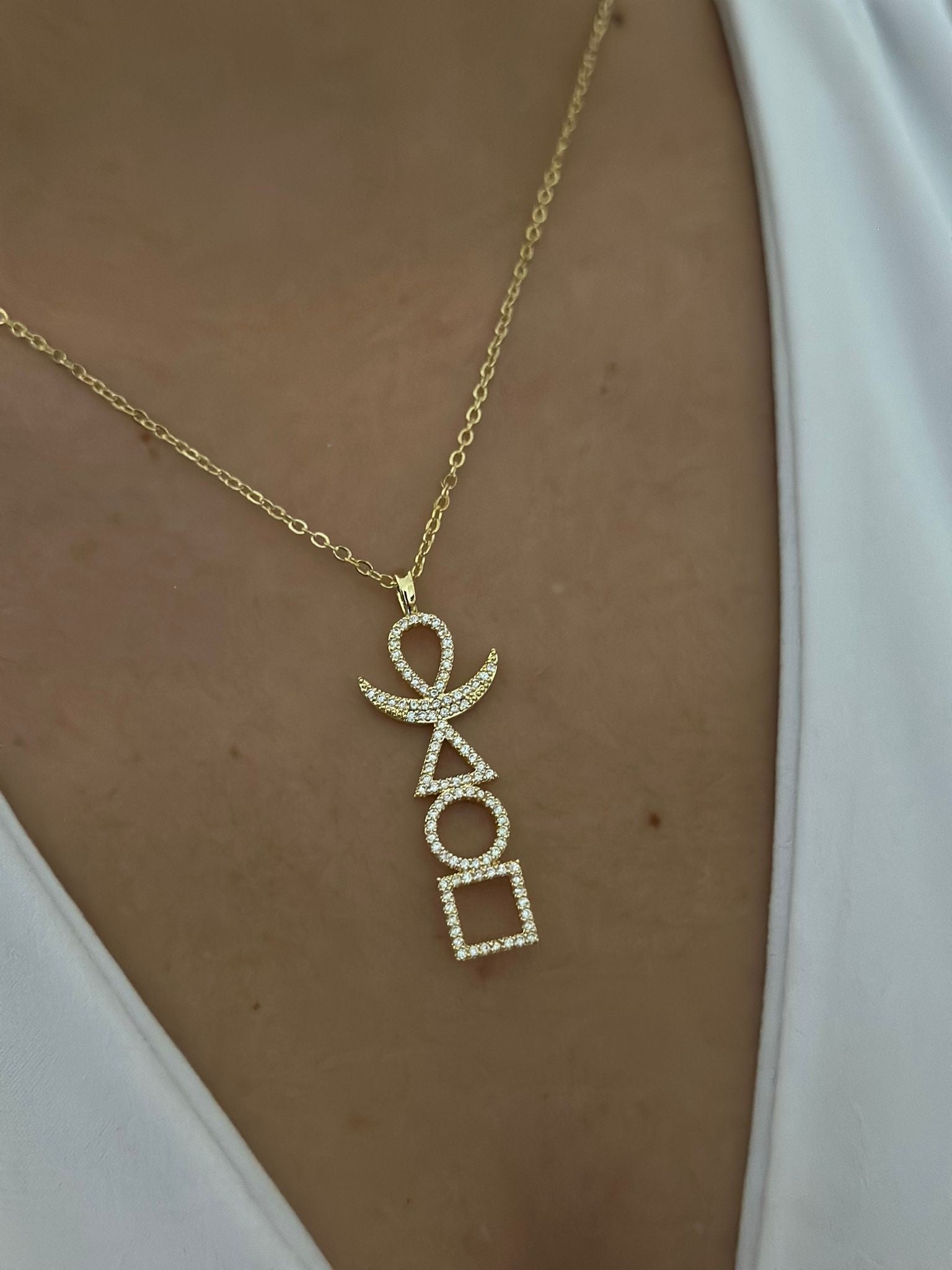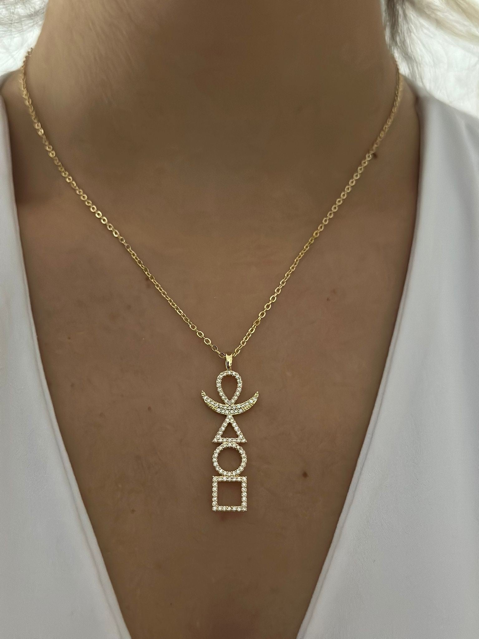 Geometrik Zirkon Taş Detay Premium Kolye