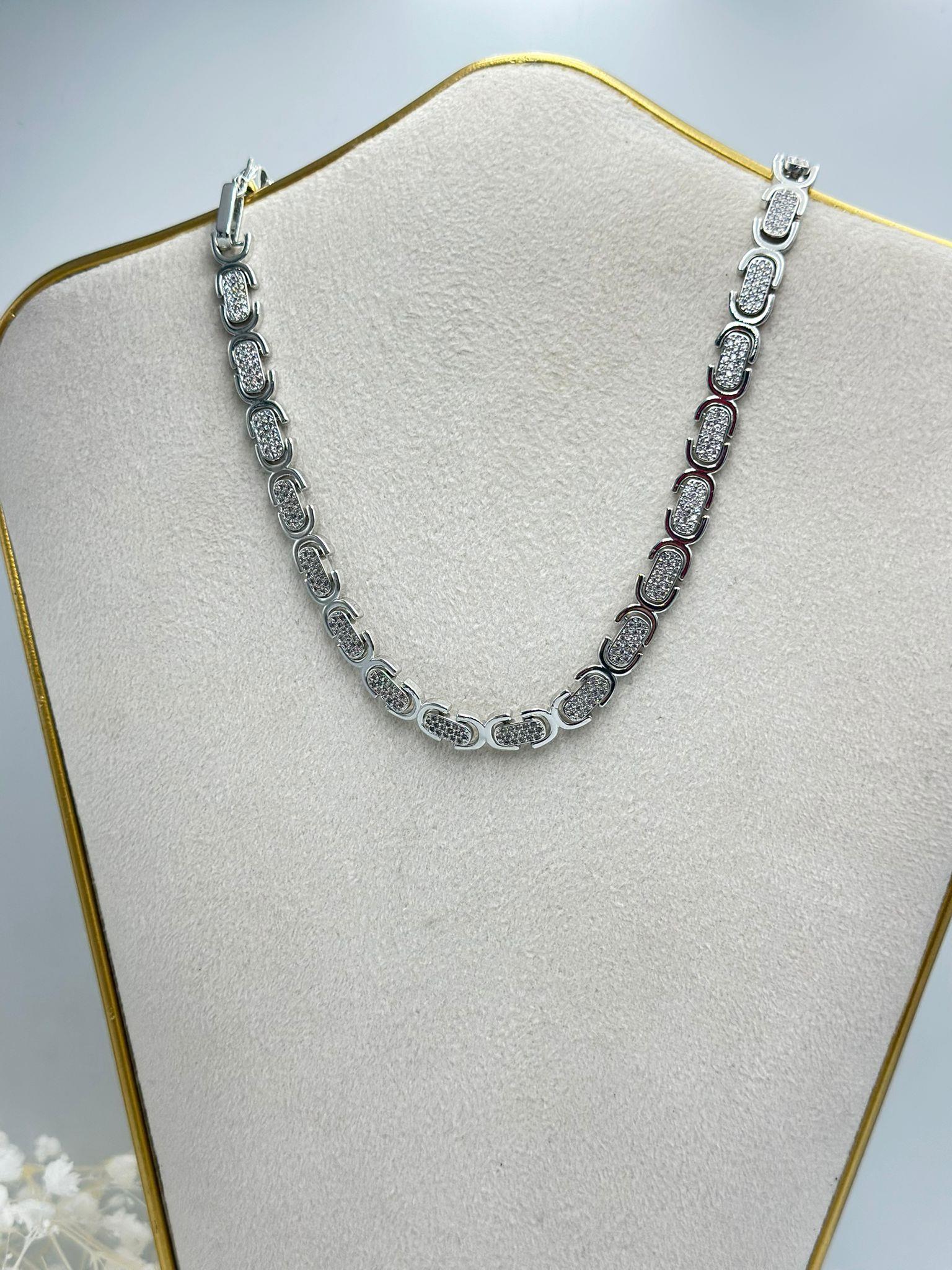 Gümüş Kaplama Oval Kesim Zirkon Taş Detaylı Kolye (45cm)