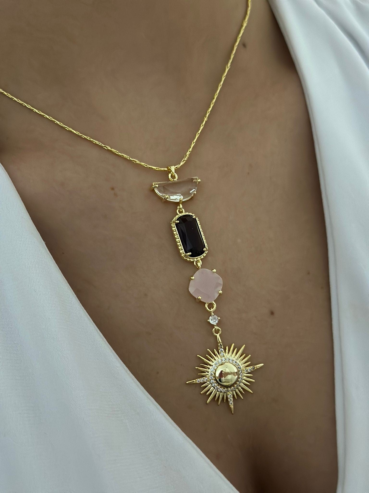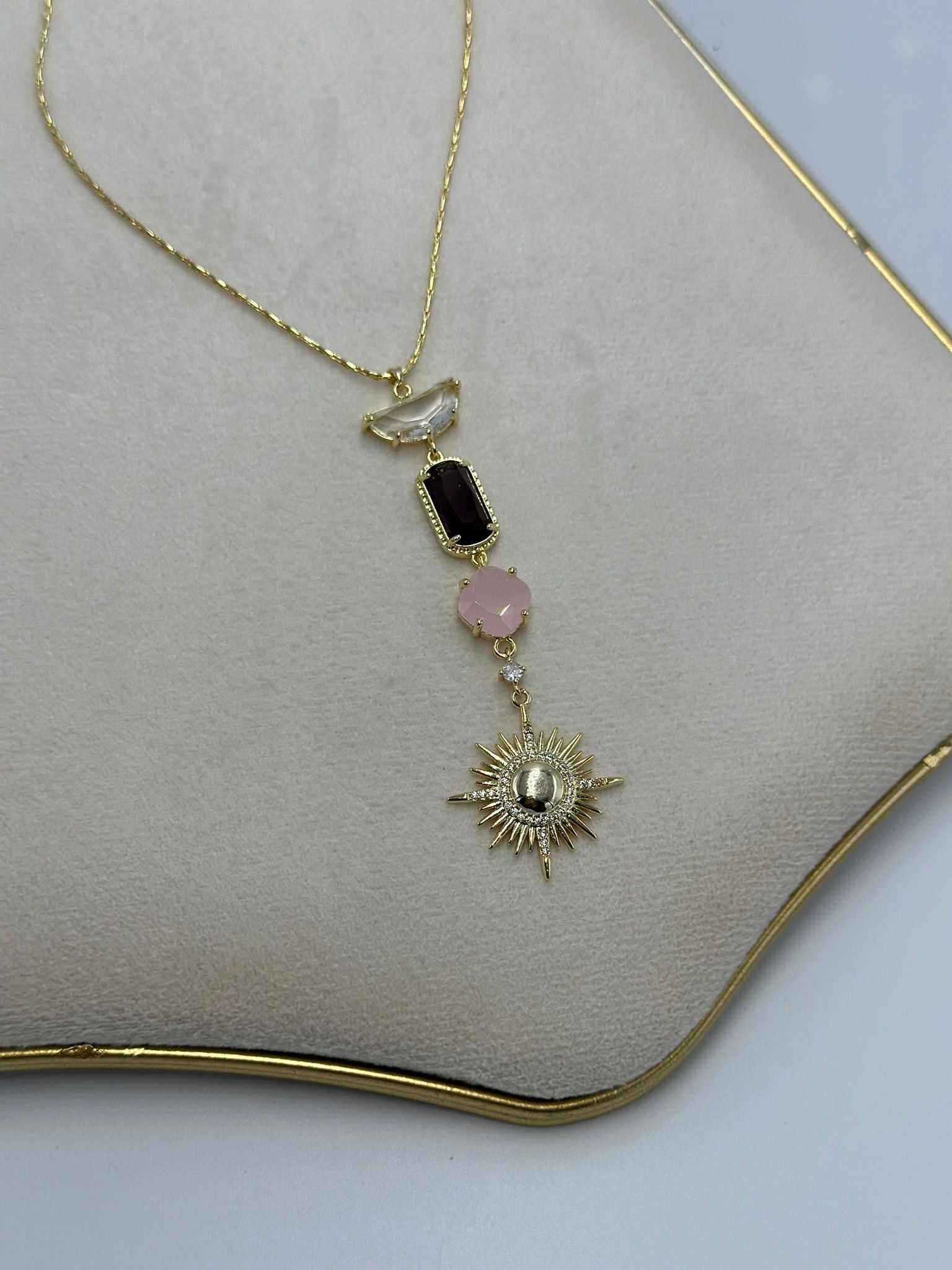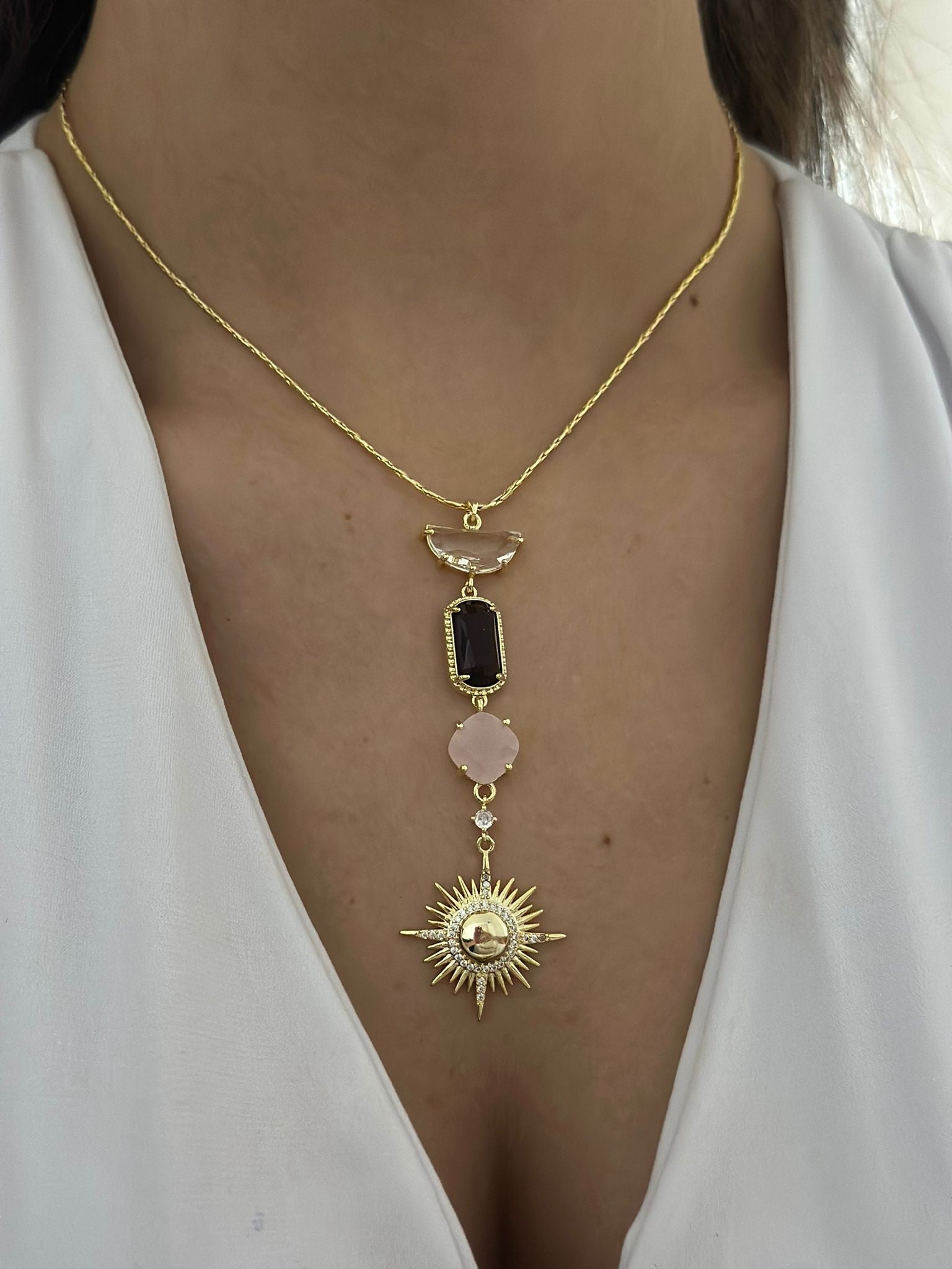 Güneş Ve Baget Taş Detay Çelik Kolye