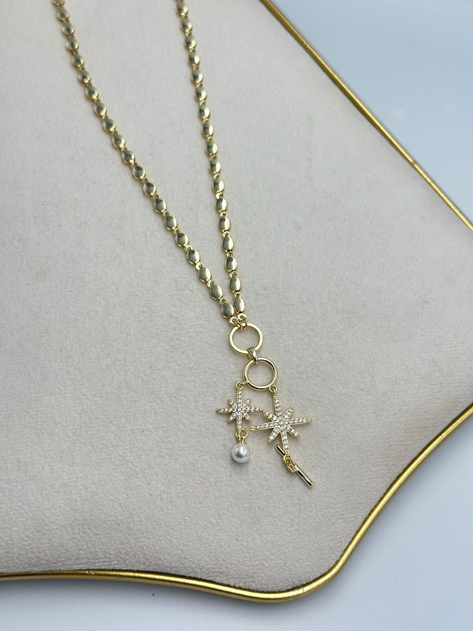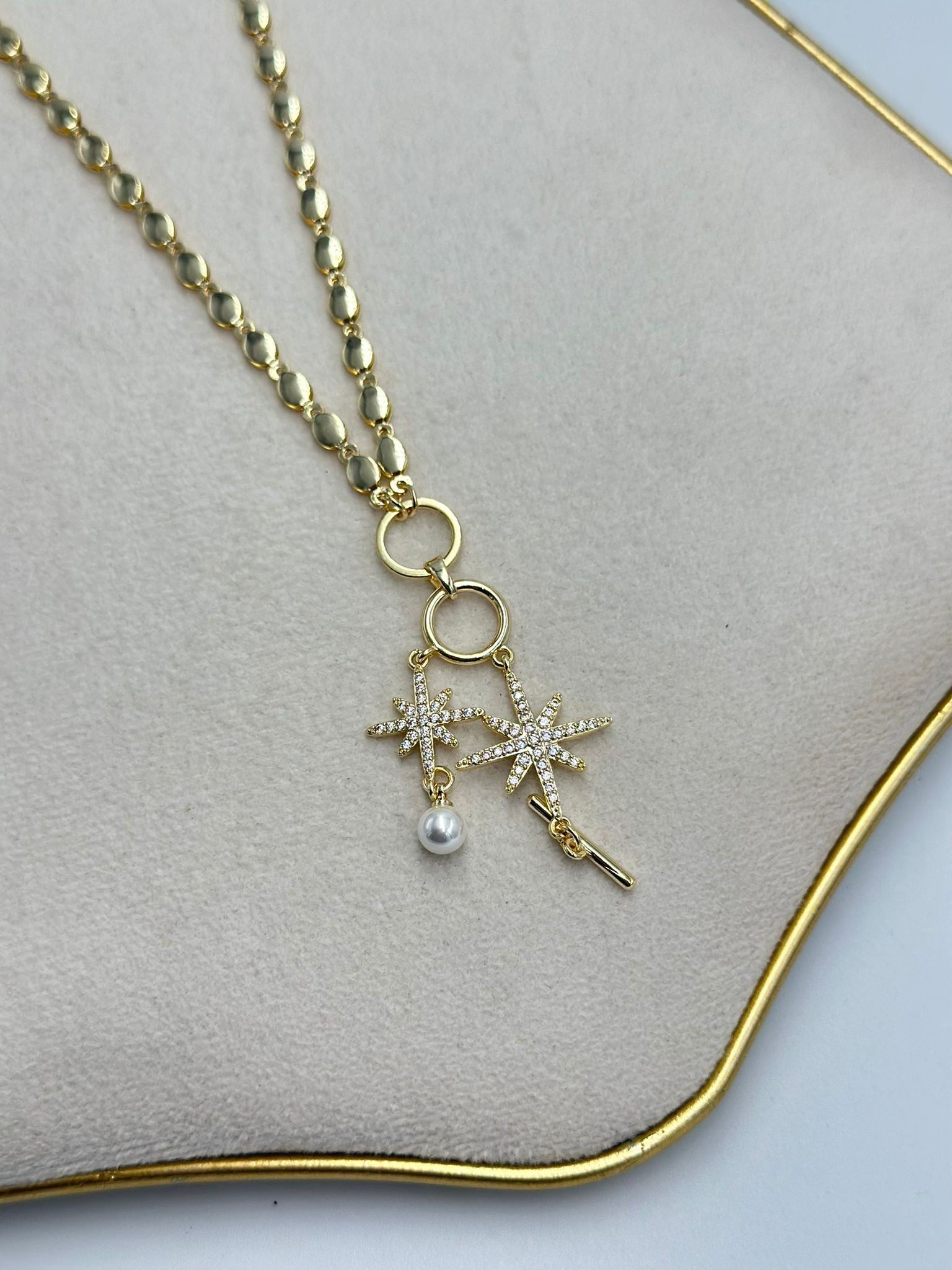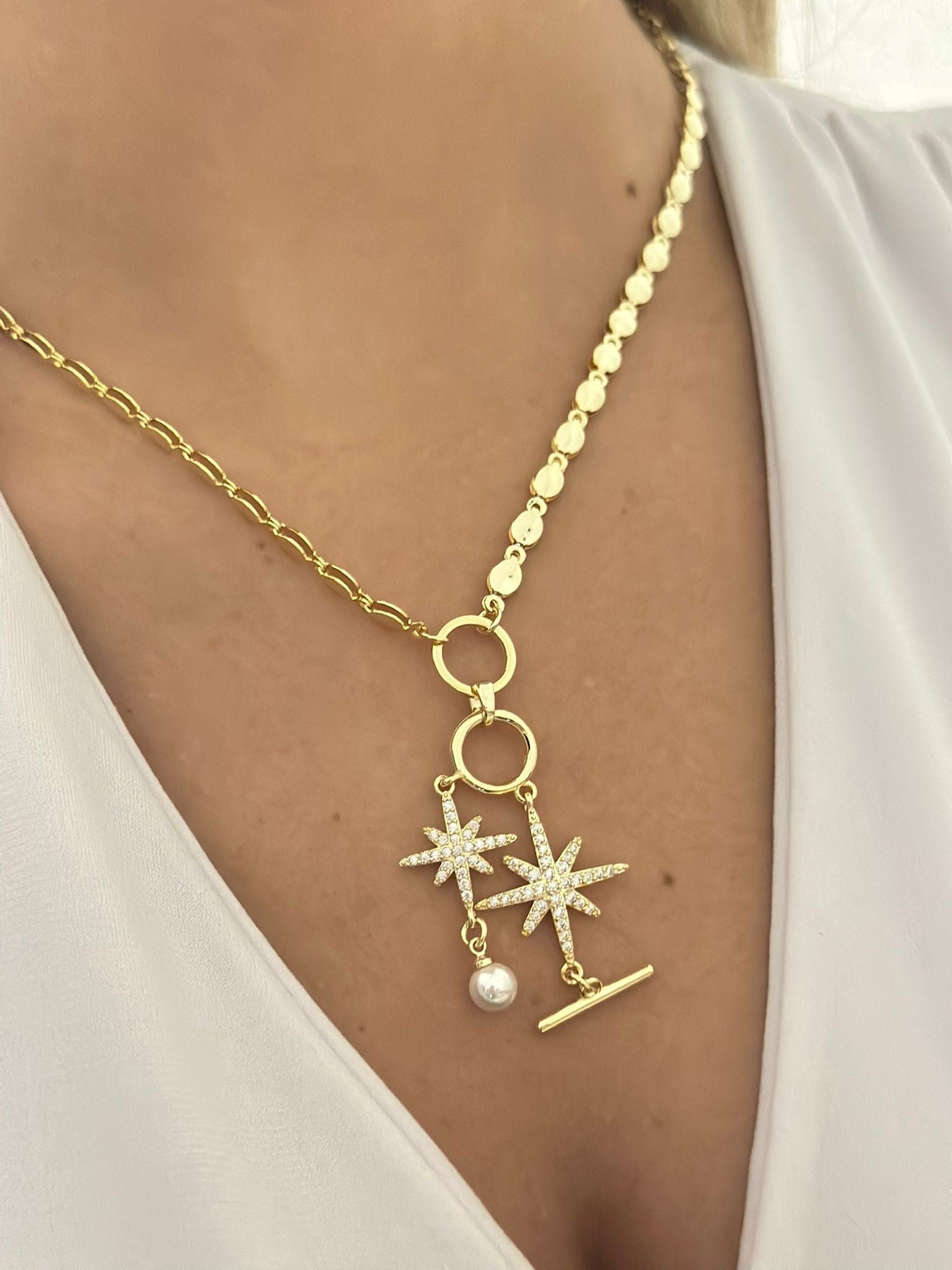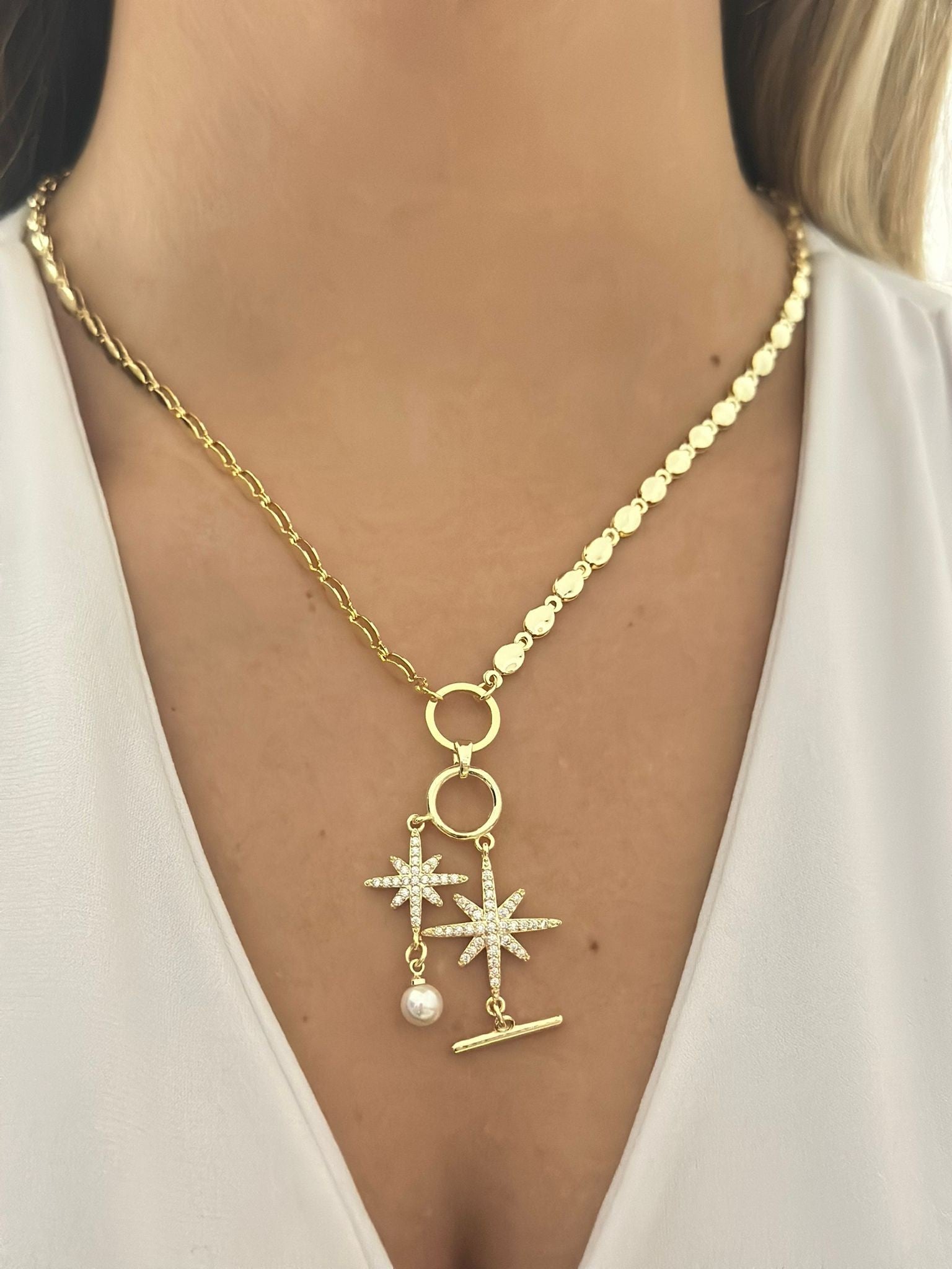 İkili Kutup Yıldızı Ve İnci Detay Kolye
