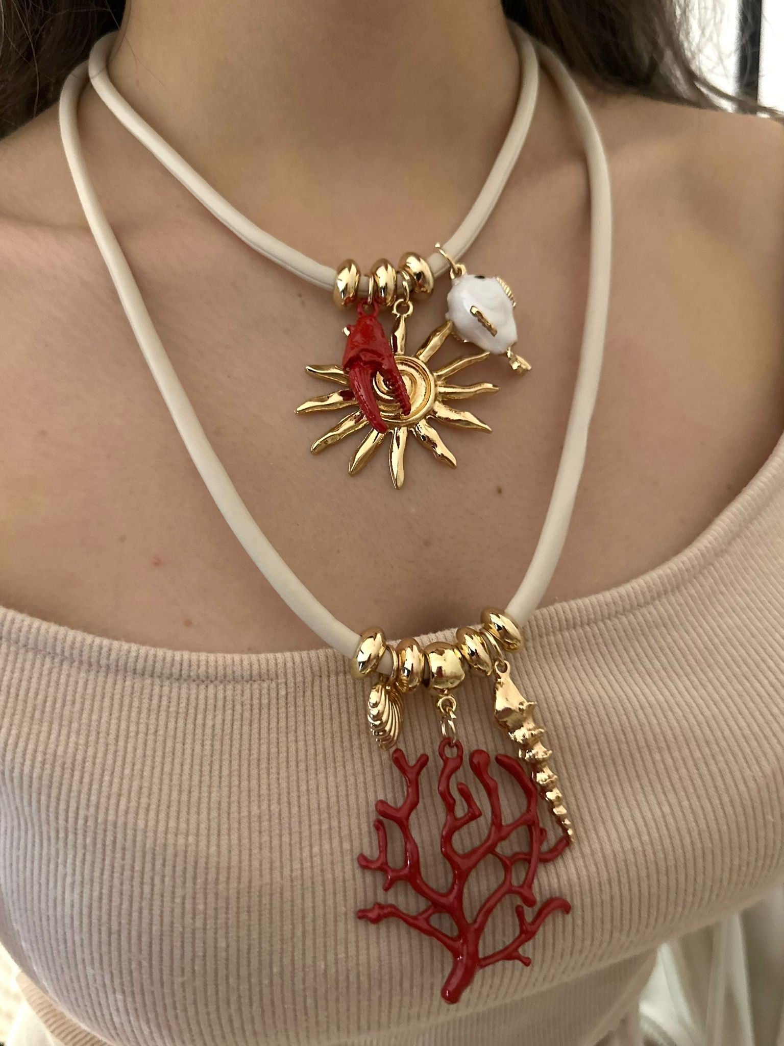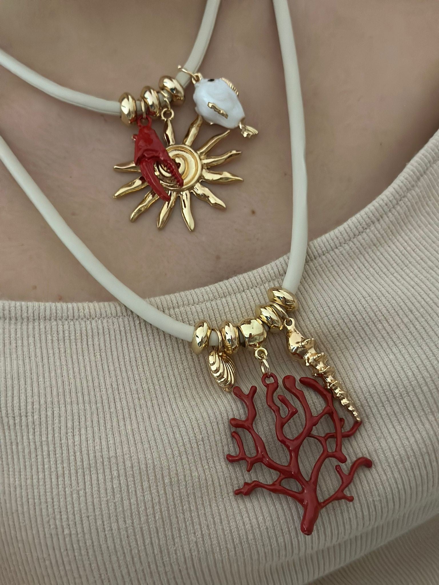 İkili Mercan Charm Detaylı Kolye