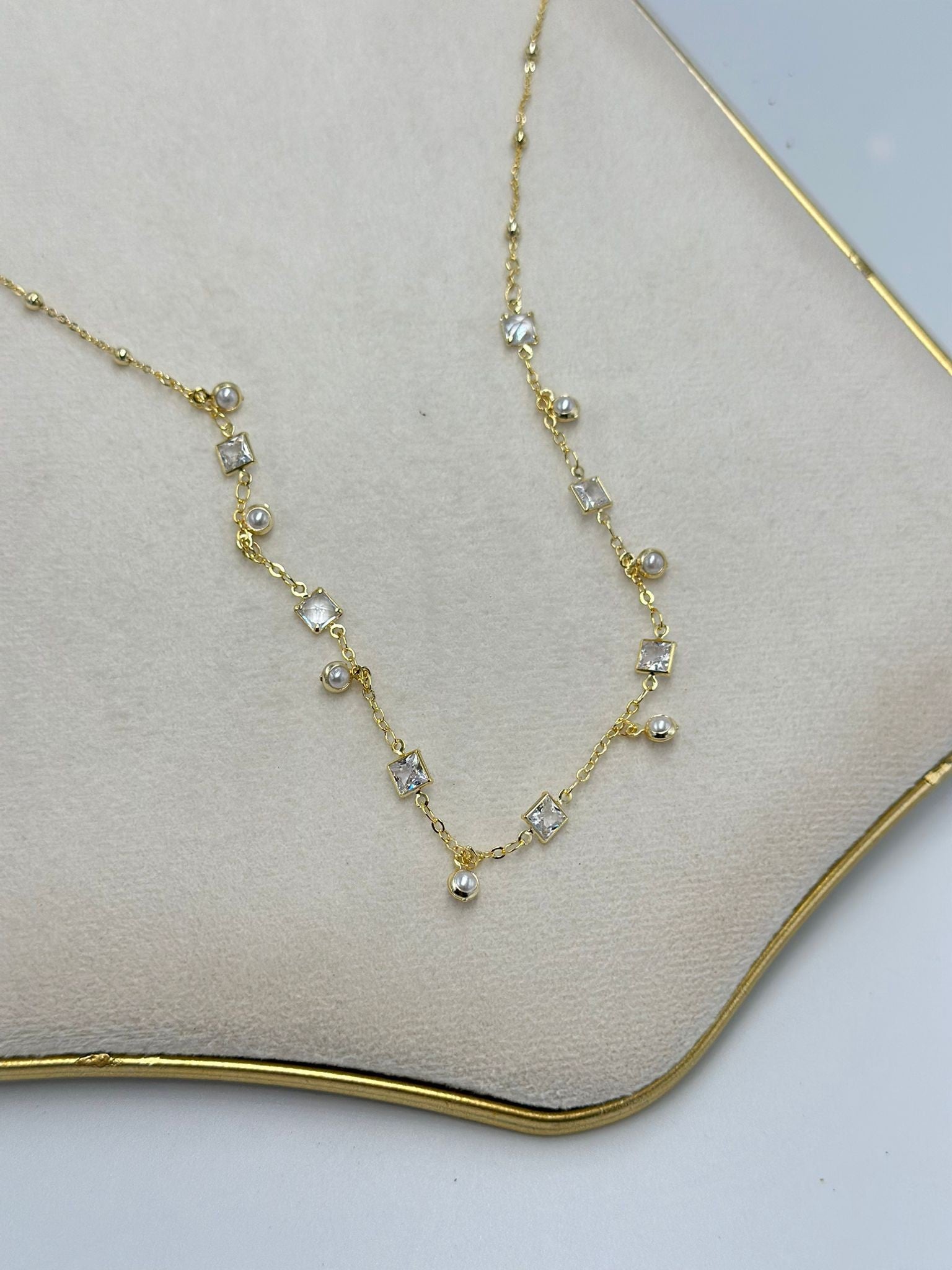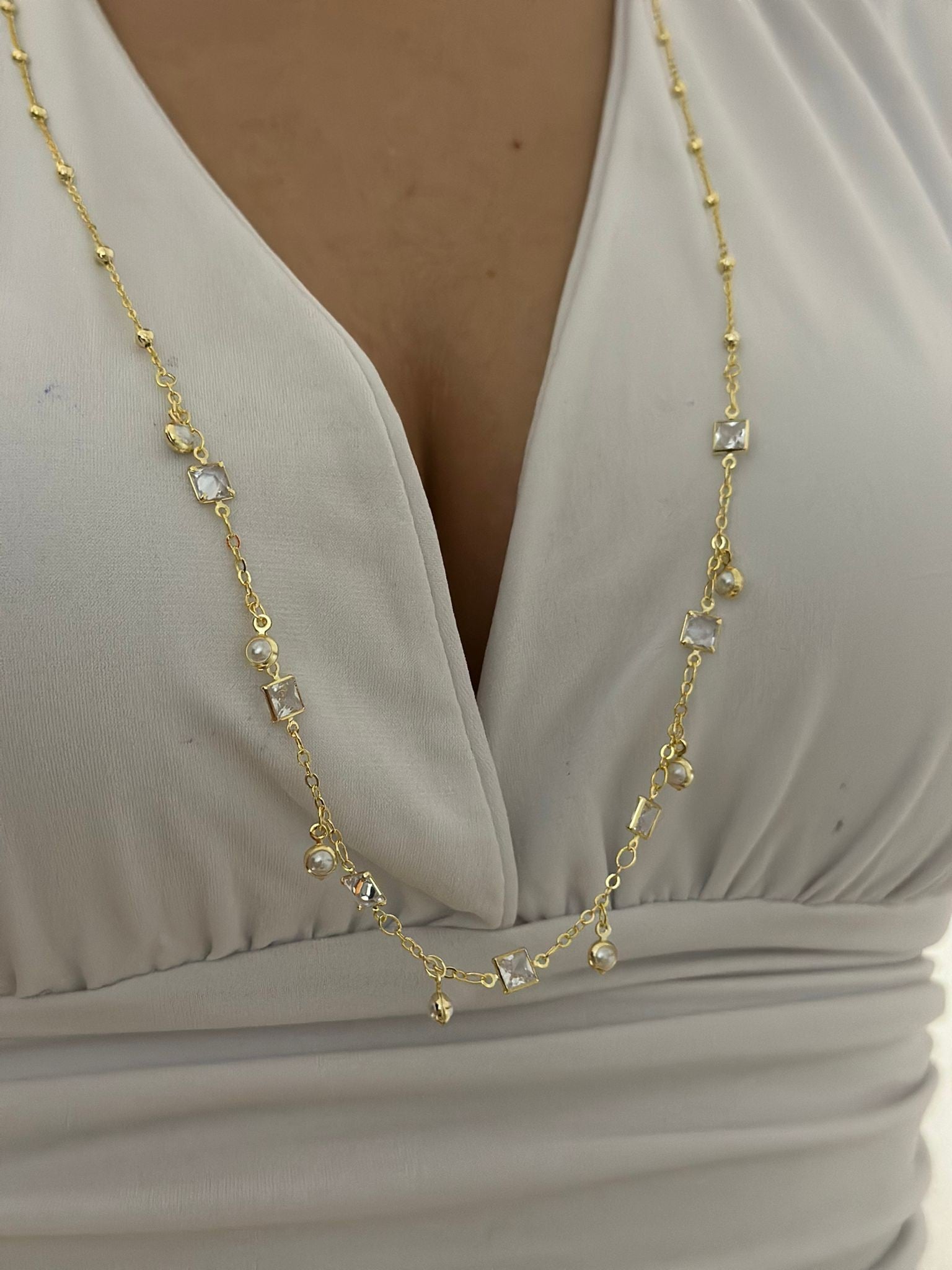 İnci Ve Baget Taş Detay Kolye (Çelik)