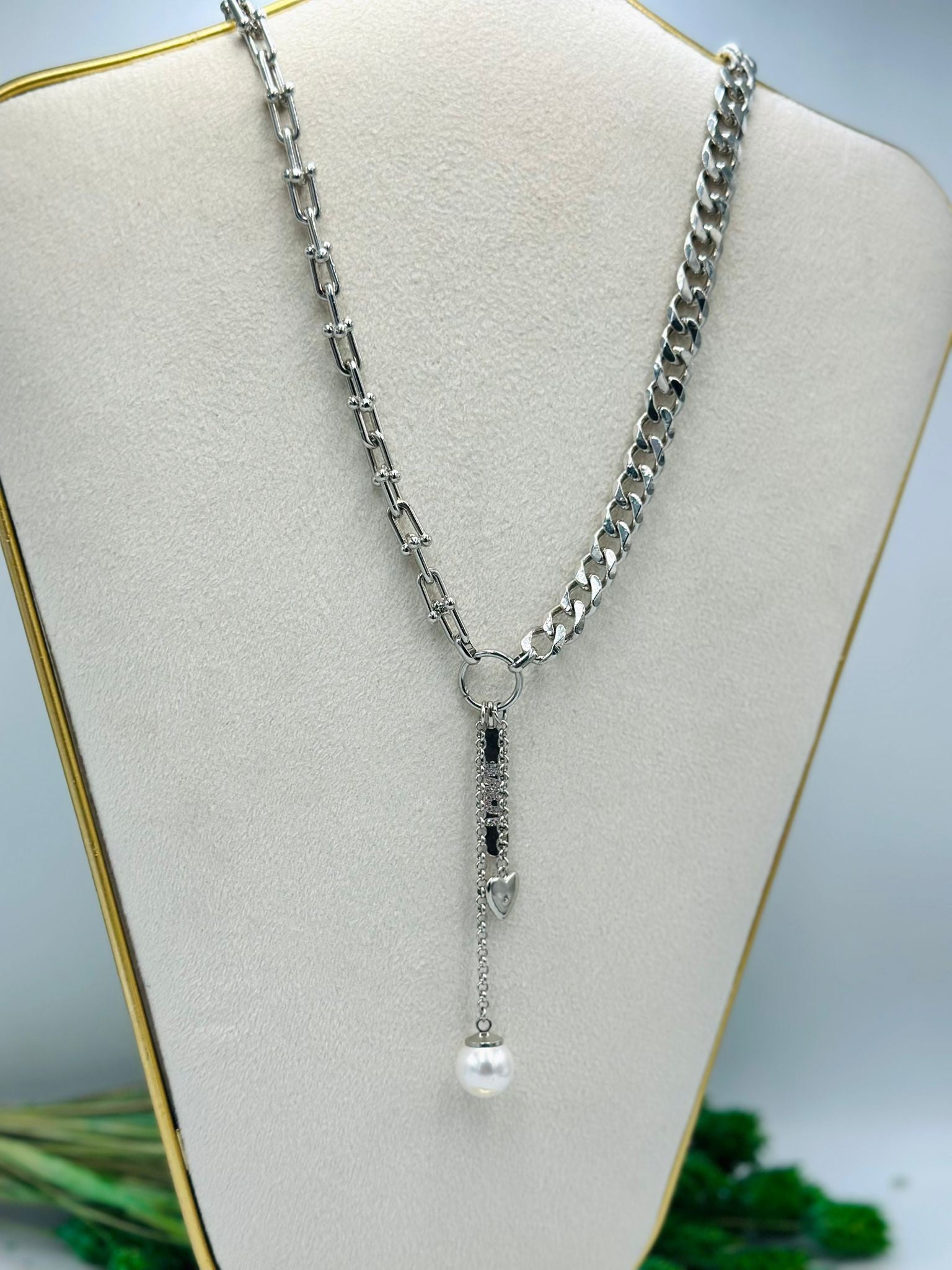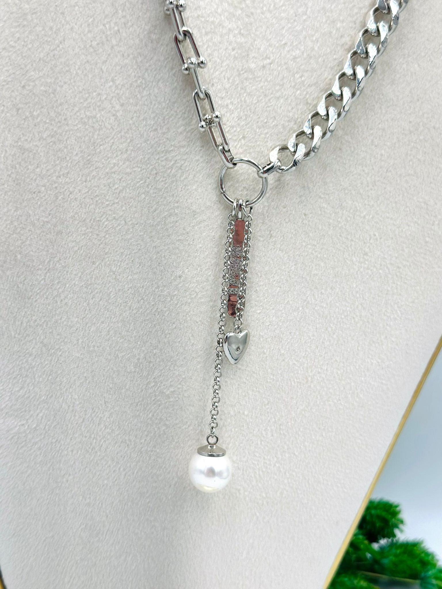 İnci ve Love Detaylı 14k Altın Kaplama Kolye