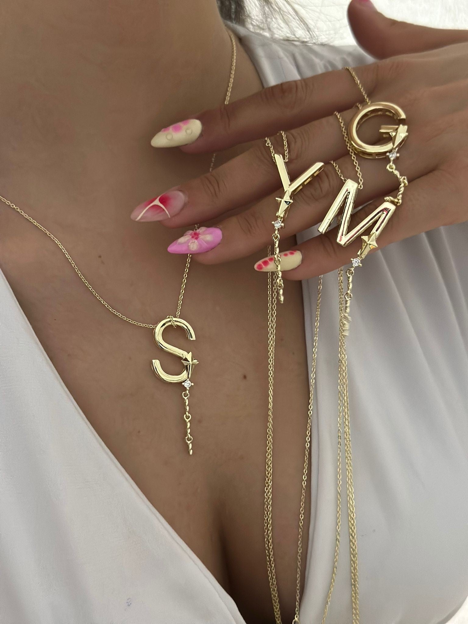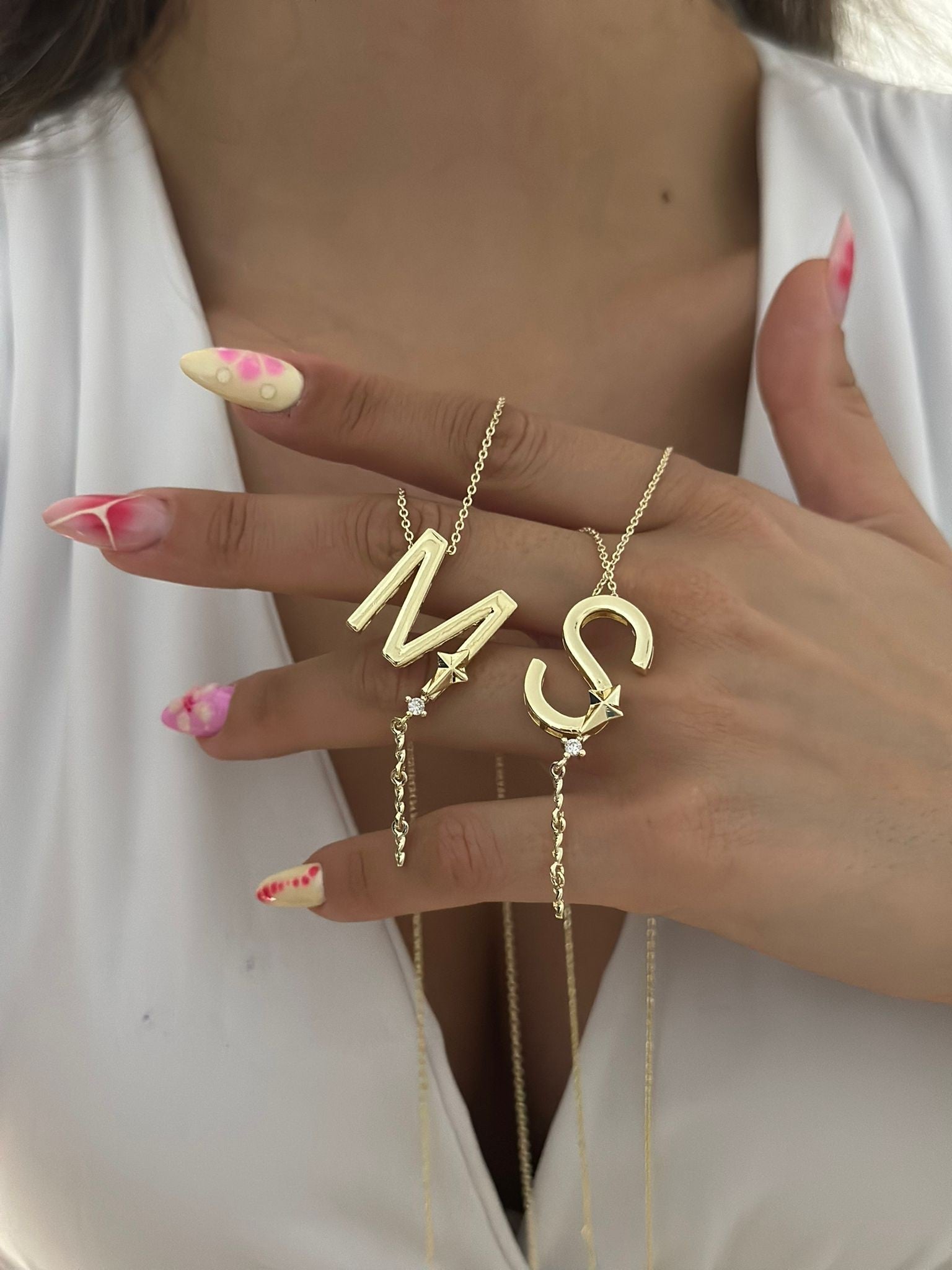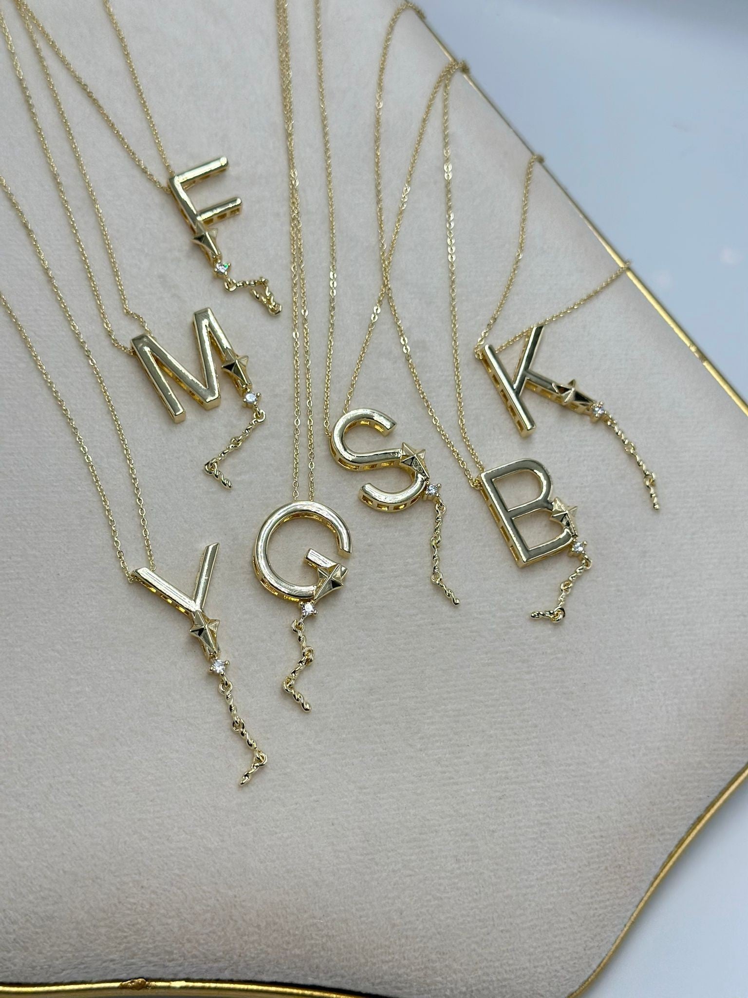 Kutup Yıldızı Detaylı Harf Kolye (Premium Serisi)