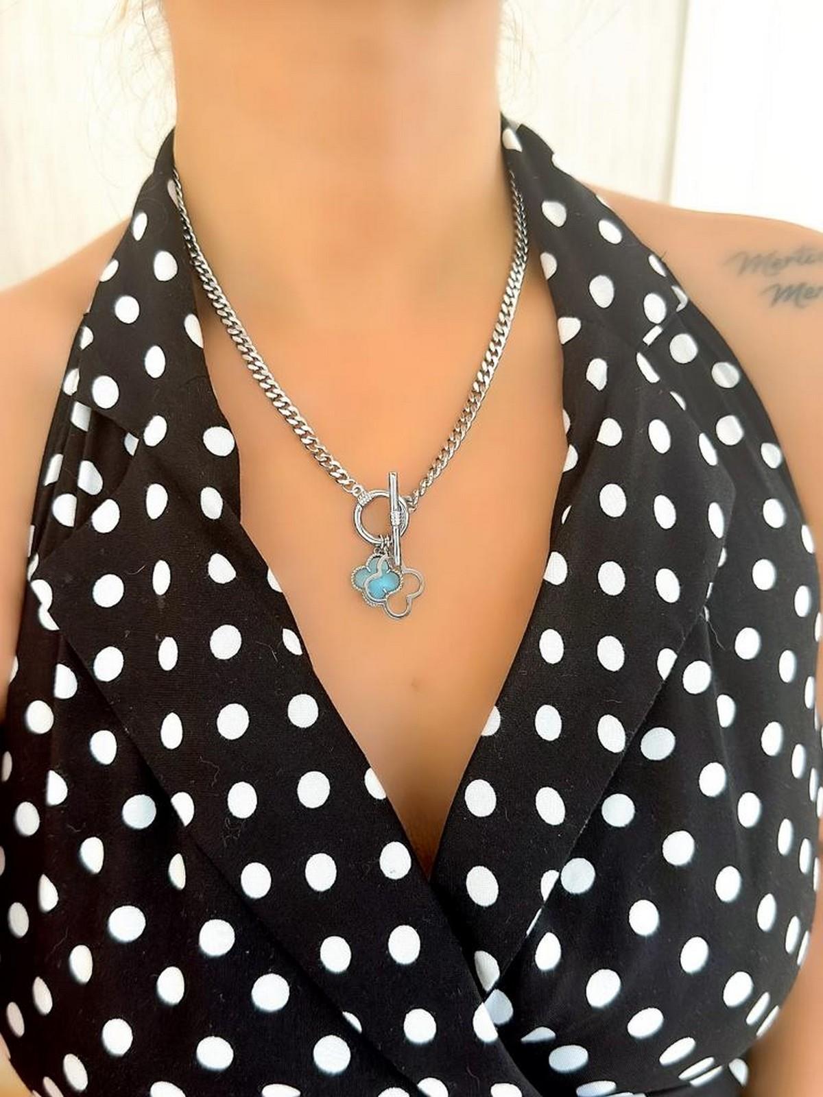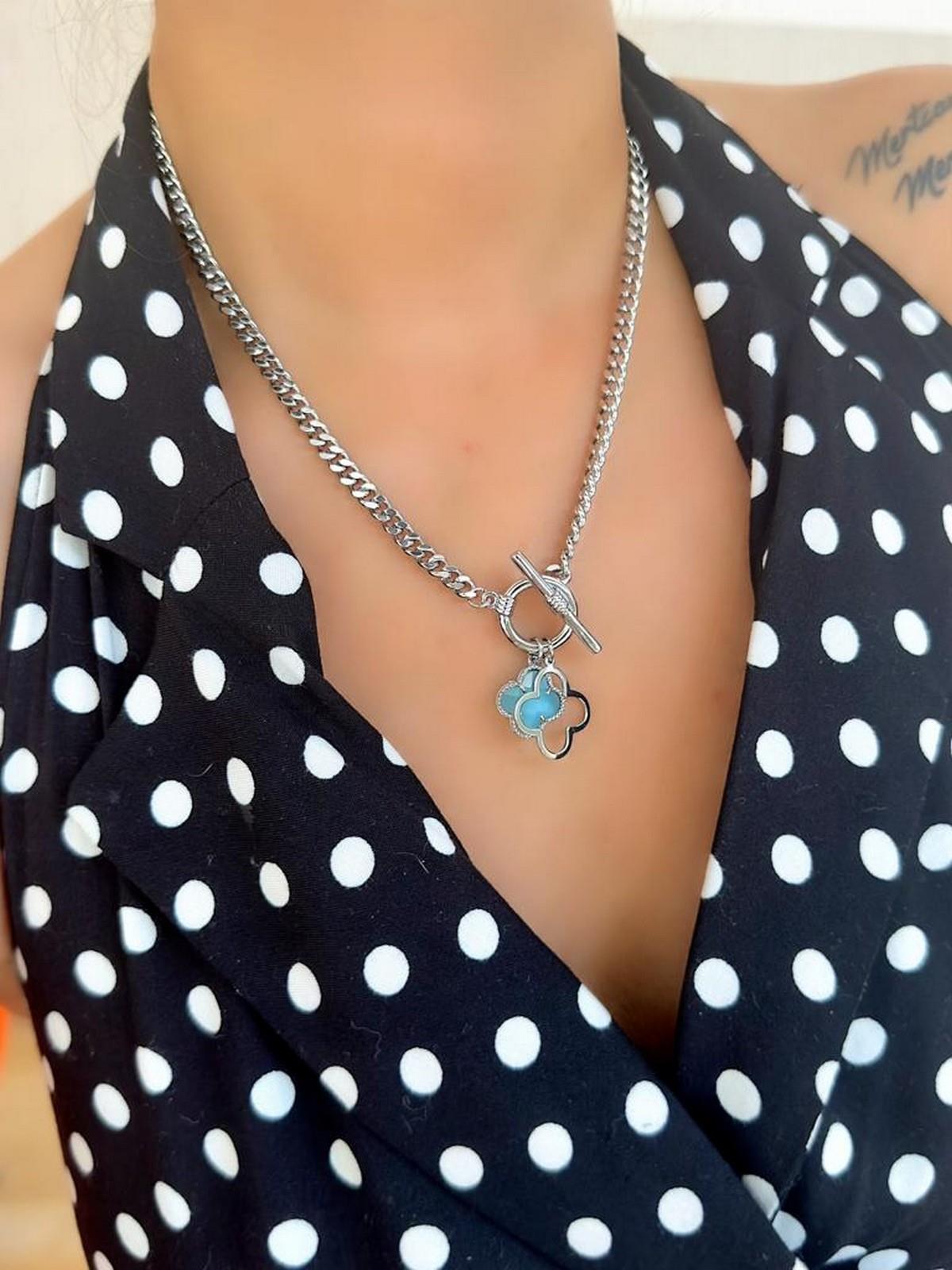 Mavi Cam Taş Detaylı Yonca Model Kolye