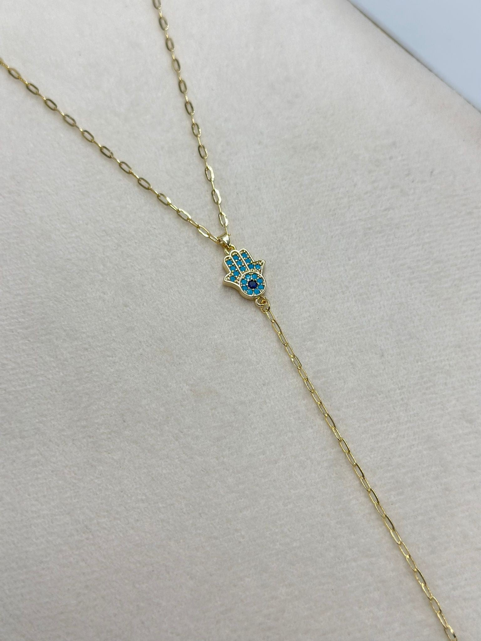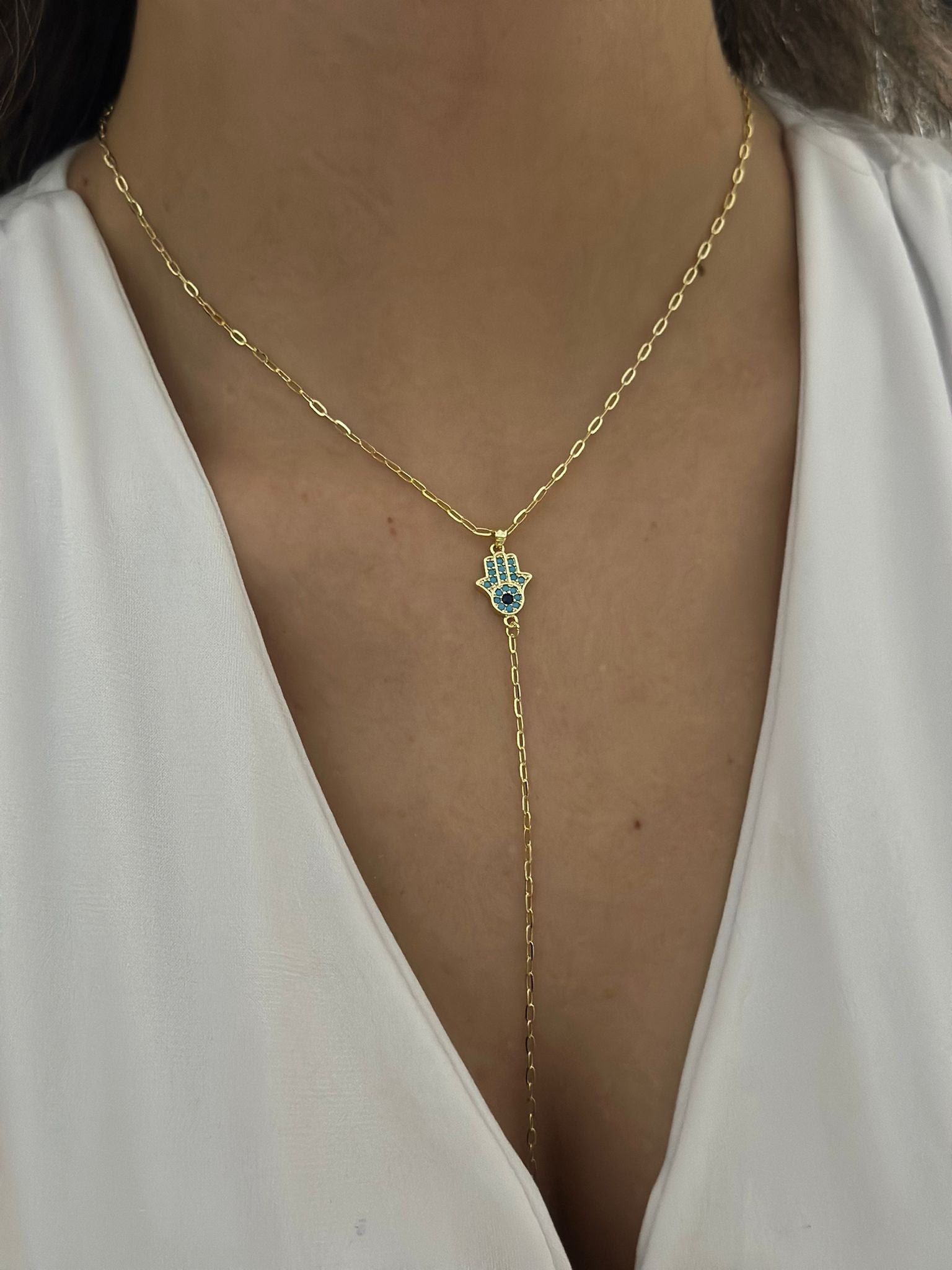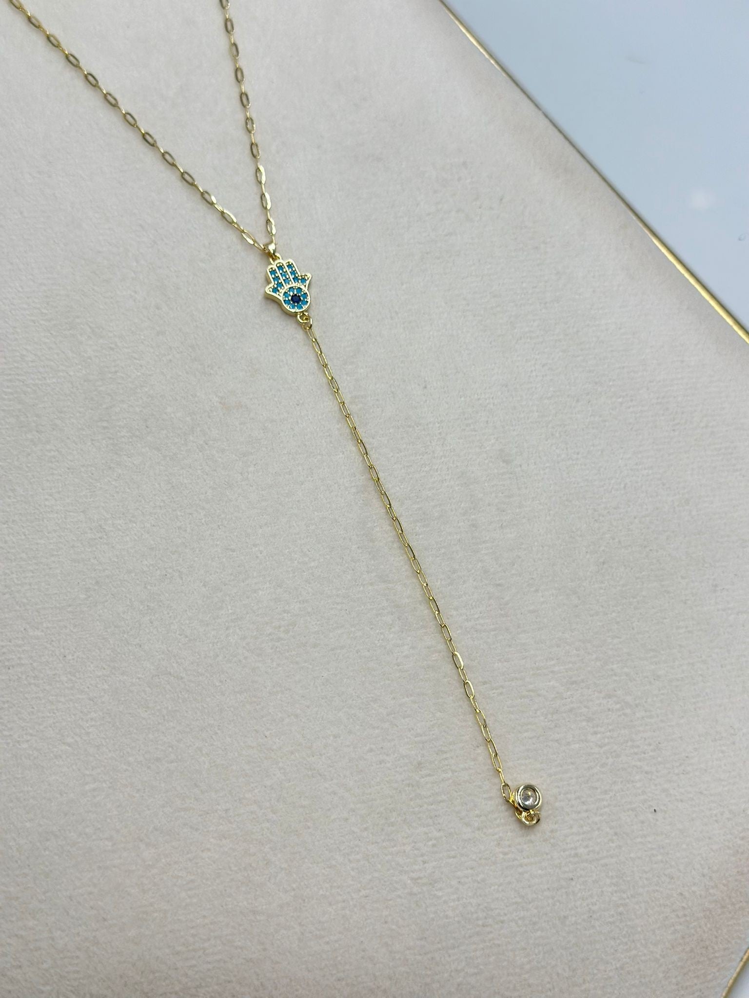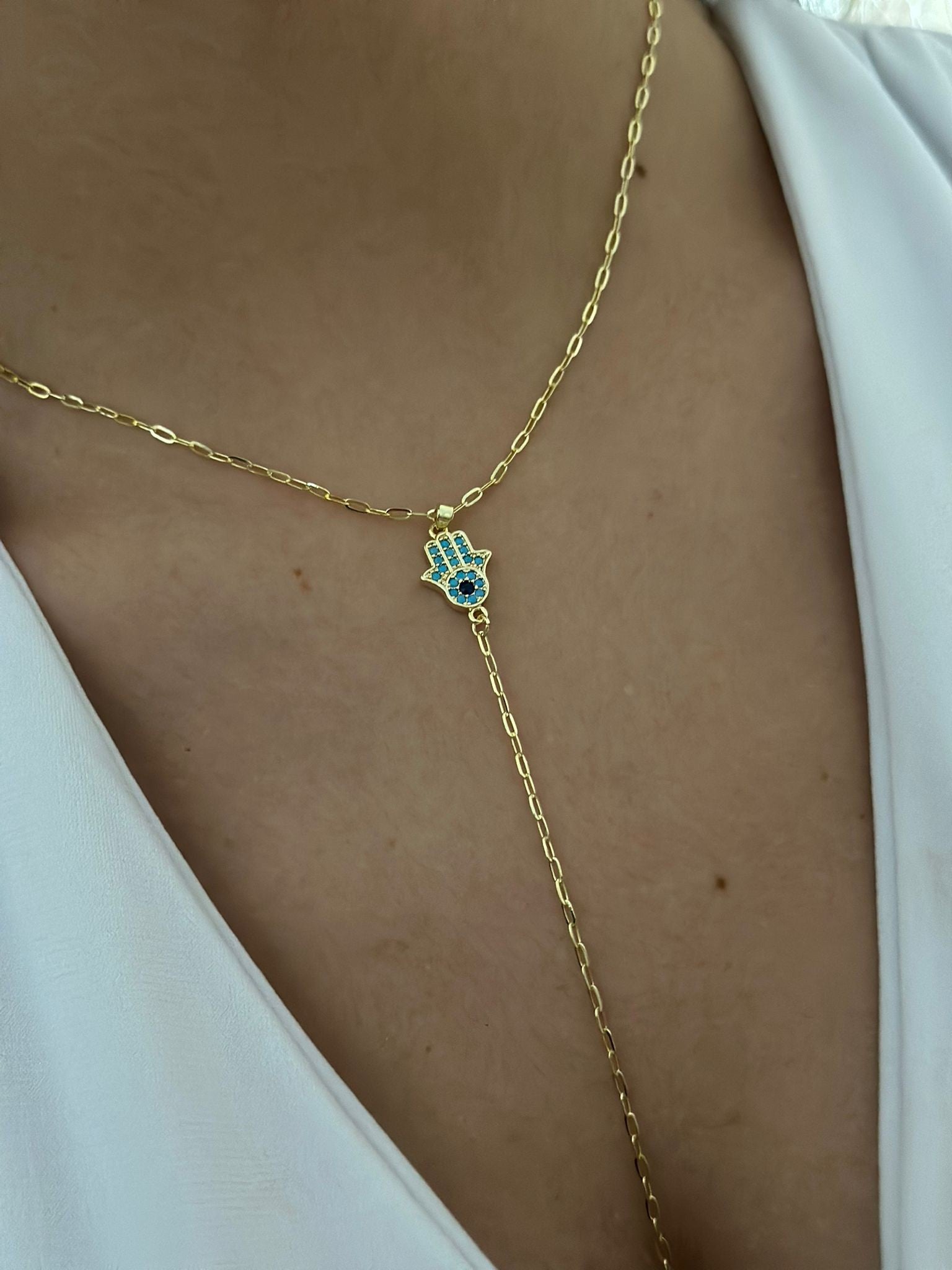 Mavi Zirkon Taş Detay Fatma Ana Eli Kolye