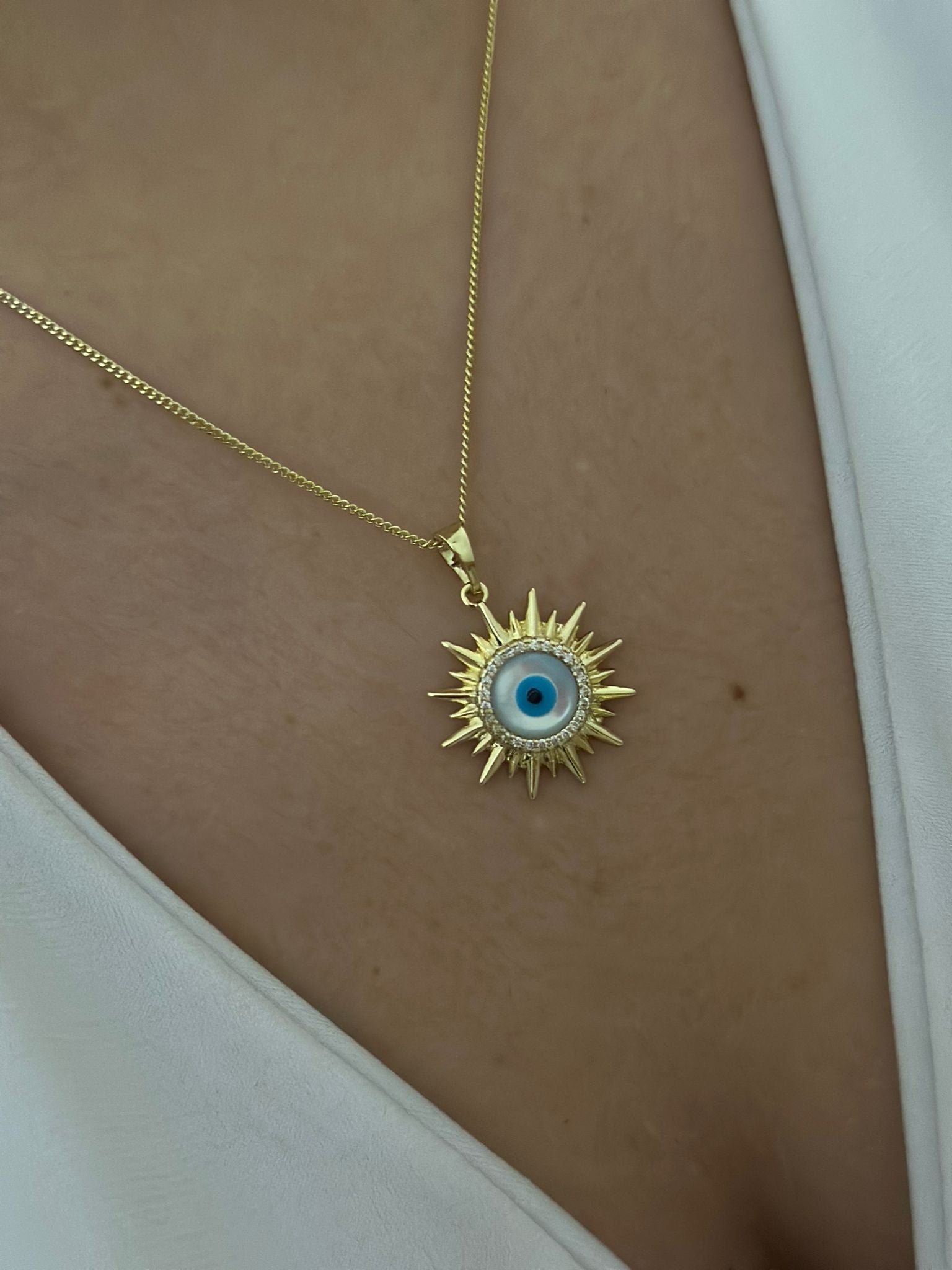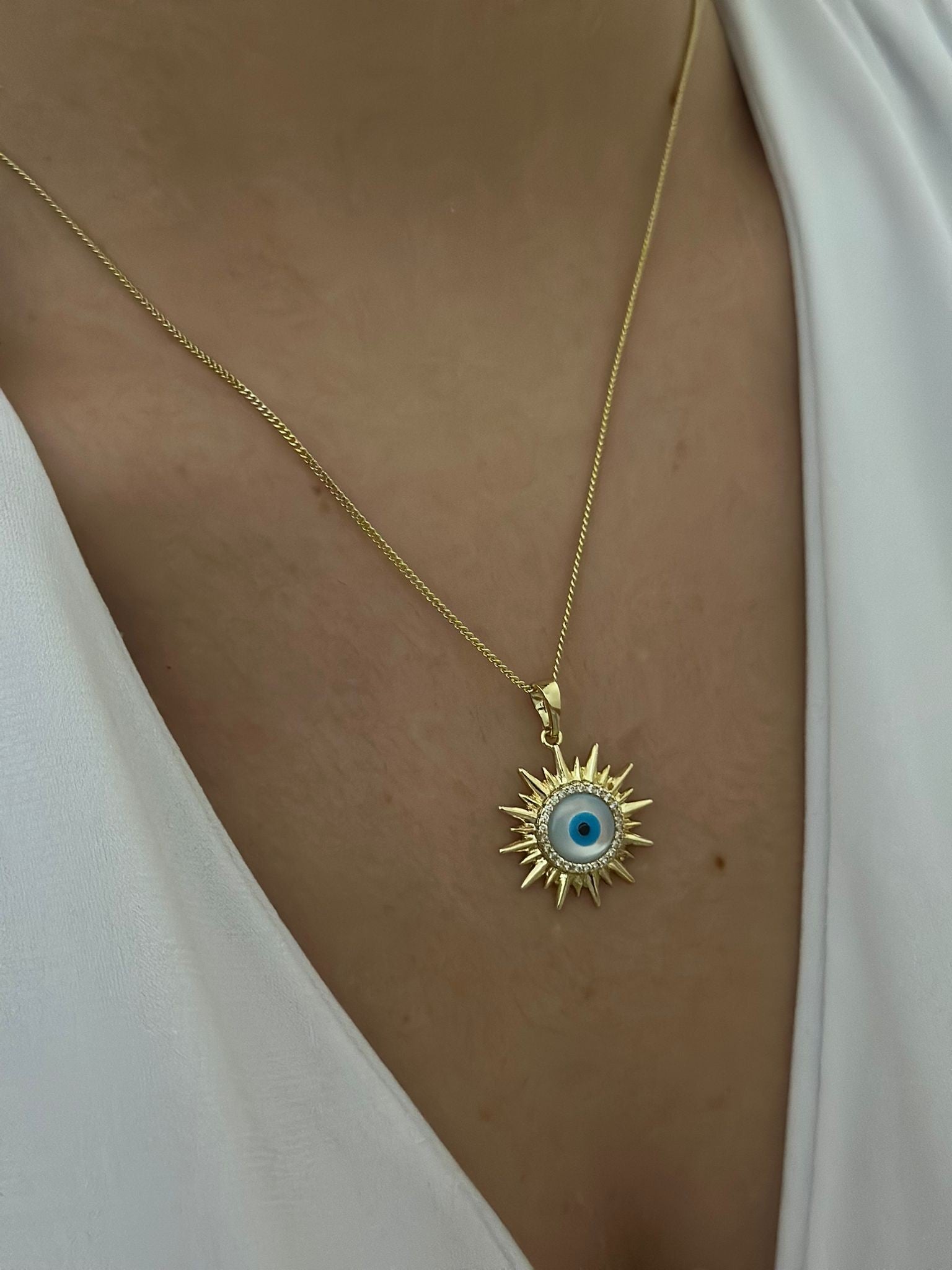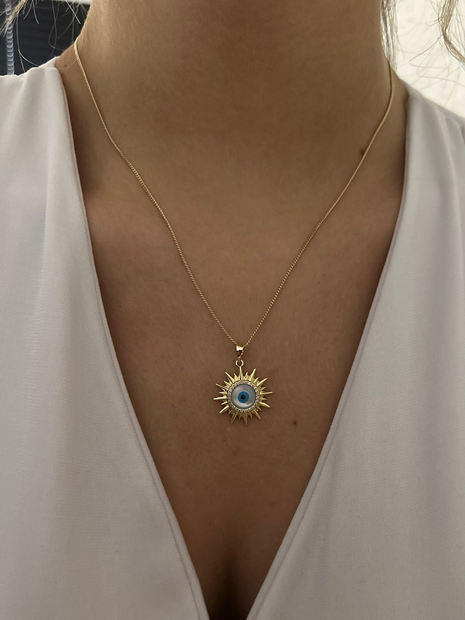Nazar Boncuk Detay Güneş Çelik Kolye