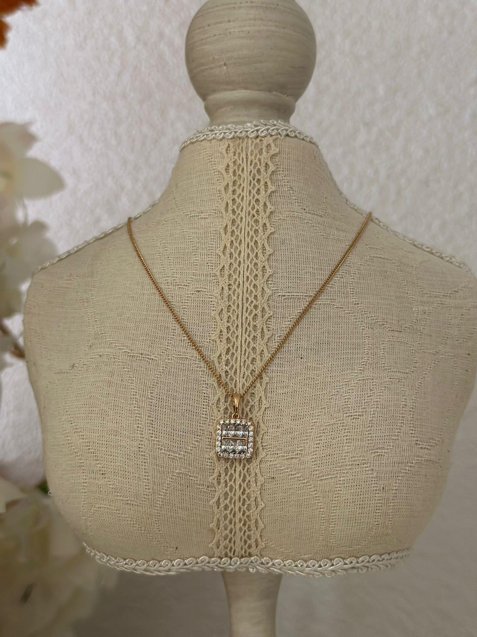 Özel Seri Kare Kesim Baget Taş Detaylı Kolye (42cm)