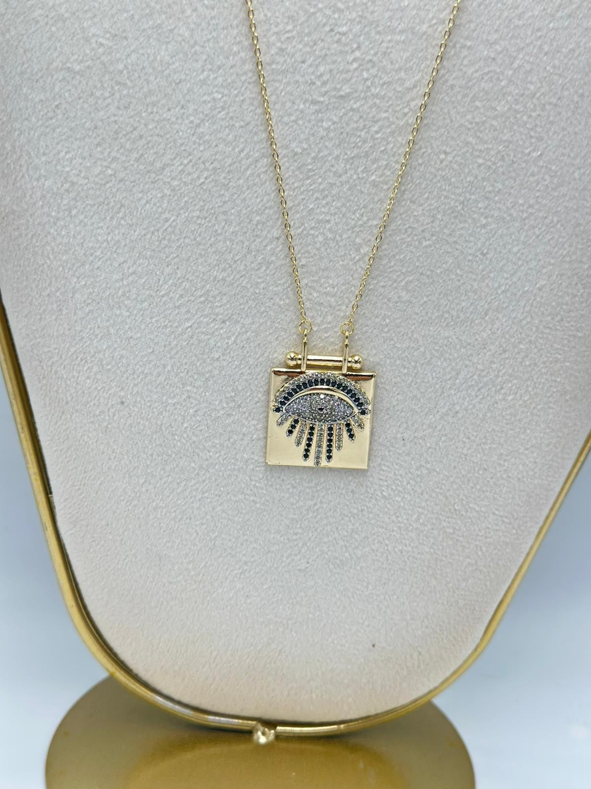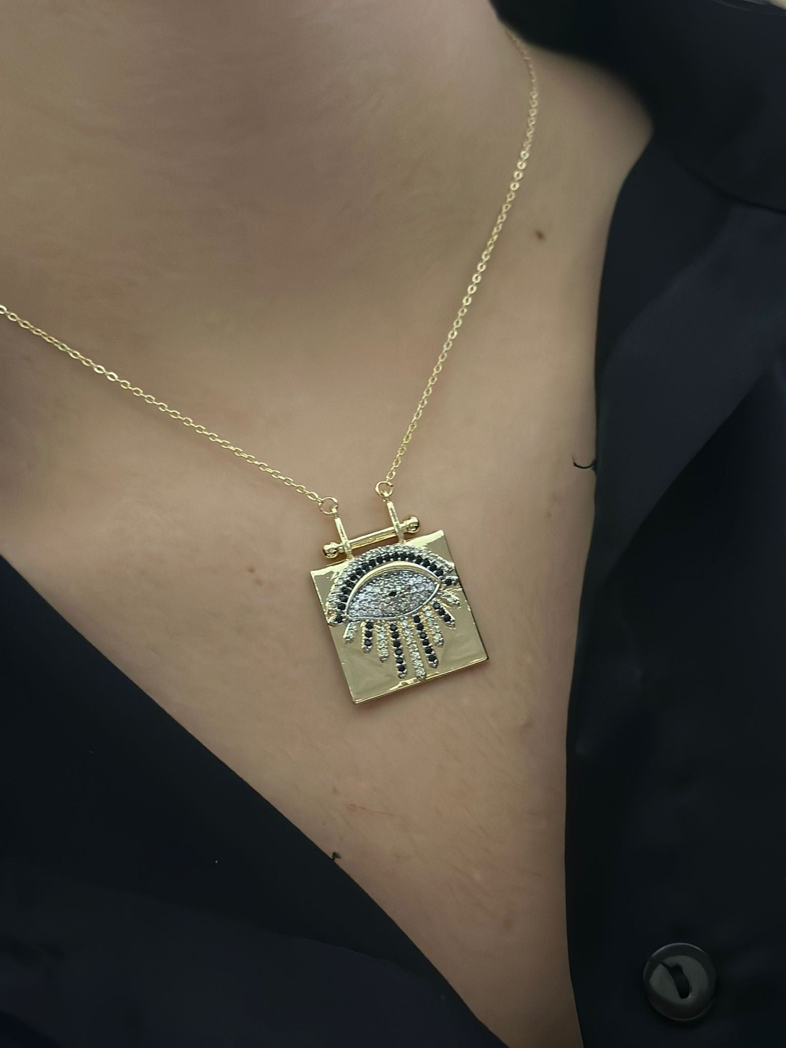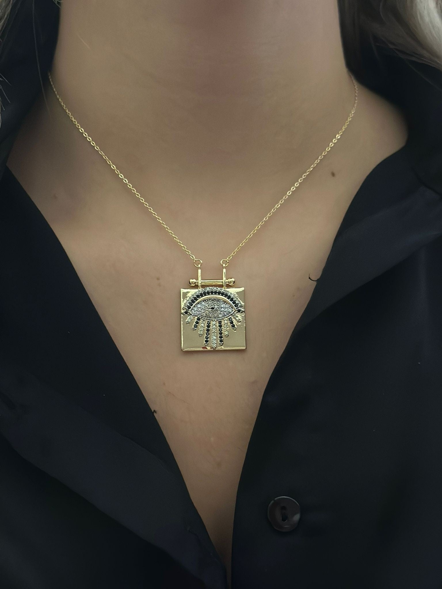 Piremium Serisi Kare Plaka ve Zirkon Taş Göz Detaylı Tasarım Kolye
