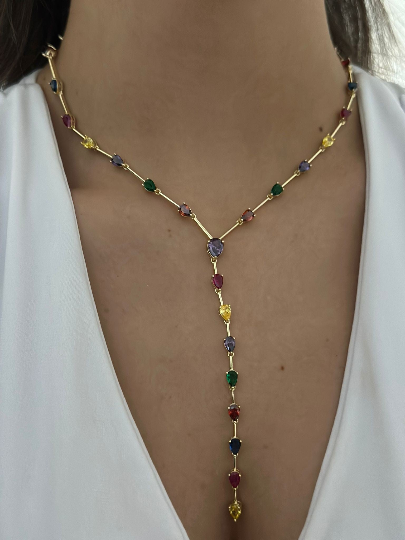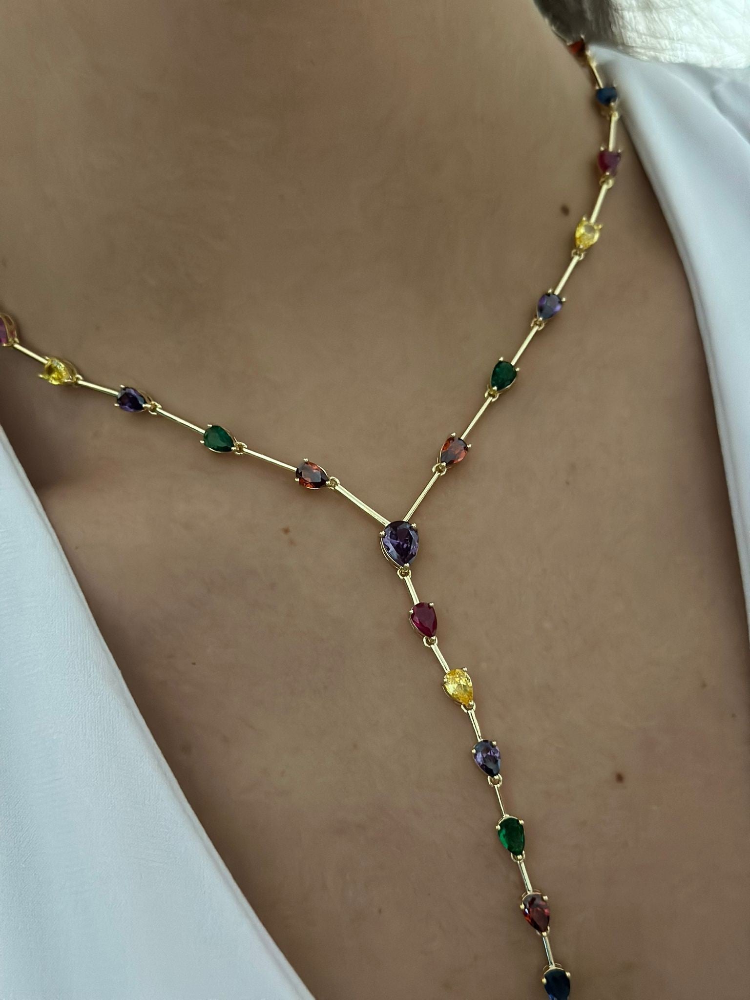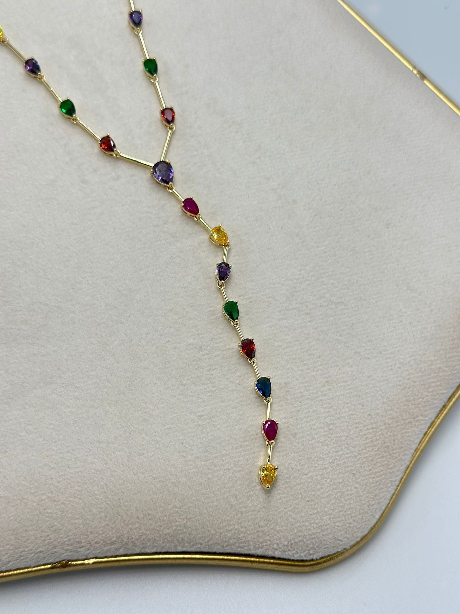 Renkli Damla Taş Detay Çelik Y Kolye