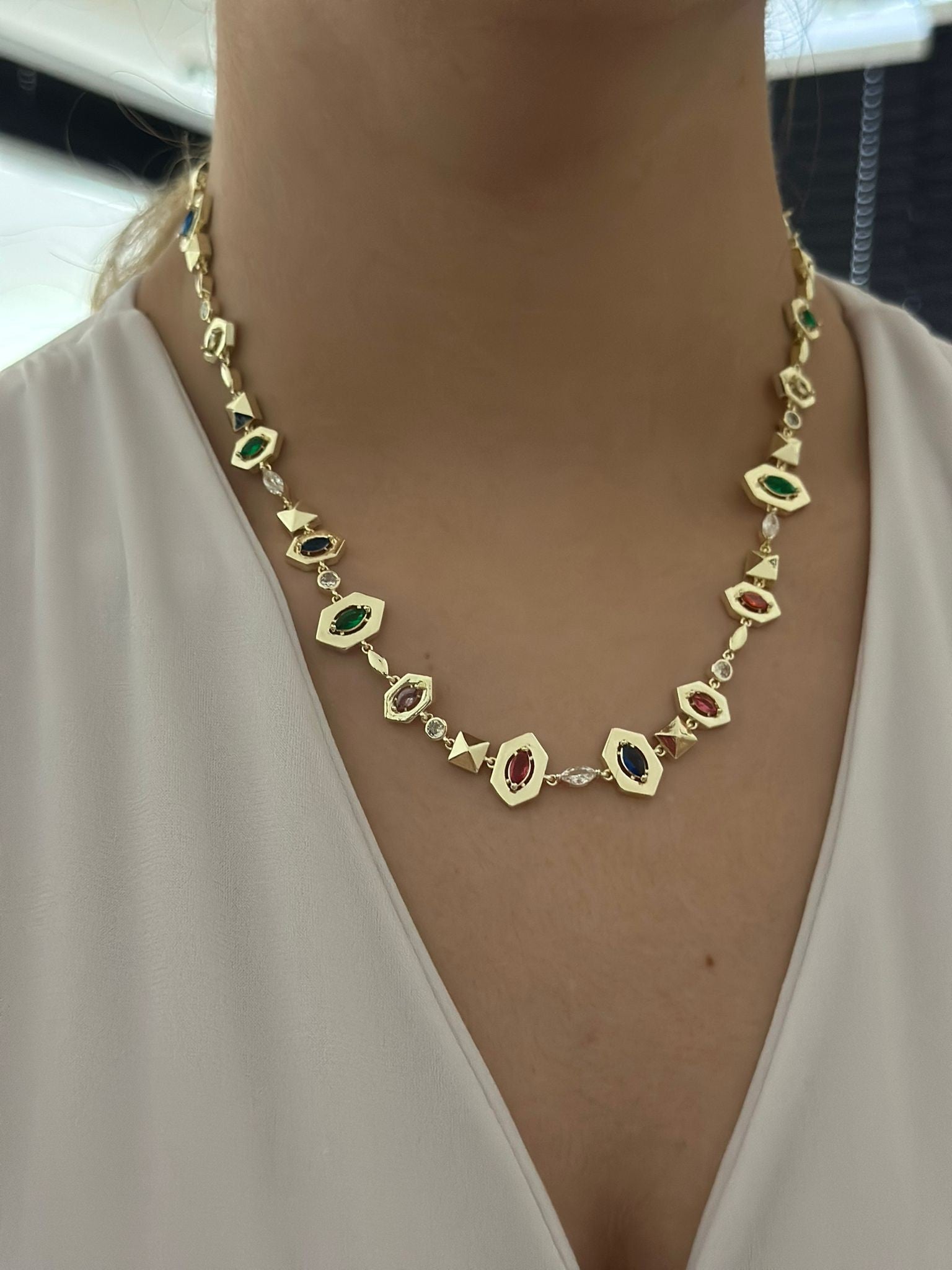 Renkli Geometrik Tasarım Çelik Kolye