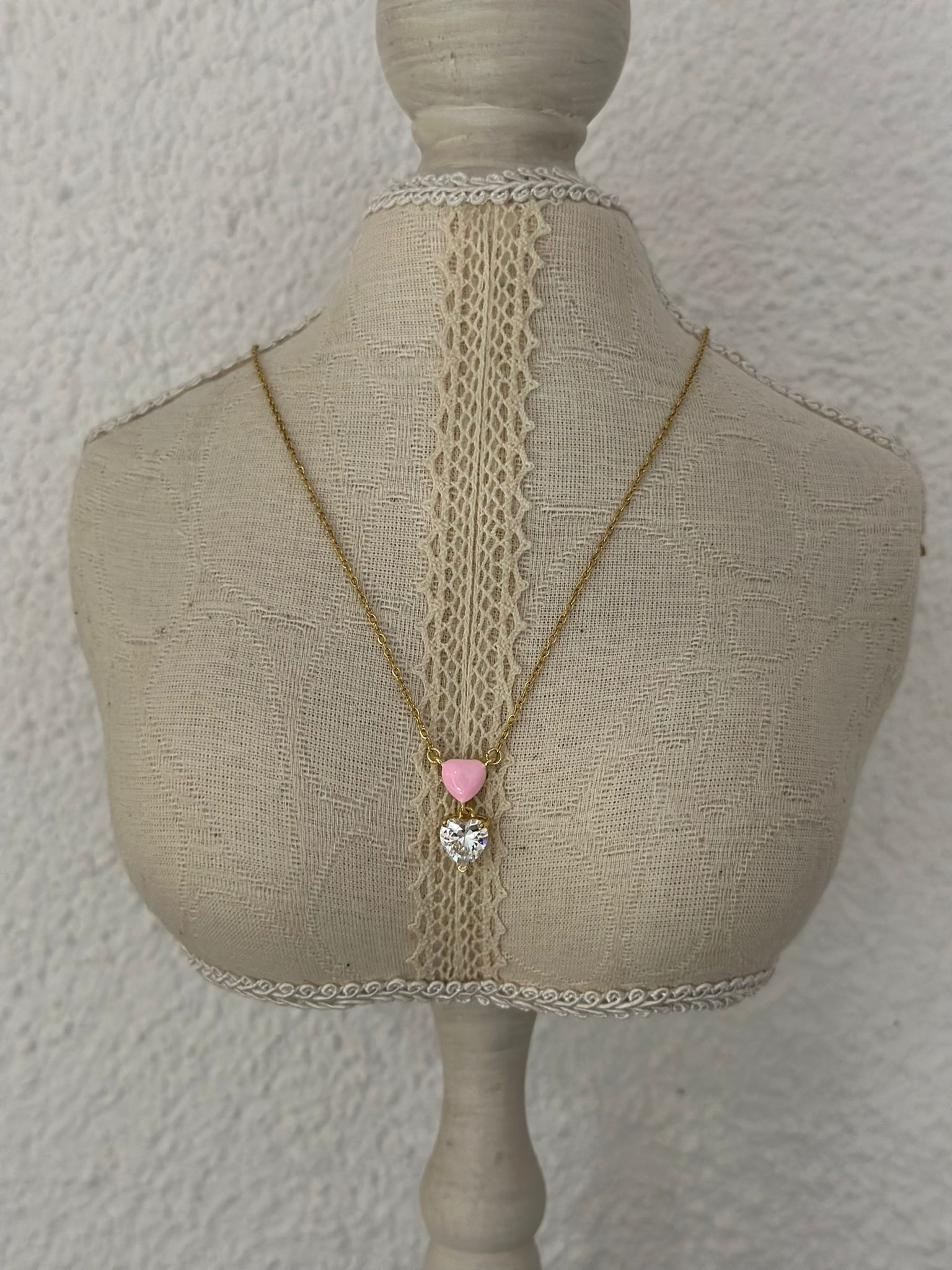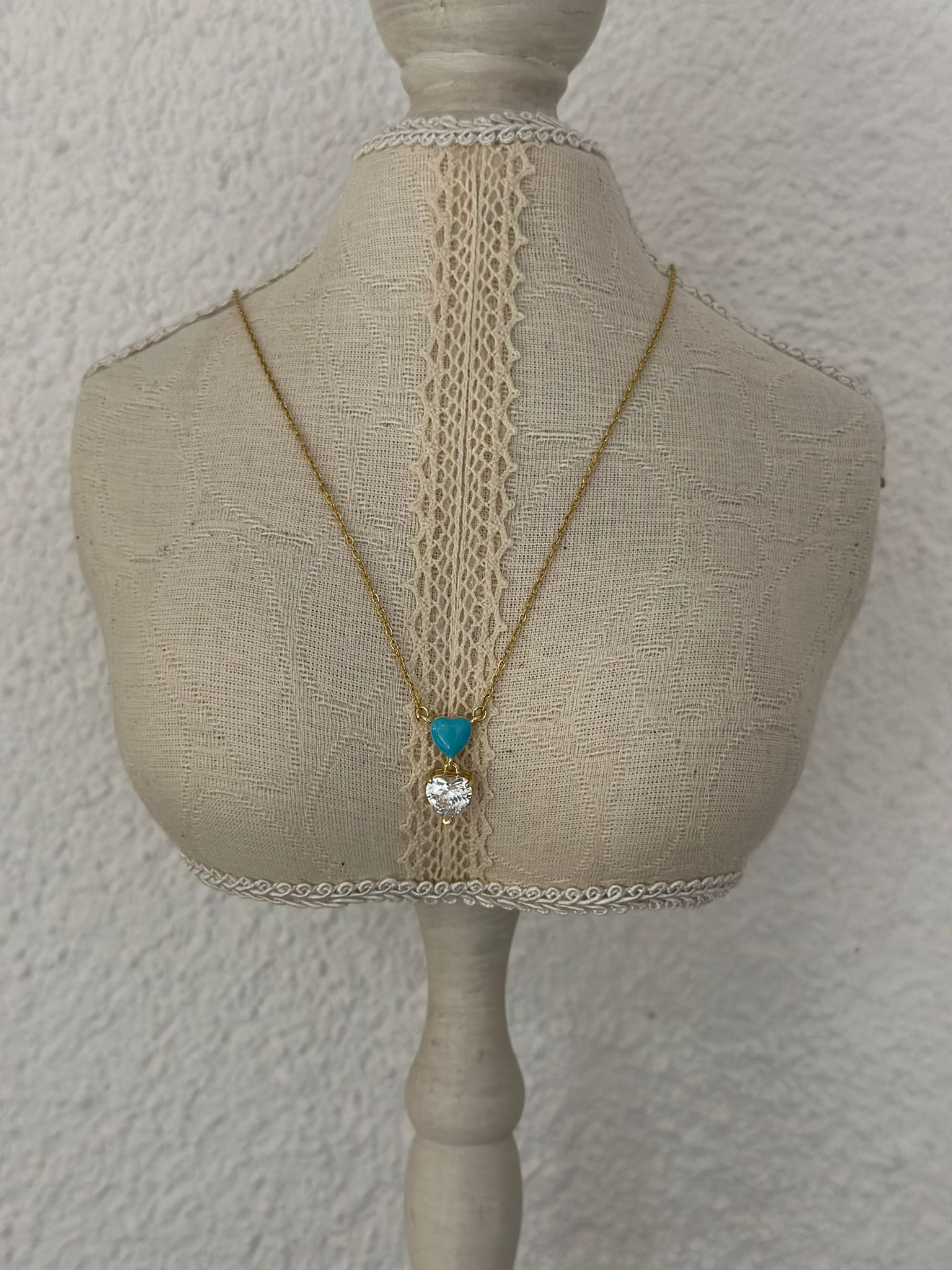 Renkli Mineli ve Baget Taş Detaylı Minimal Kalp Kolye (Pirinç Kaplama)