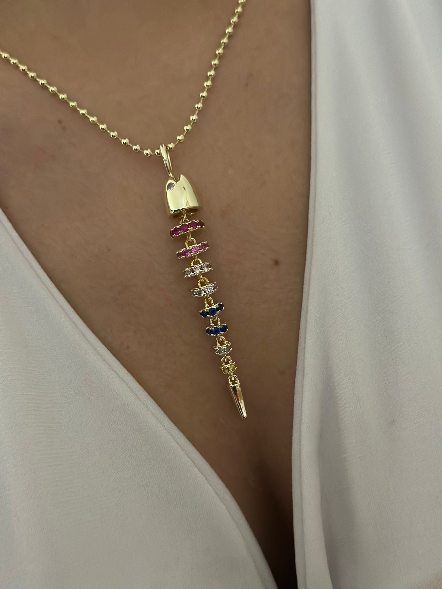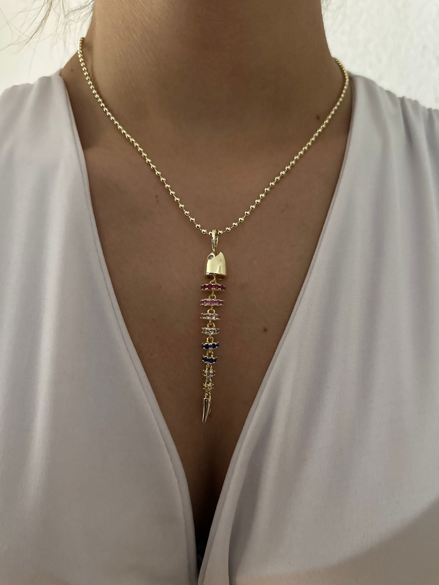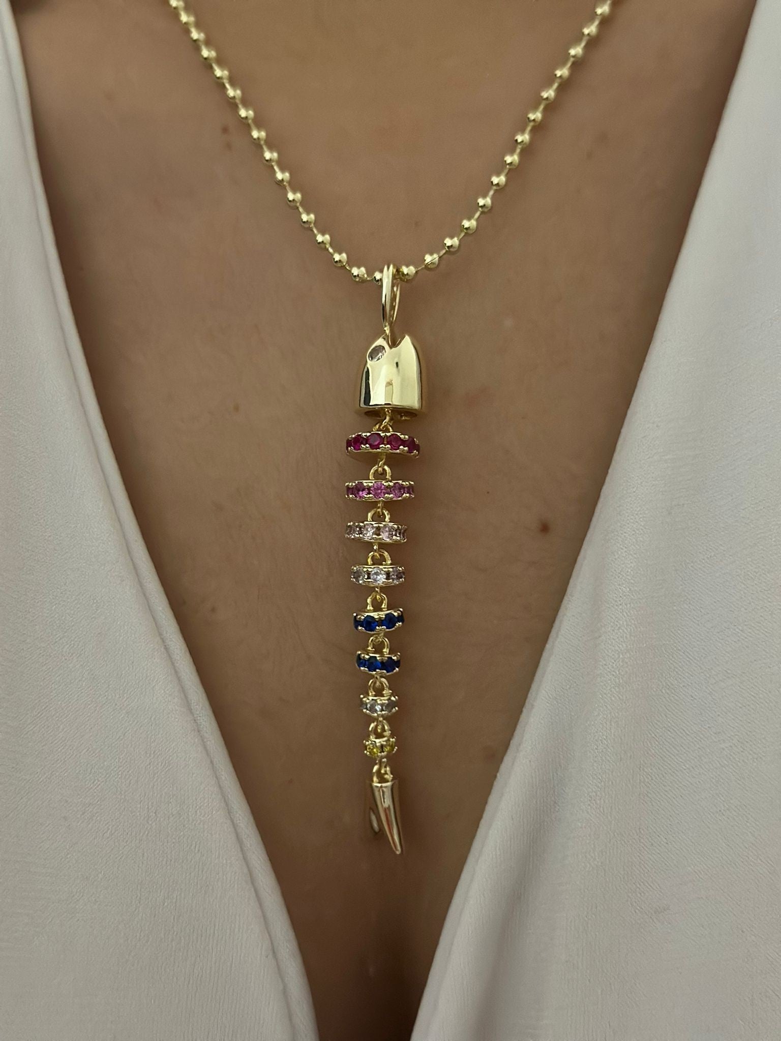 Renkli Zirkon Taş Detay Balık Kolye (Çelik)
