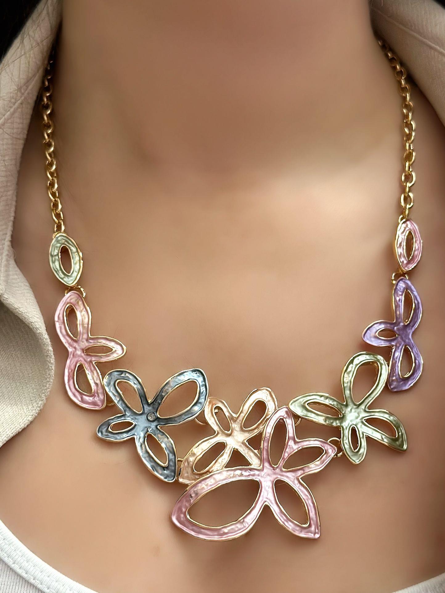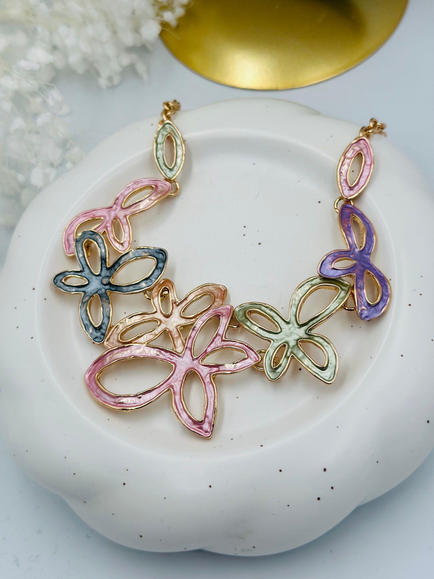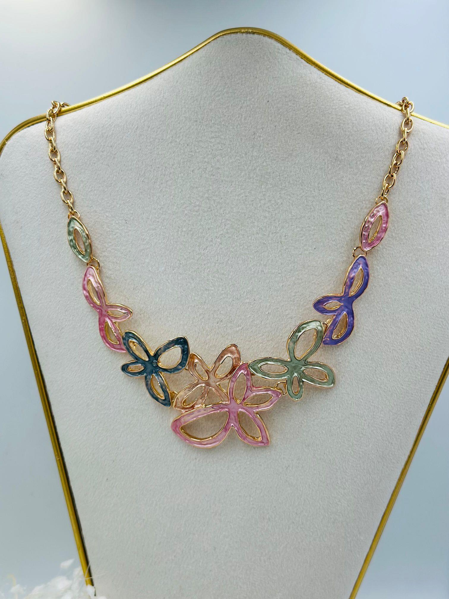 Sedef Materyal Renkli Kelebek Kolye (Pembe)
